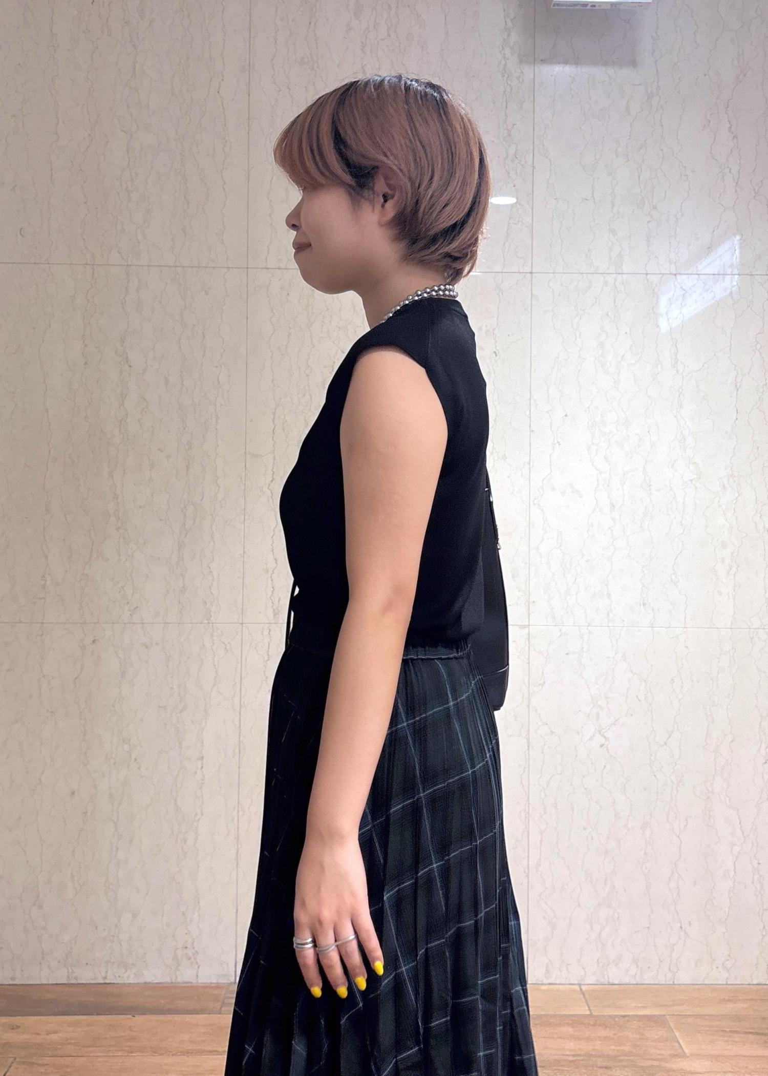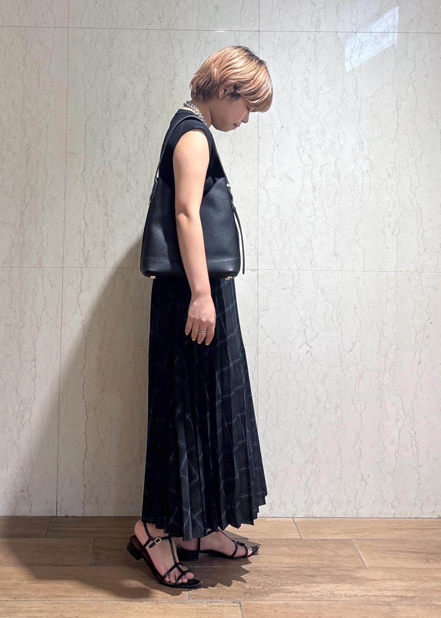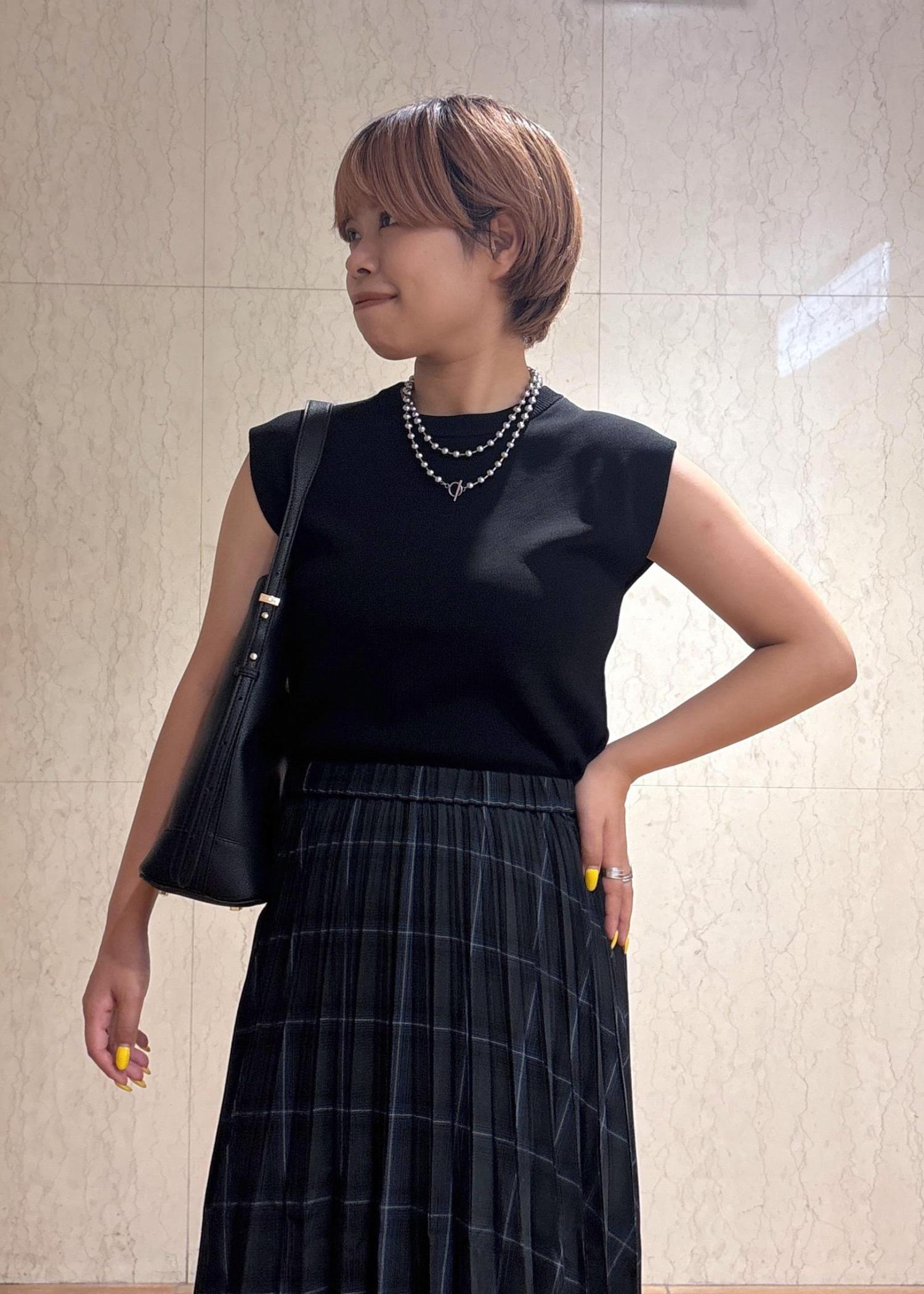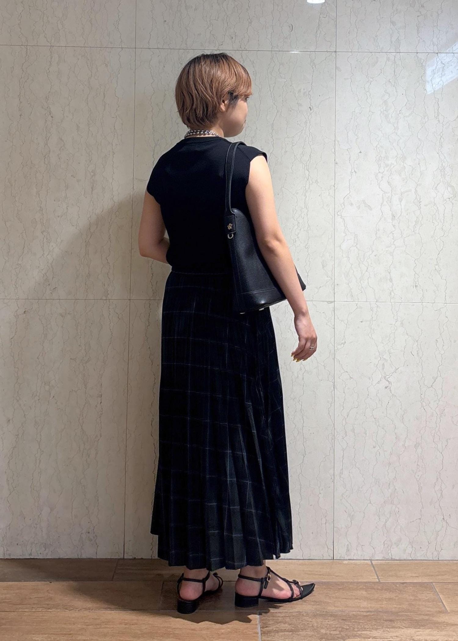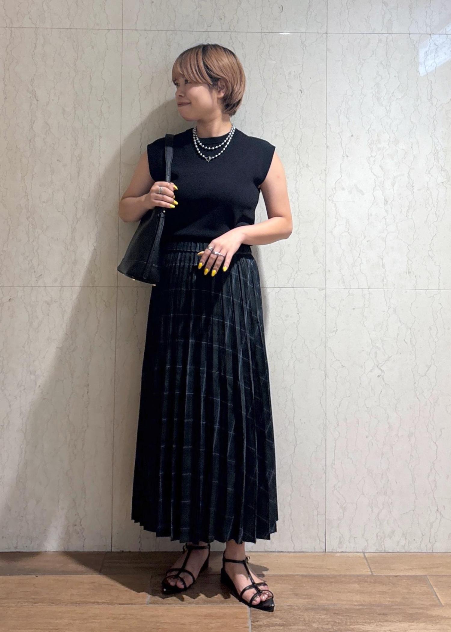 今回は秋らしいチェック柄のプリーツスカートを主役にコーディネートを組みました。