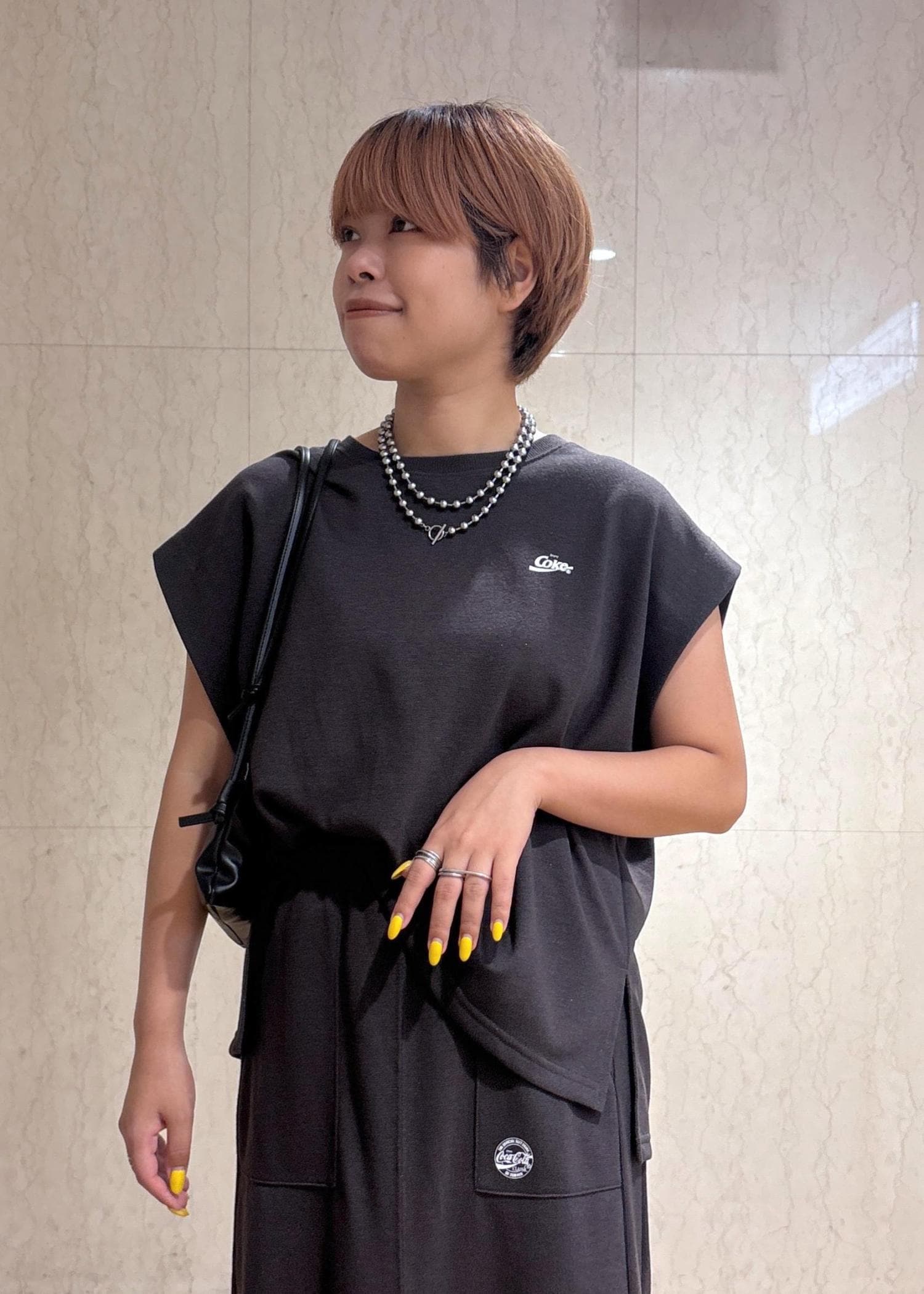 ROPÉ PICNIC【Coca-Cola】【汗染み加工・セットアップ対応】ラメ入りミニ裏毛フレンチスリーブTシャツチャコール / L¥3,993レビューサイズによってシルエットが異なるシリーズで、私が着用しているLサイズはゆったりシルエットなので、楽にお召頂けますよ。