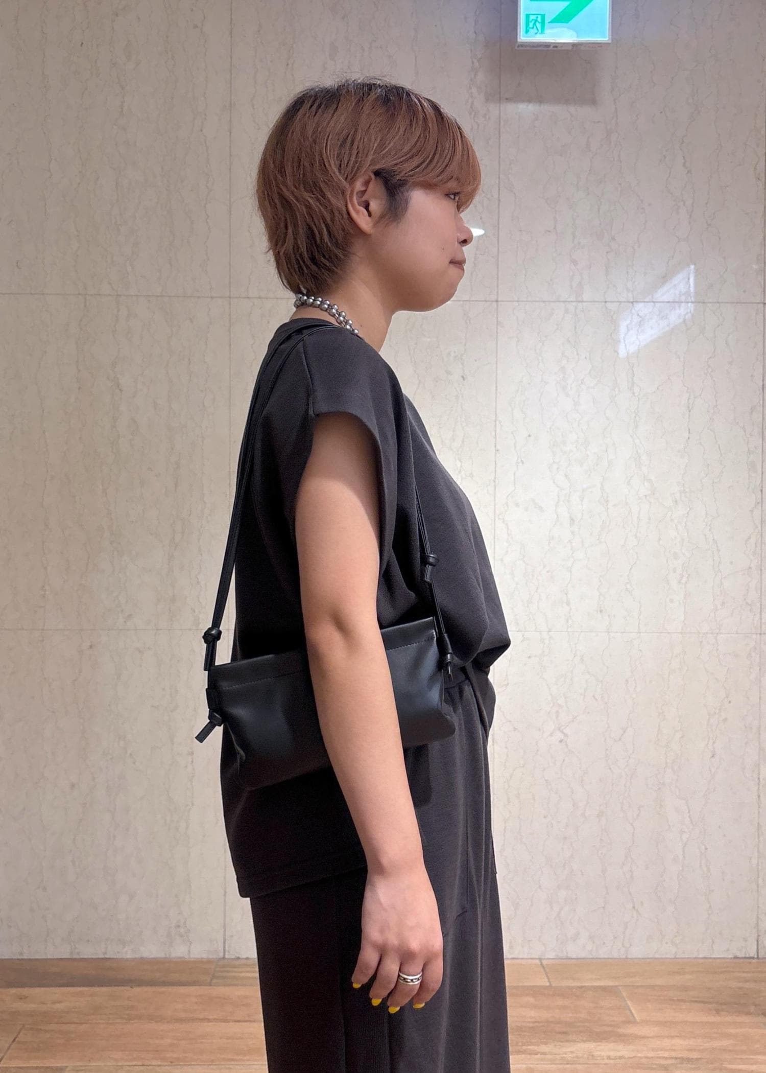 大人っぽいカジュアルスタイルにしたかったので、小物も黒でまとめたのがポイントです。