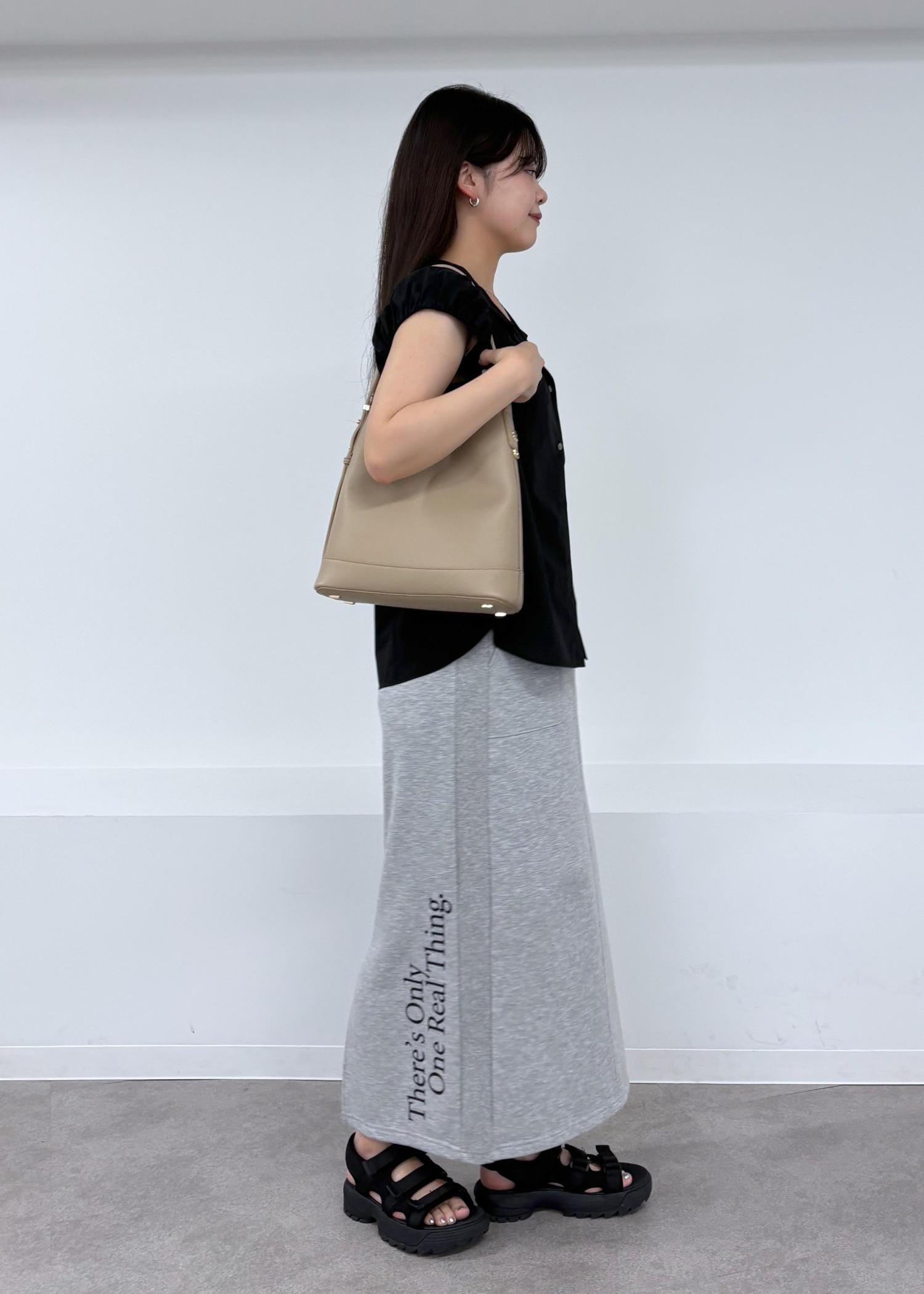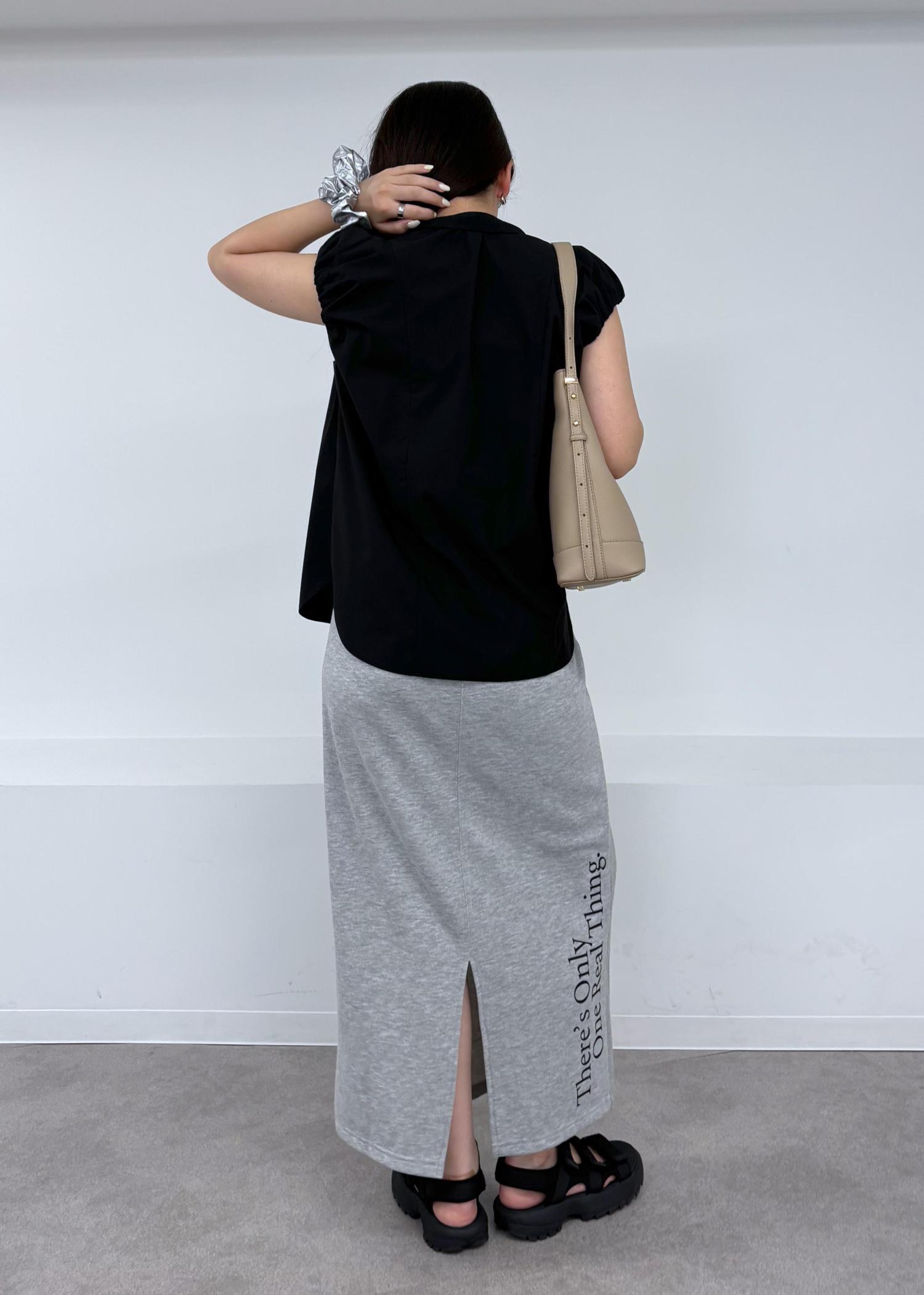 パフスリーブが可愛らしいブラウスにスウェット素材のスカートを合わせて甘めカジュアルなスタイルにしました。