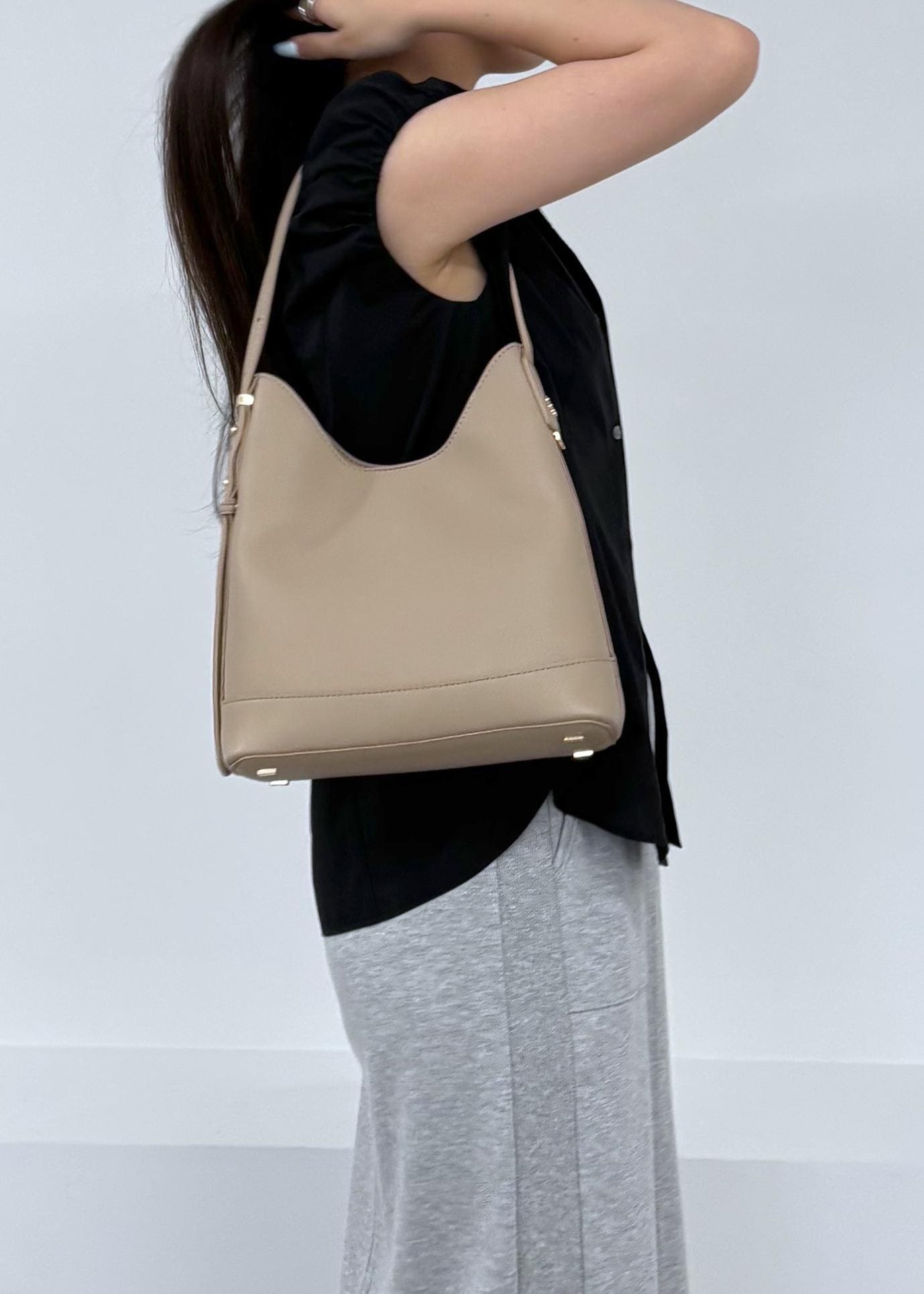柔らかく身体にフィットするような持ちやすさのバッグです。広めのマチと内側の仕切りで、見た目以上に収納力があります。
