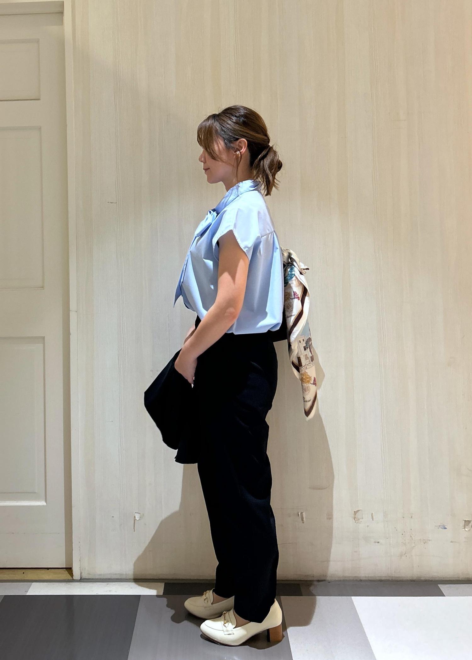 ボウタイリボンでアクセントのパンツスタイル