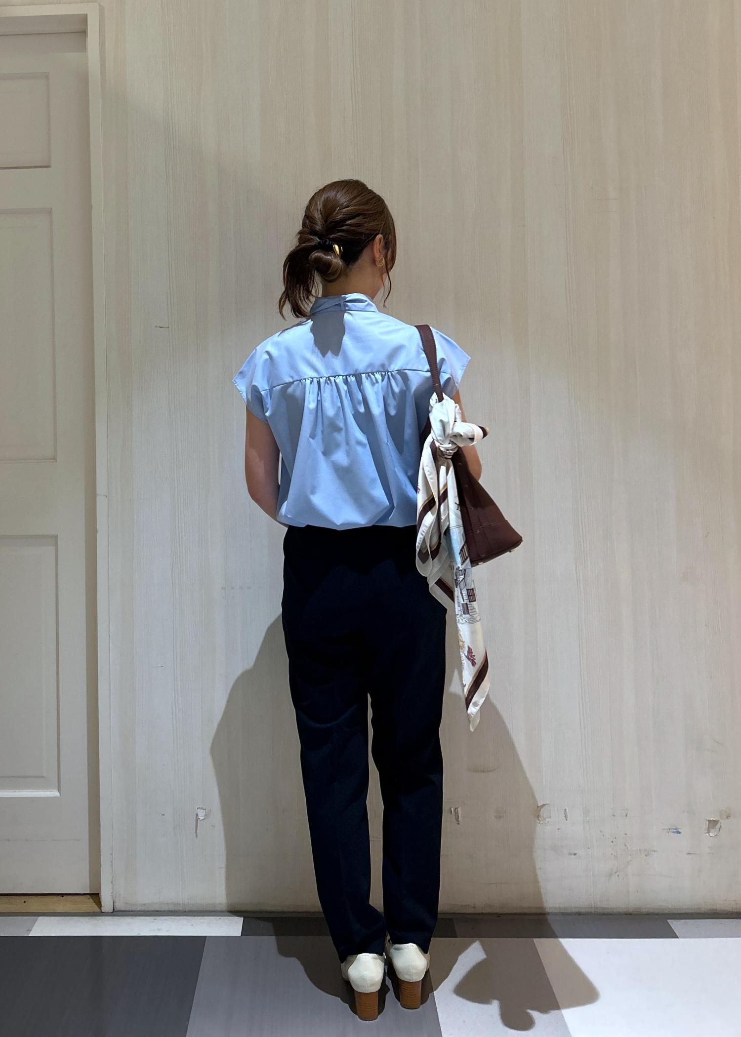 ボウタイリボンつきのブラウスでアクセントと