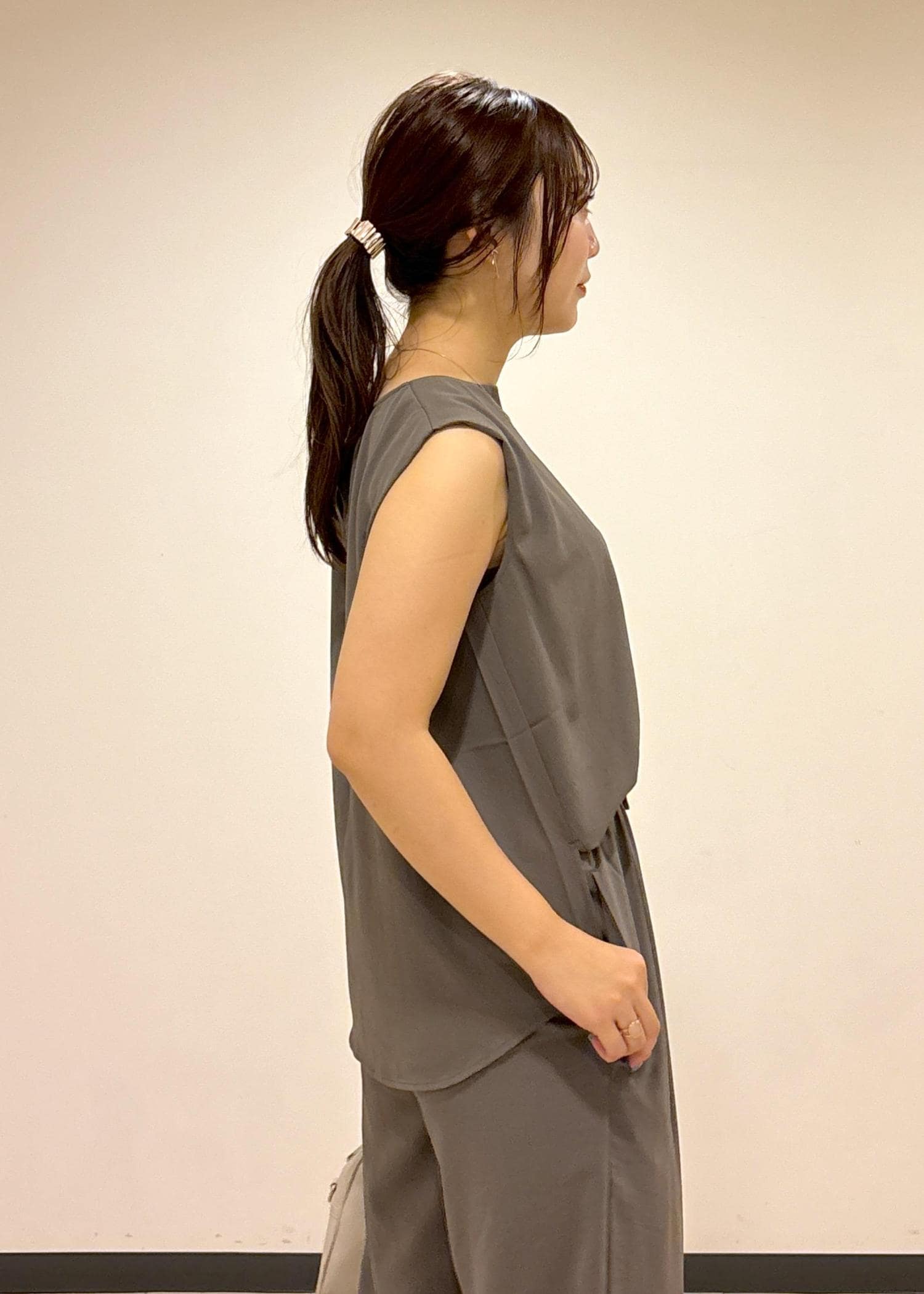 ROPÉ PICNICジョーゼット肩タックブラウス/セットアップ対応カーキ / 36¥4,499レビュー丸顔なので顔周りがキーネックだとスッキリと着こなせます。さらっとした着心地。