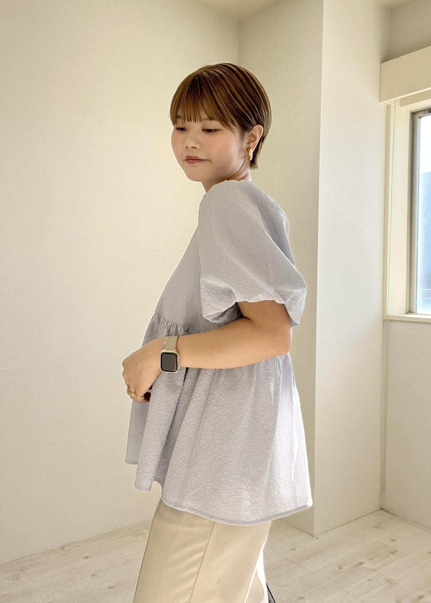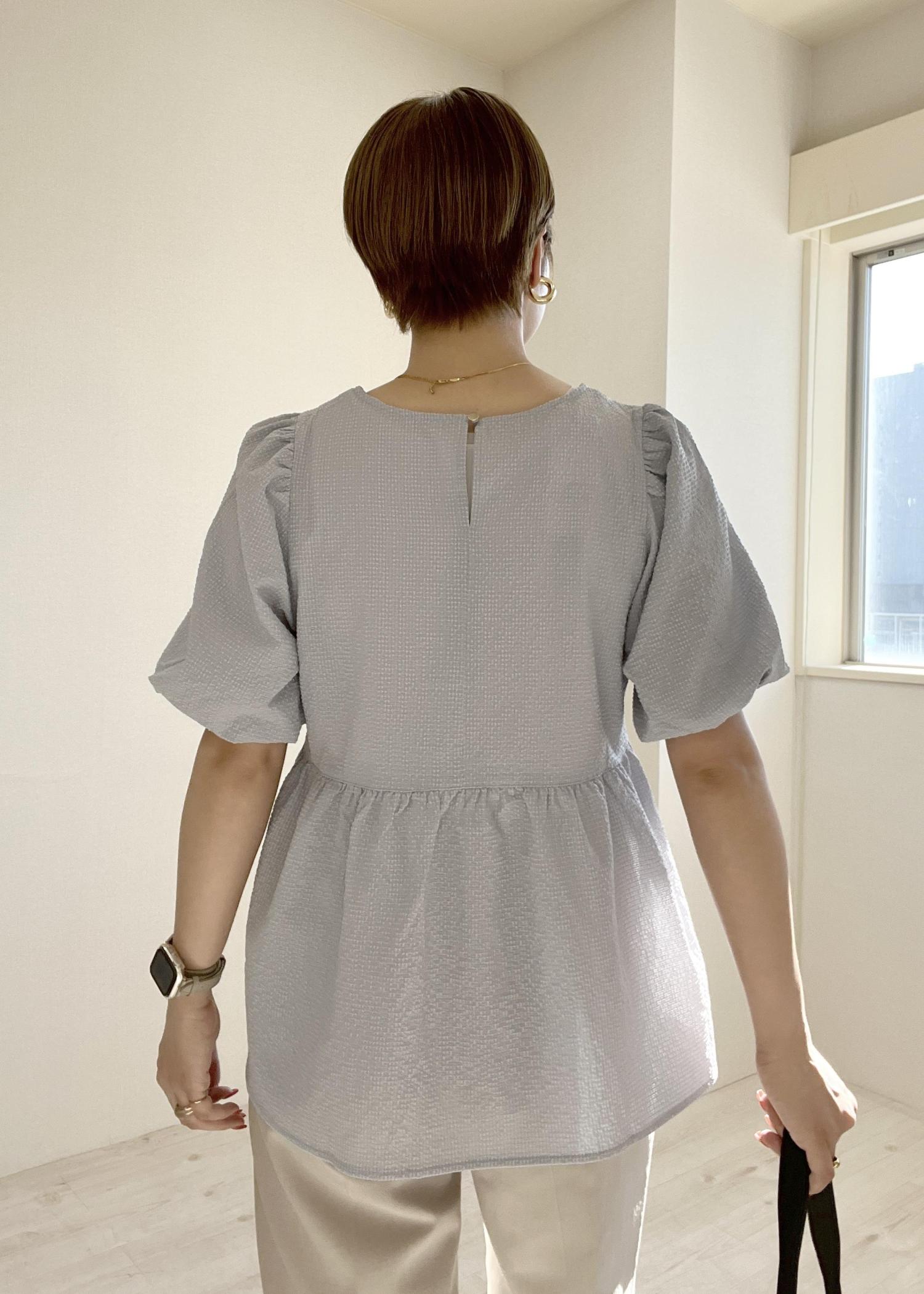 パフっとした袖とペプラムデザインで、1枚でコーデが