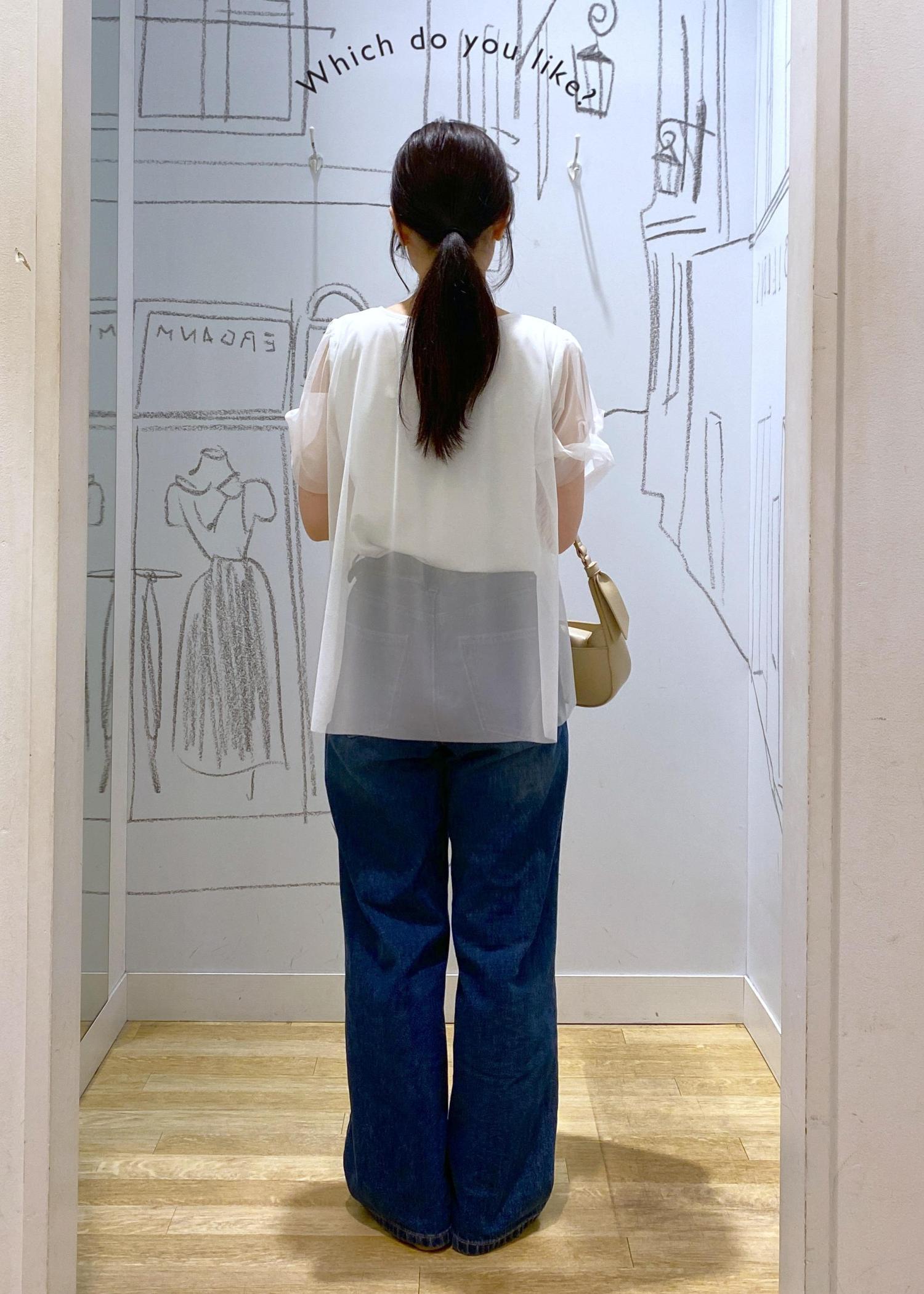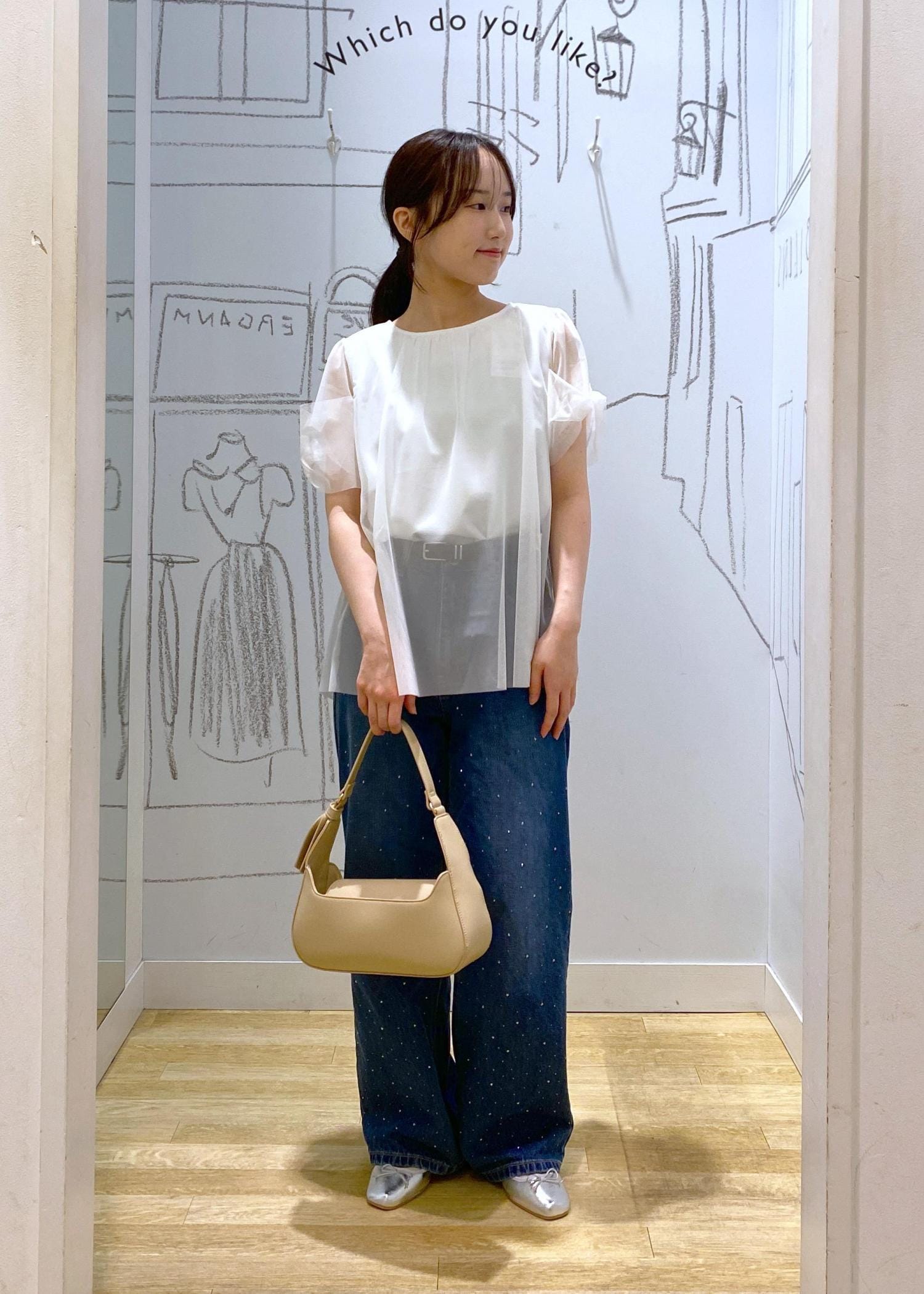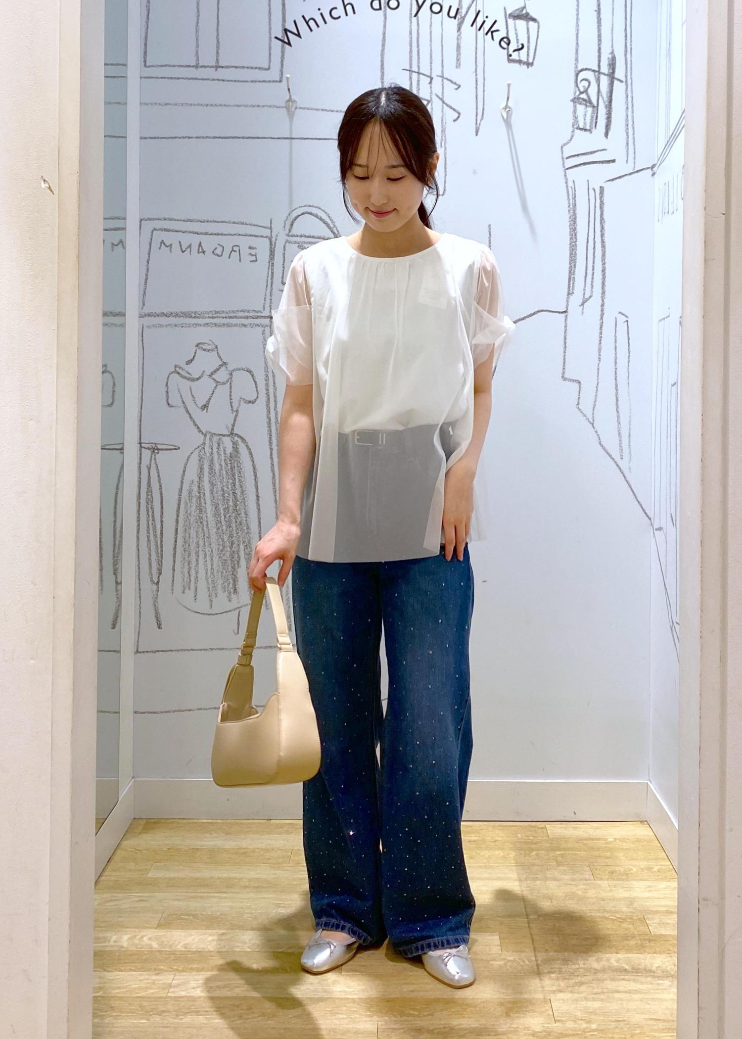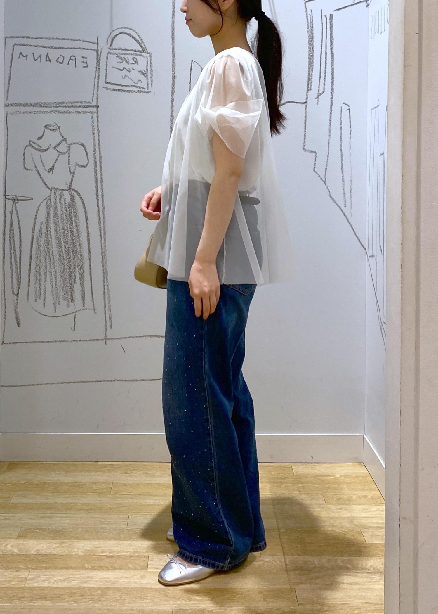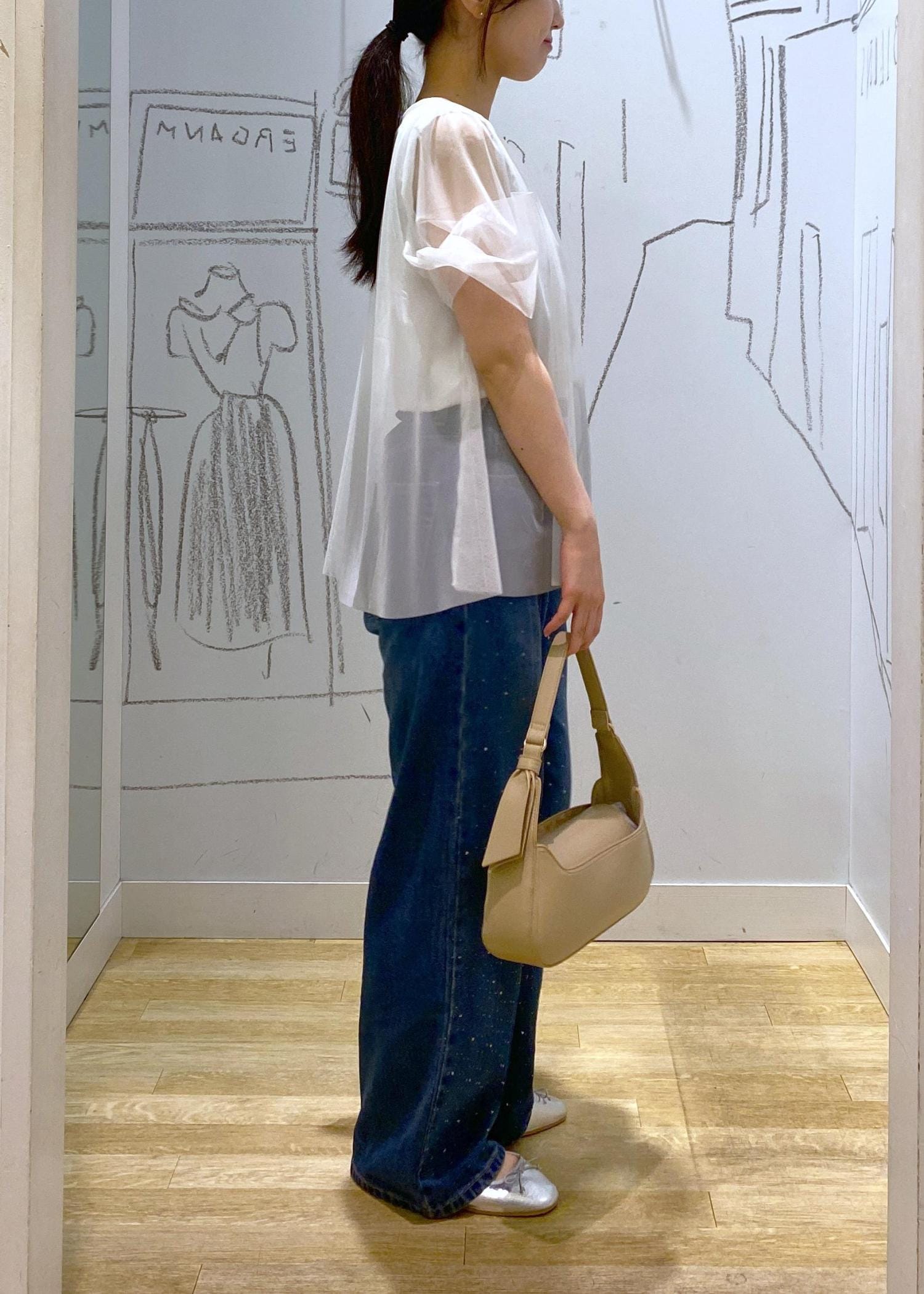 ホワイトのチュールとガーリーなトップスなので、あえてデニムを持ってくることでカジュアルさもプラスしました!