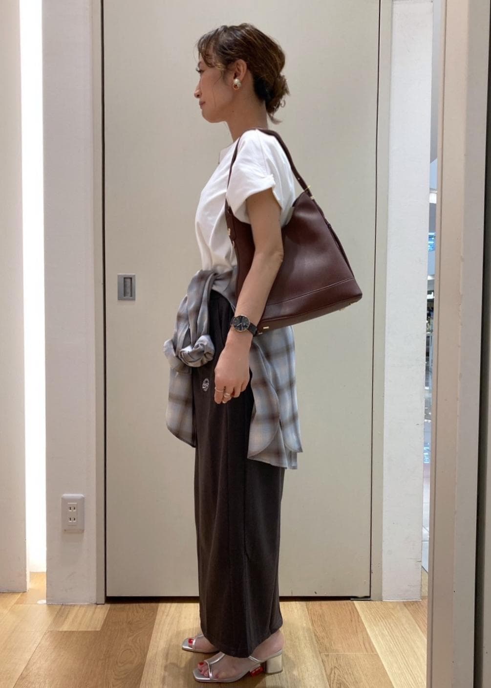 レザー調のミドルバッグやヒールのあるミュールなど、小物も『きれいめ』を意識してチョイスすると統一感が出ると思います。