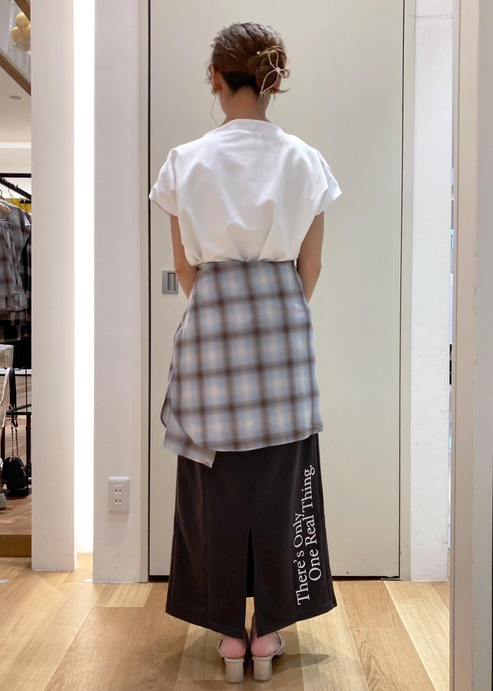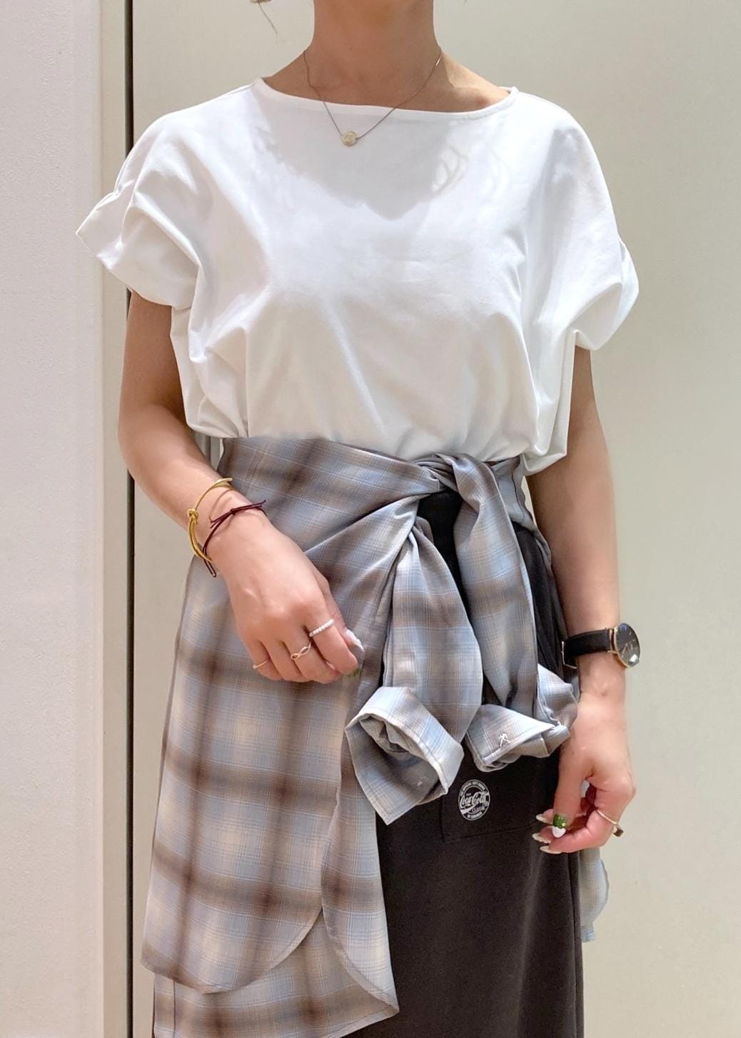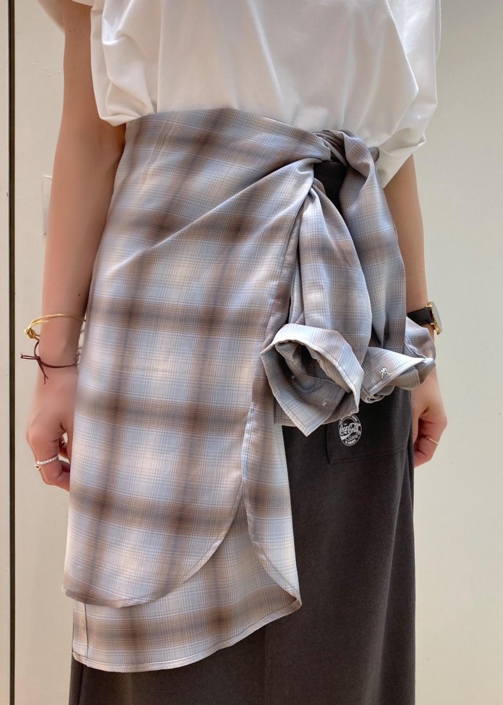 オンブレチェックのシャツを腰巻きすることでアクセントをつけました。