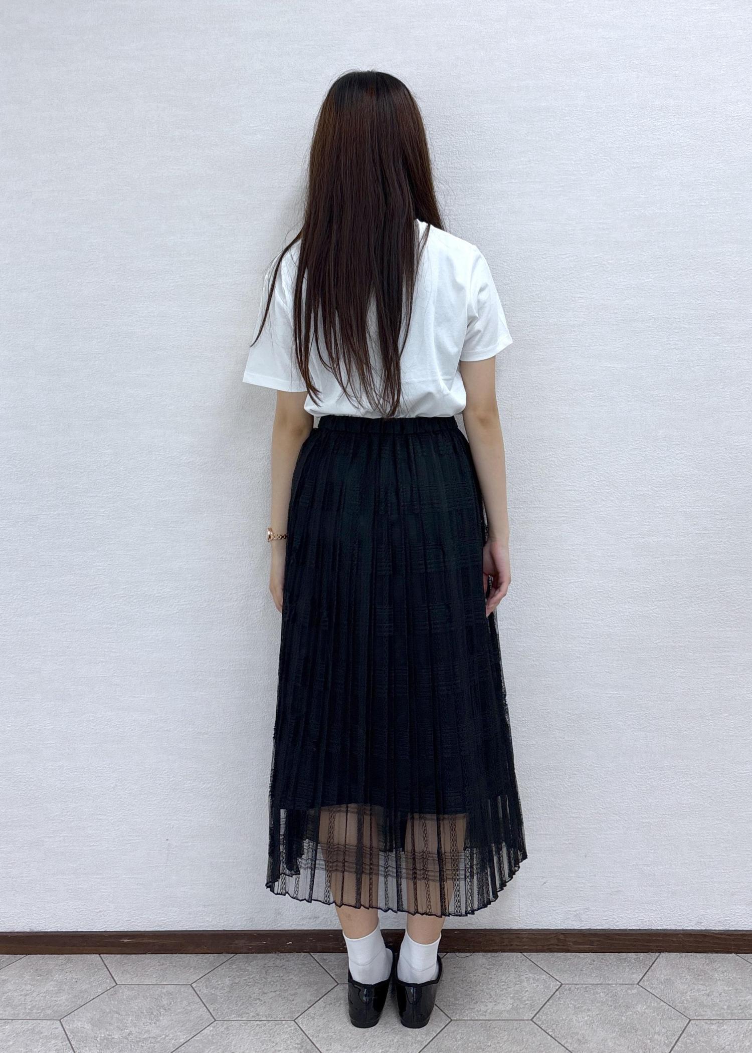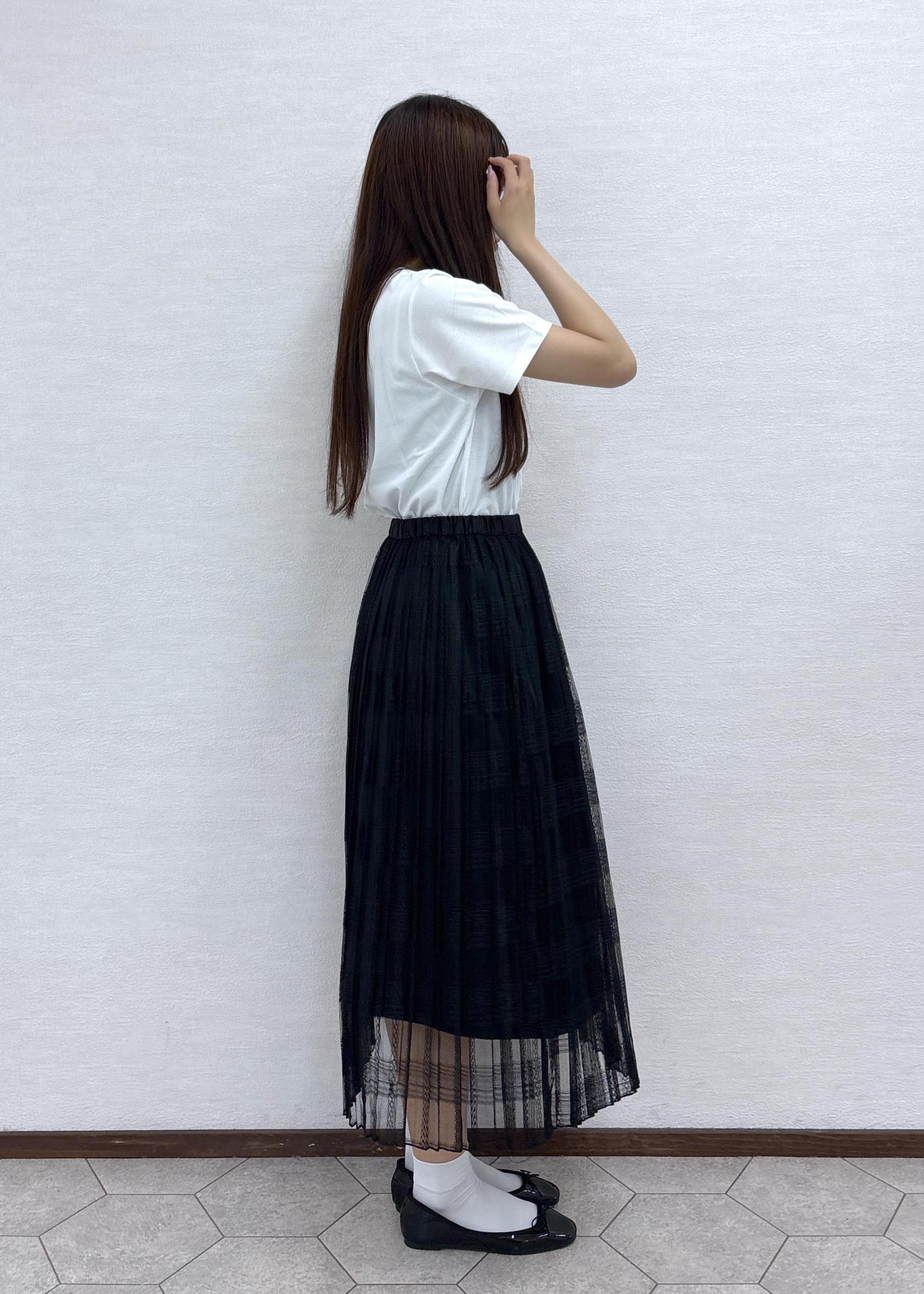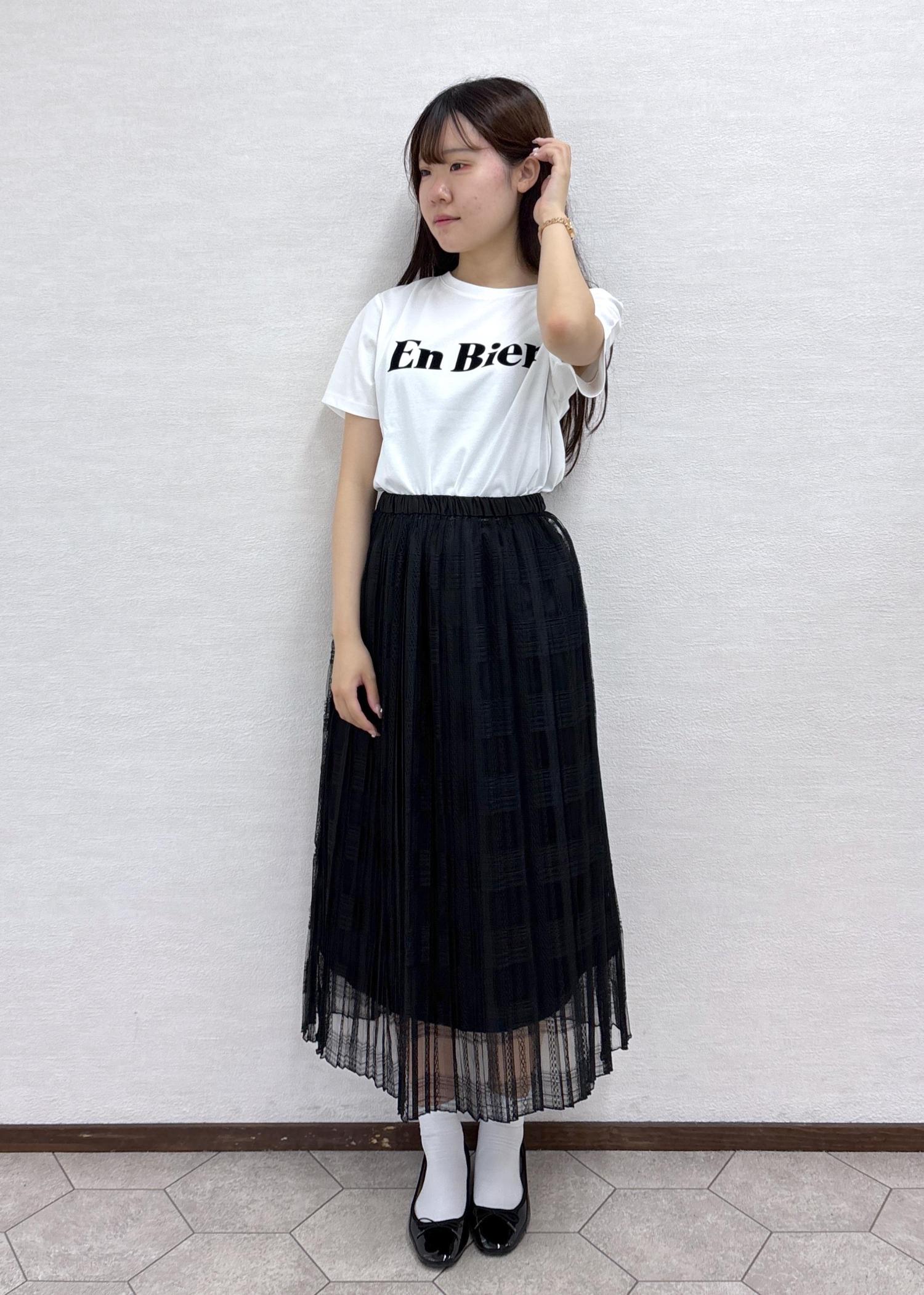 Tシャツにスカートというシンプルな組み合わせですが、とっても可愛らしいコーデです。