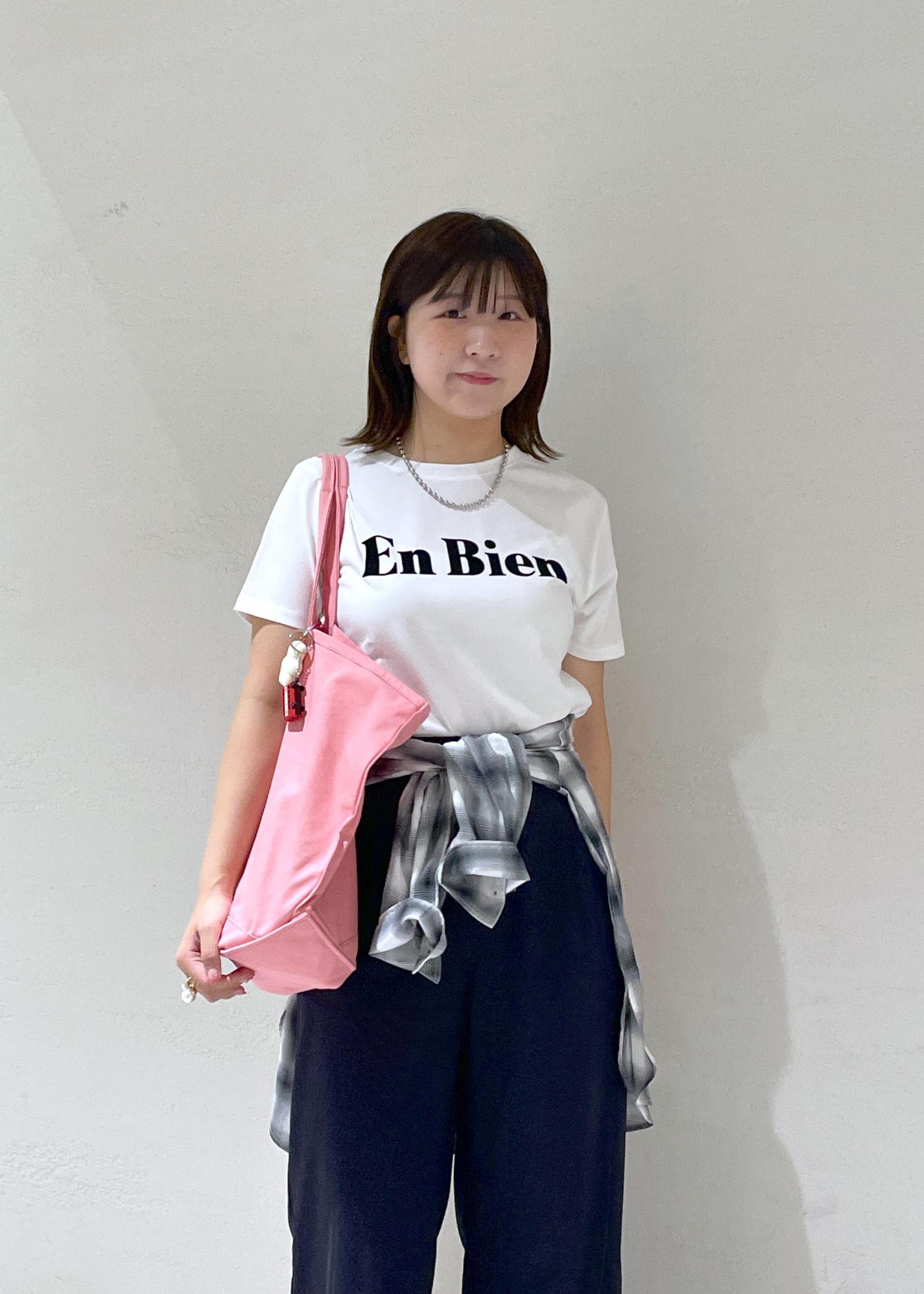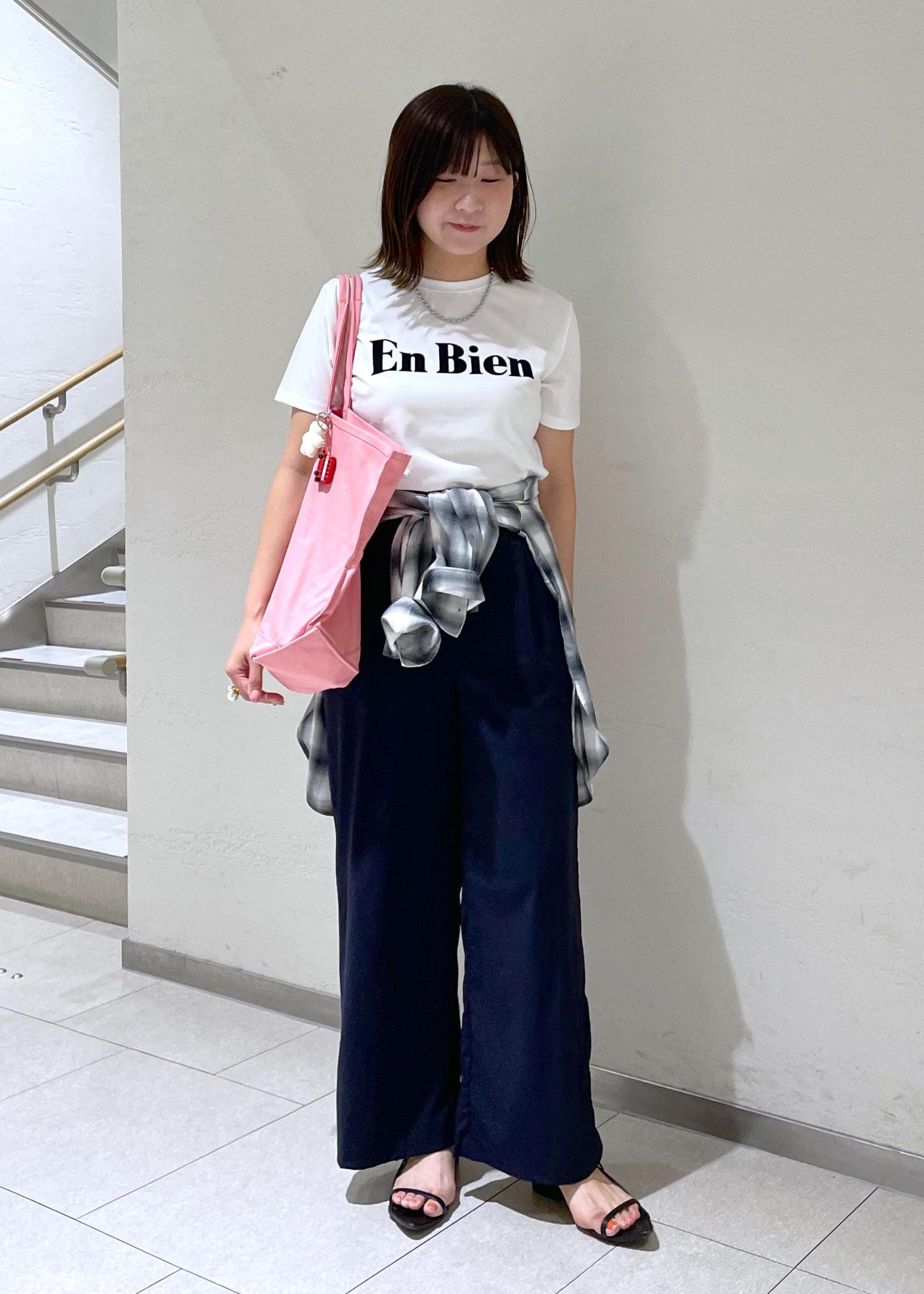 フロッキープリントが秋を先取りしていて夏服にも変化を出せるのでオススメです。 -
