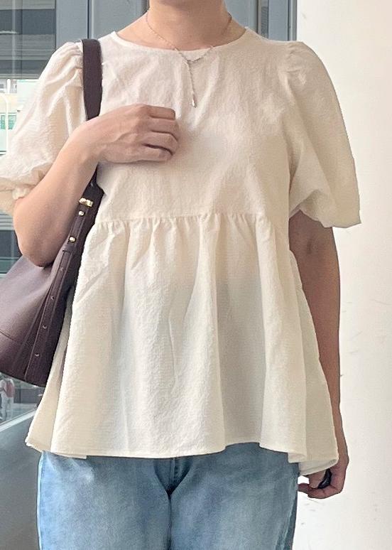 ポコポコした生地感がかわいいペプラムブラウスです。 -