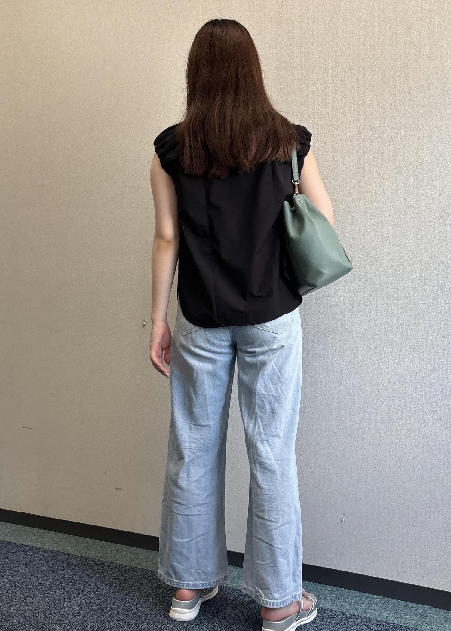 ストレートなシルエットなので、足のラインを拾わず綺麗に見せてくれるデニムパンツです。 -