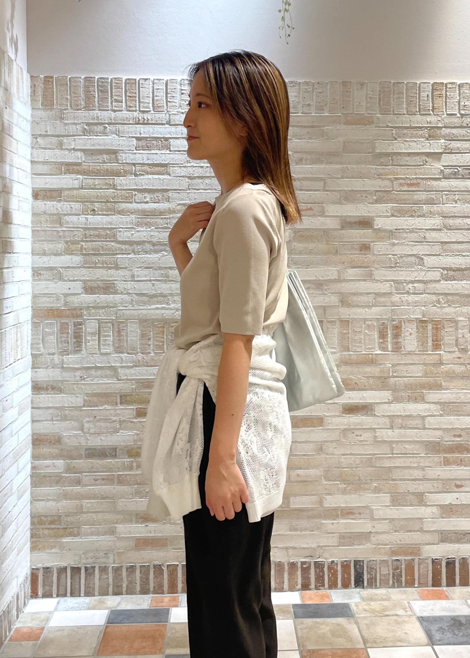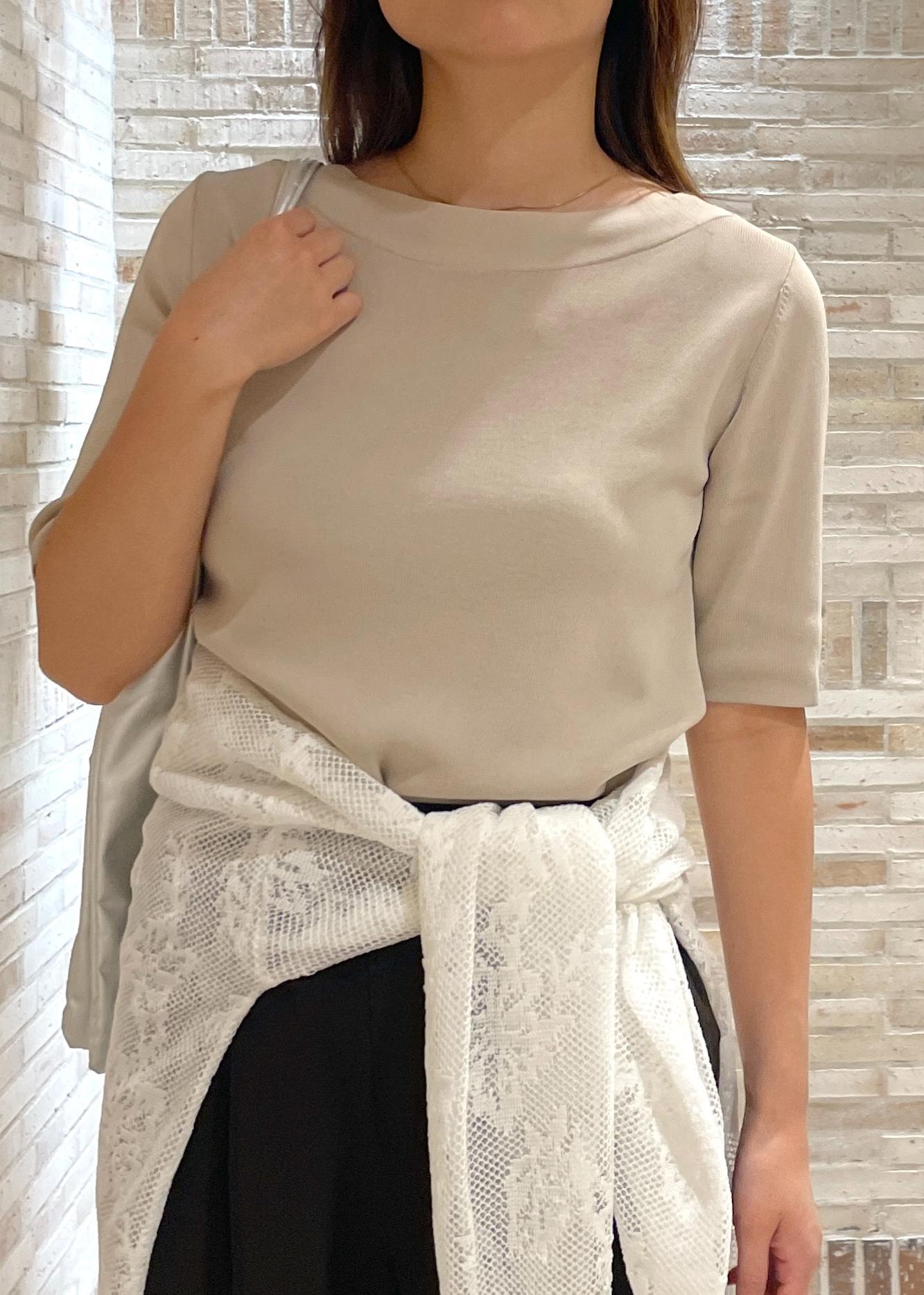 襟ぐりが適度に開き、インナーは見えないけれど鎖骨を綺麗に見せてくれるトップスです!