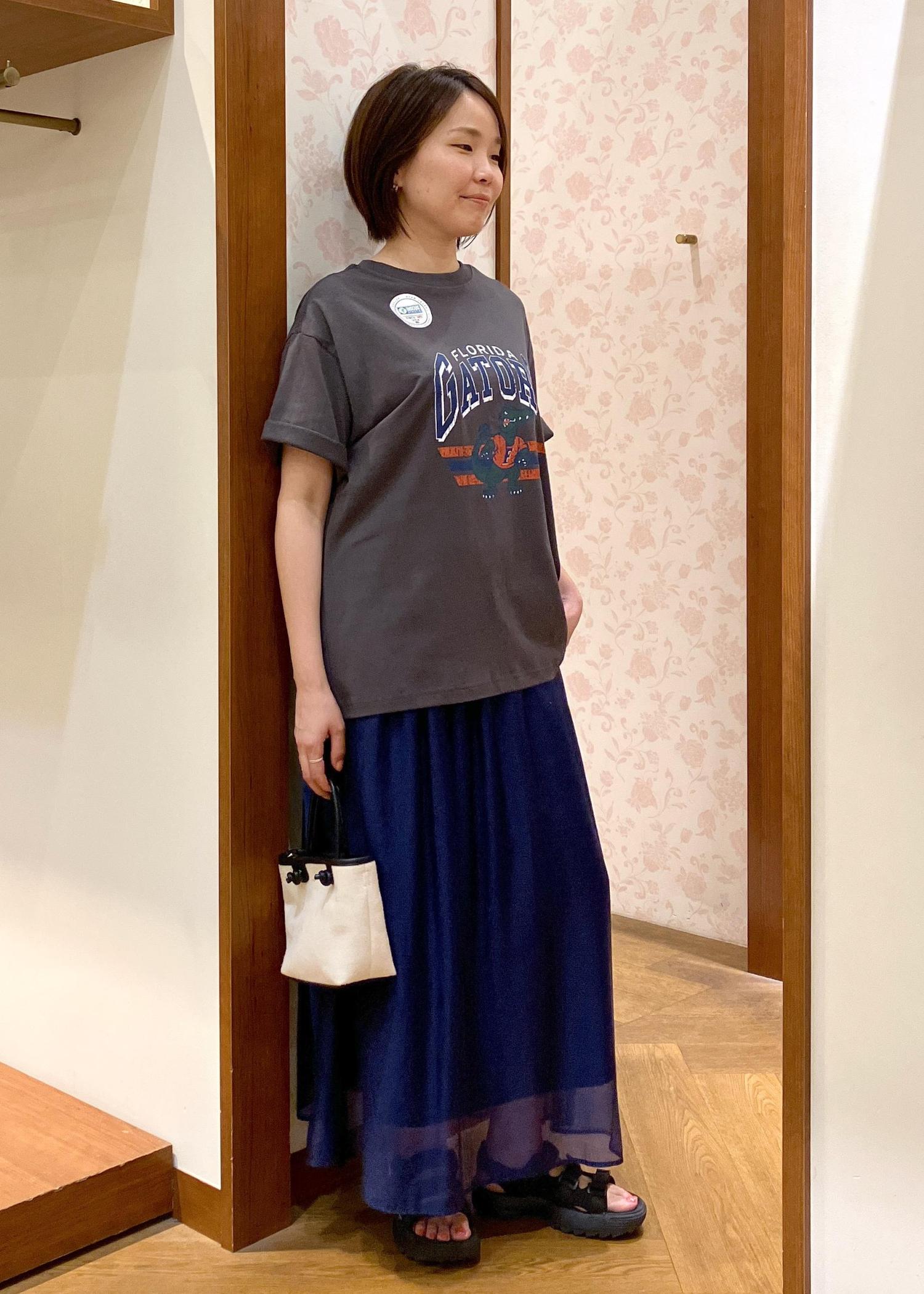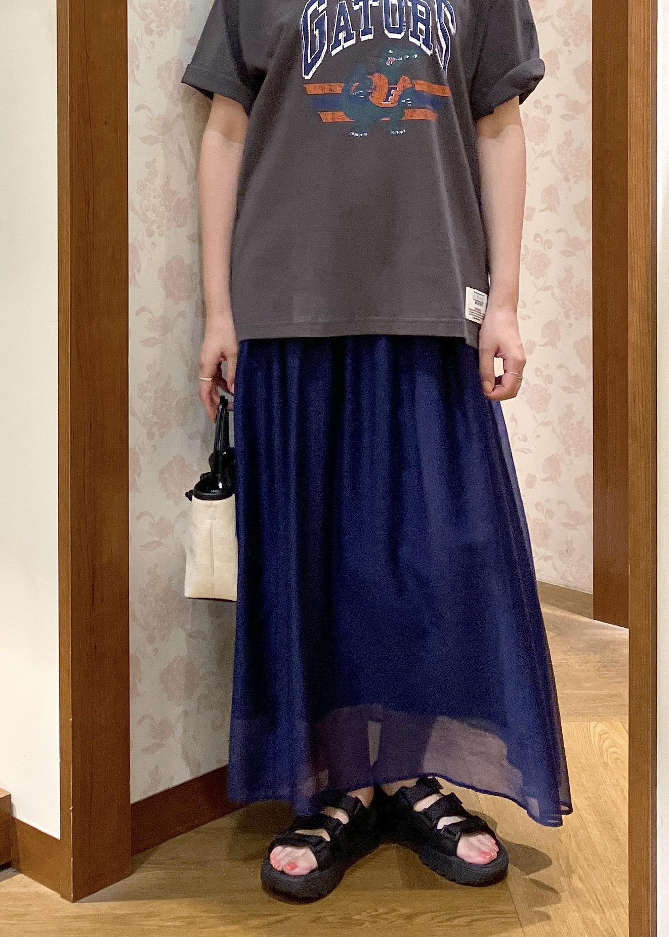 オーバーサイズTシャツに軽やかなスカートを合わせてみました!