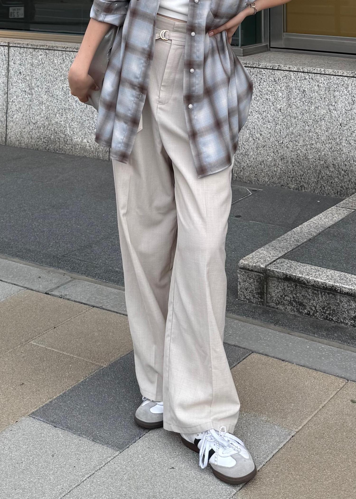 真ん中にタックが入っているので脚をまっすぐ綺麗に見せてくれます。