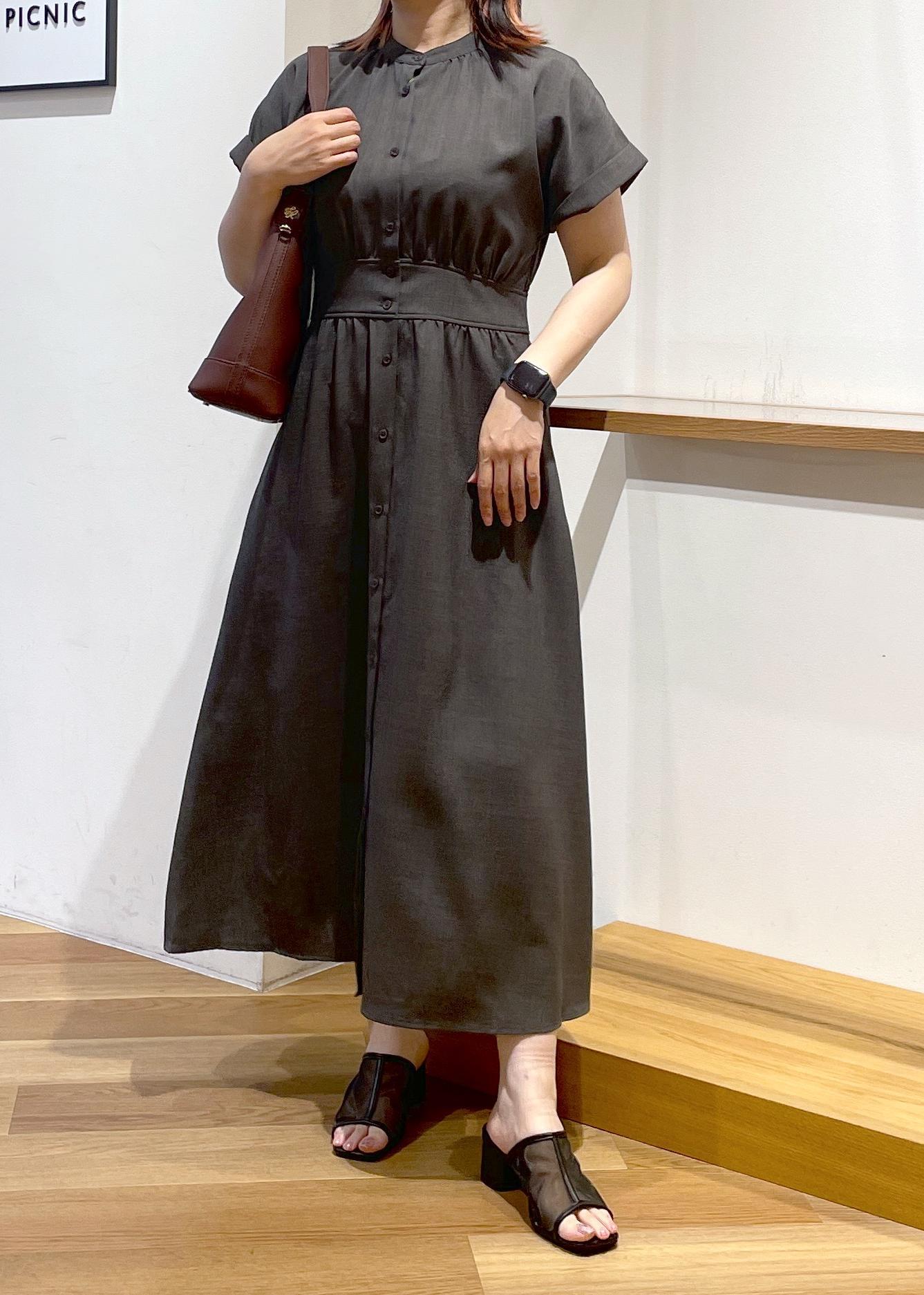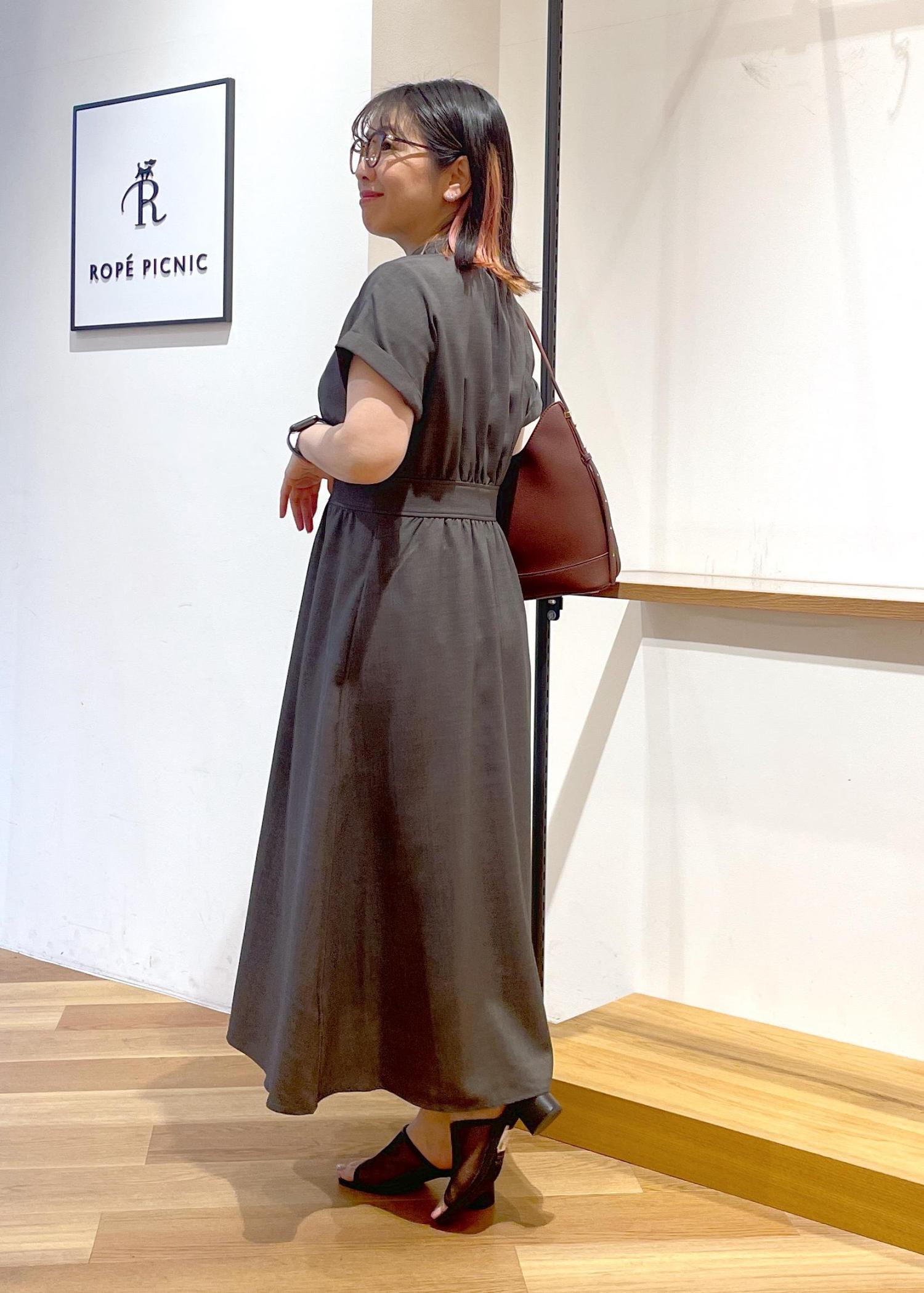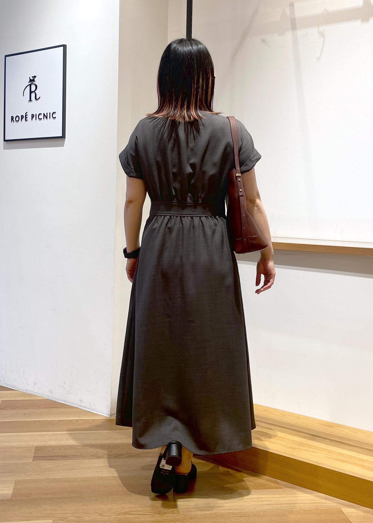 ウエスト部分の切り返しがスッキリとしたスタイルに見せてくれます。ドルマンタイプなのでバスト部分はすこしゆったりとした着心地です。