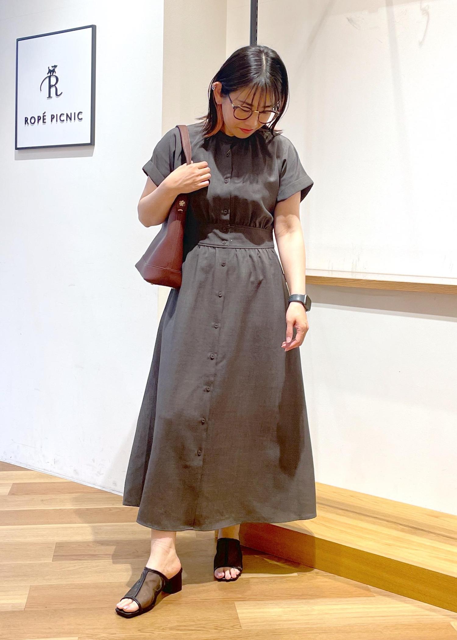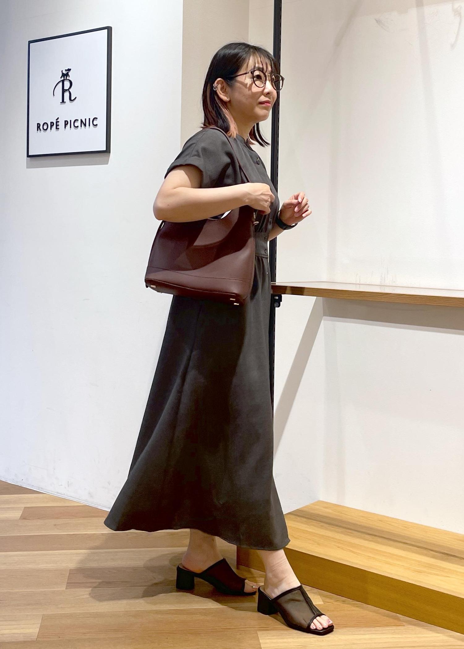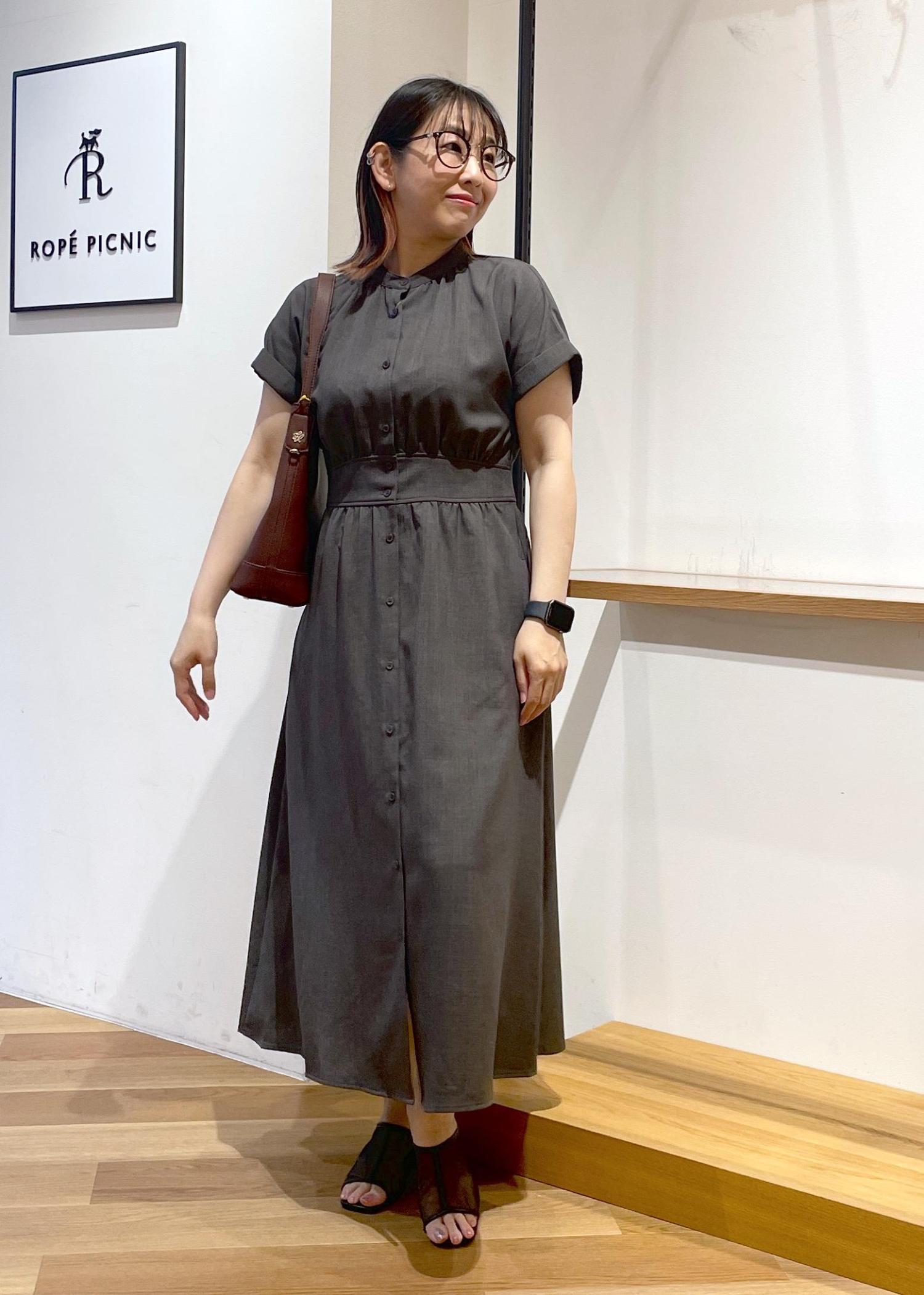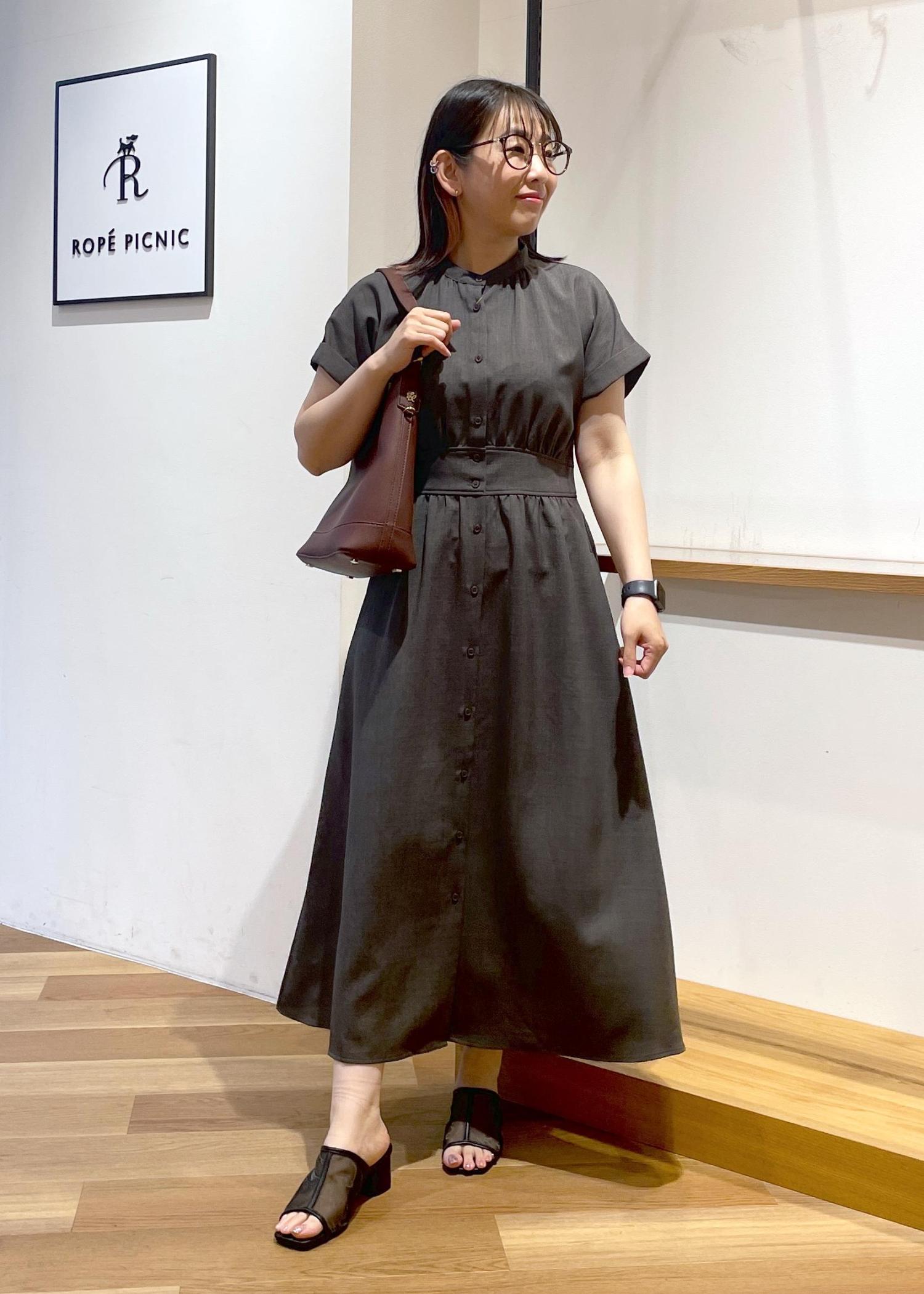 ウエスト部分の切り返しがスッキリとしたスタイルに見せてくれます。ドルマンタイプなのでバスト部分はすこしゆったりとした着心地です。