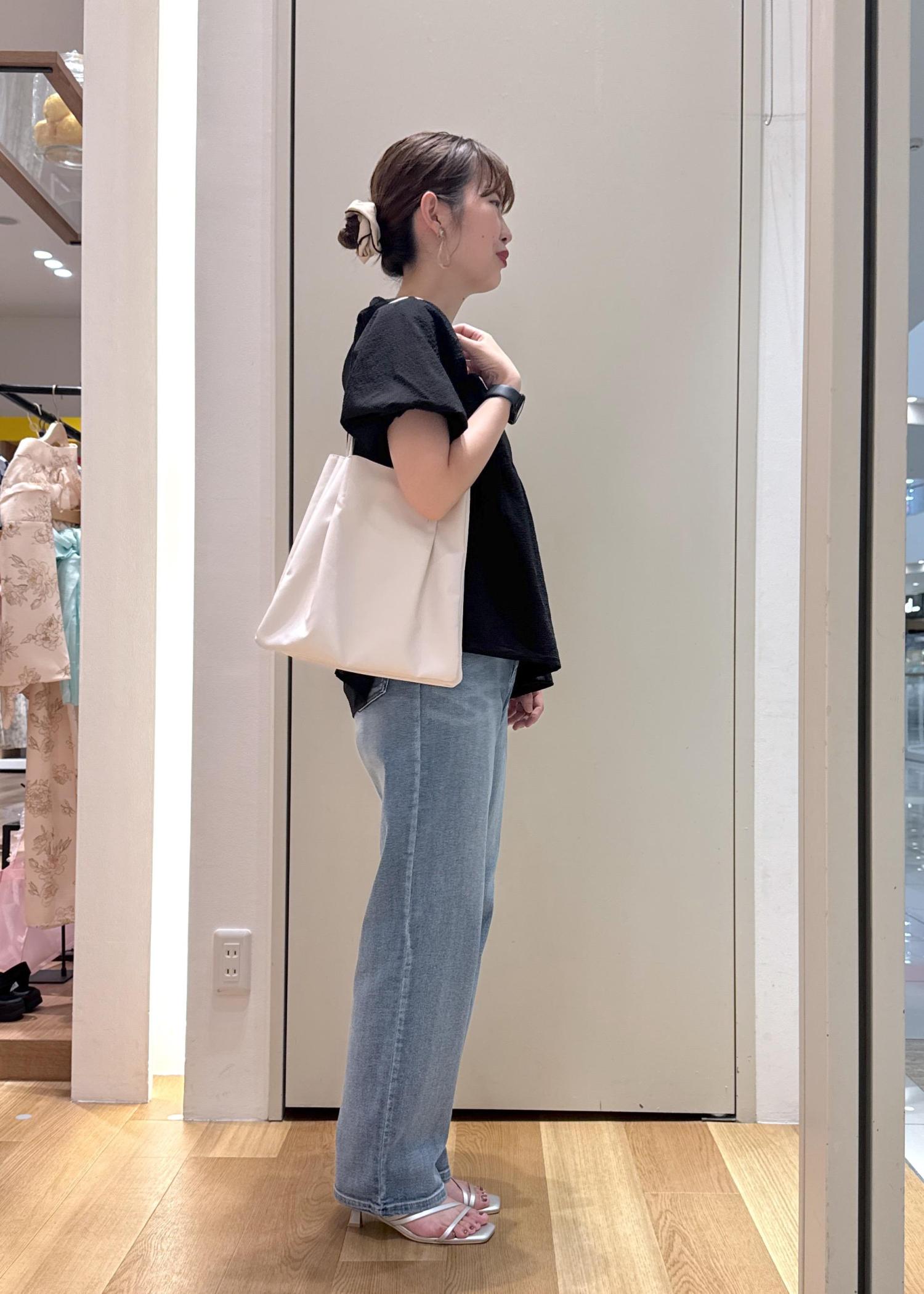 ブラウスのシルエットがふんわりとしているので、ストレートシルエットのボトムスと合わせるとコーディネートにメリハリが出て、バランス良く見せてくれます◎