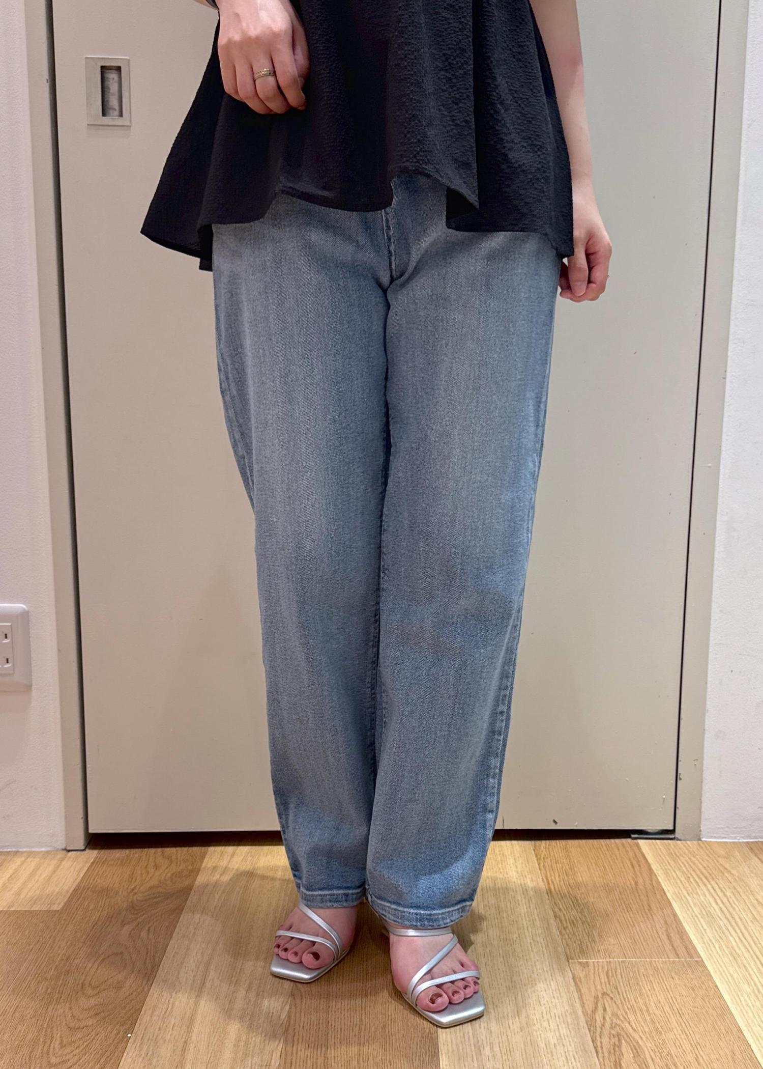 ハイウェストとストレートのようなシルエットで脚全体をきれいに見せくれます。