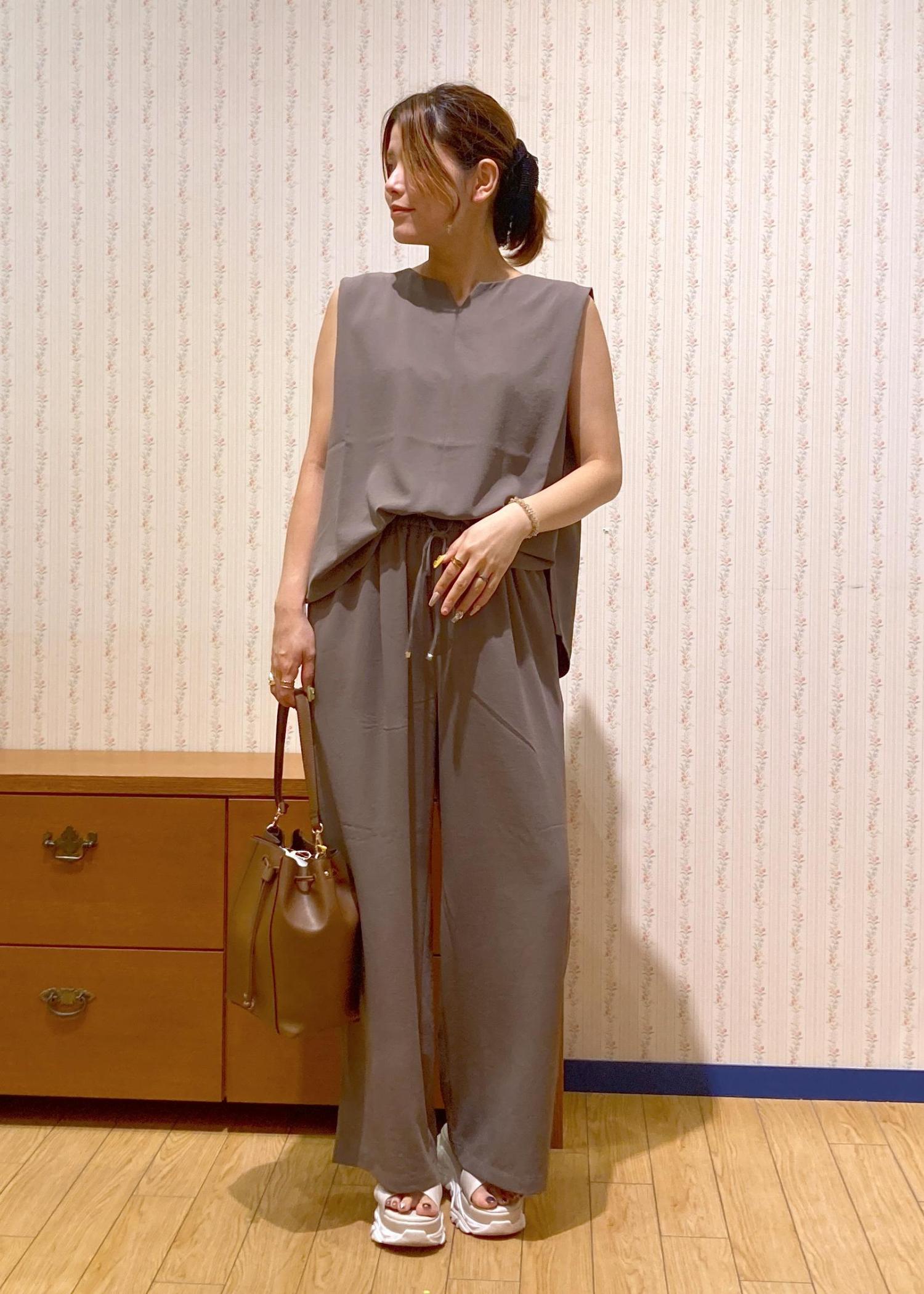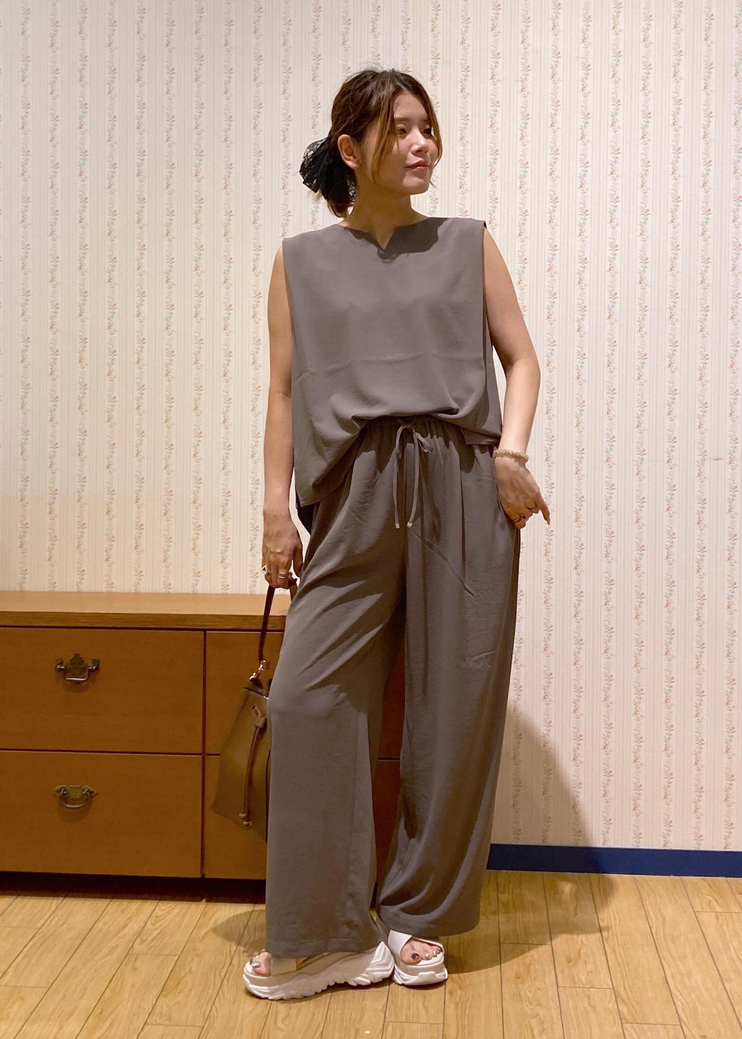 落ち感のある素材なのでワイドパンツがにがてなかたにもおすすめです!