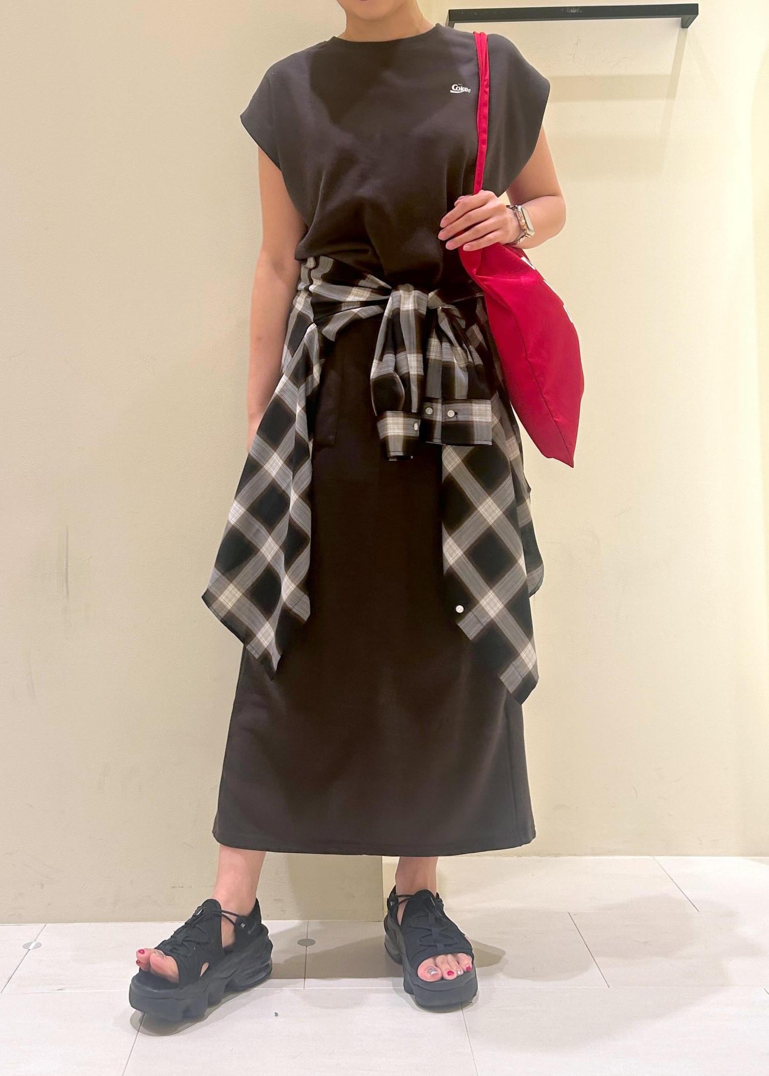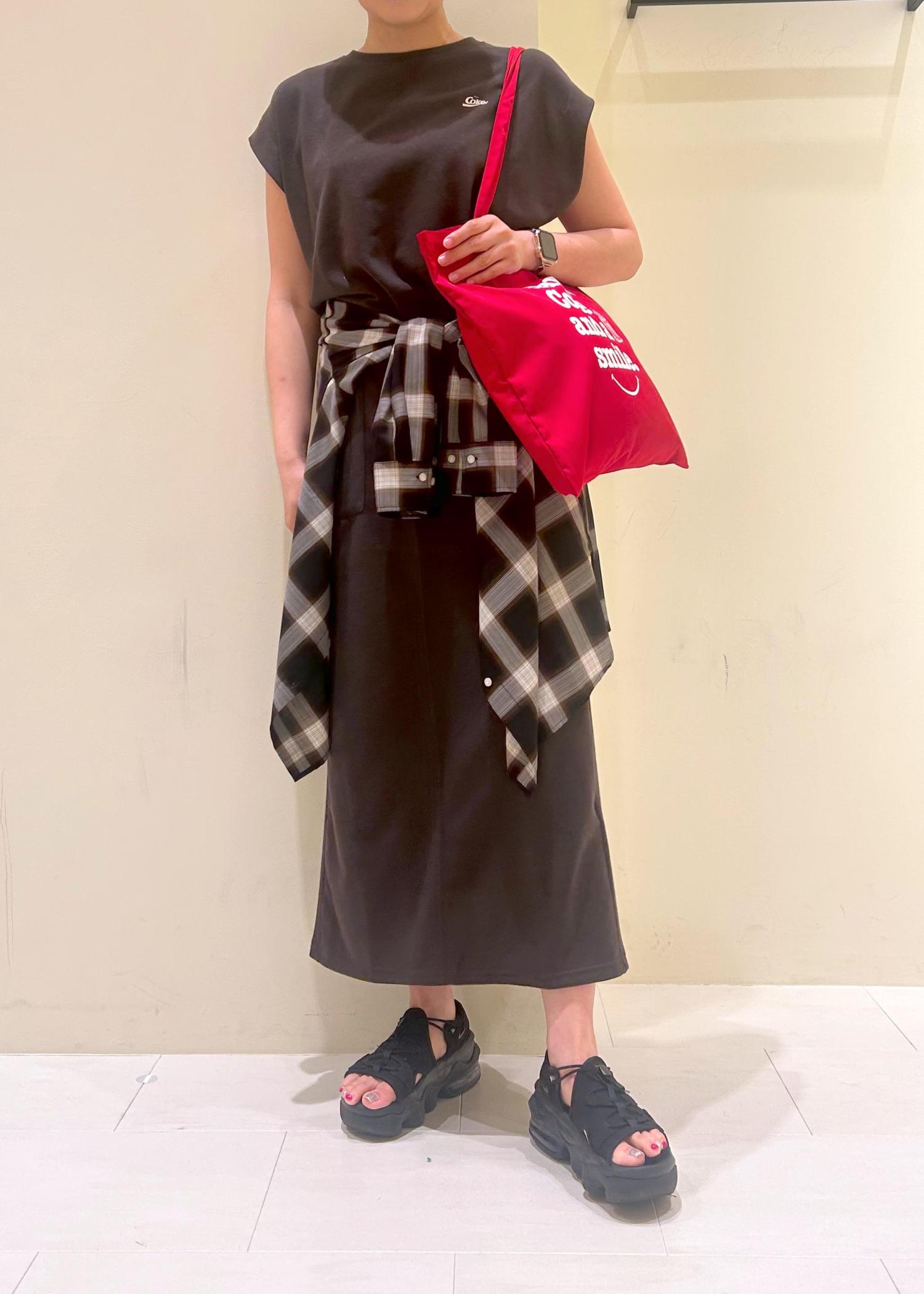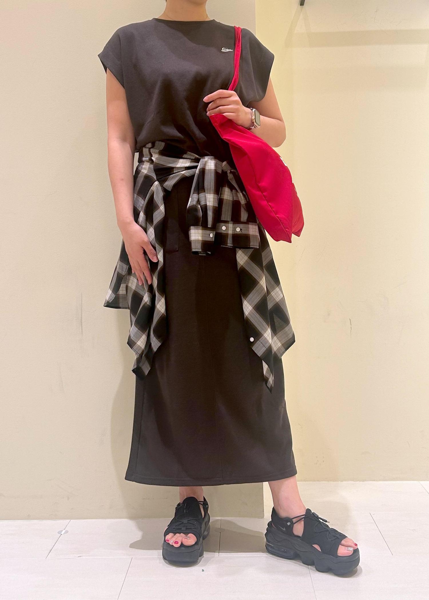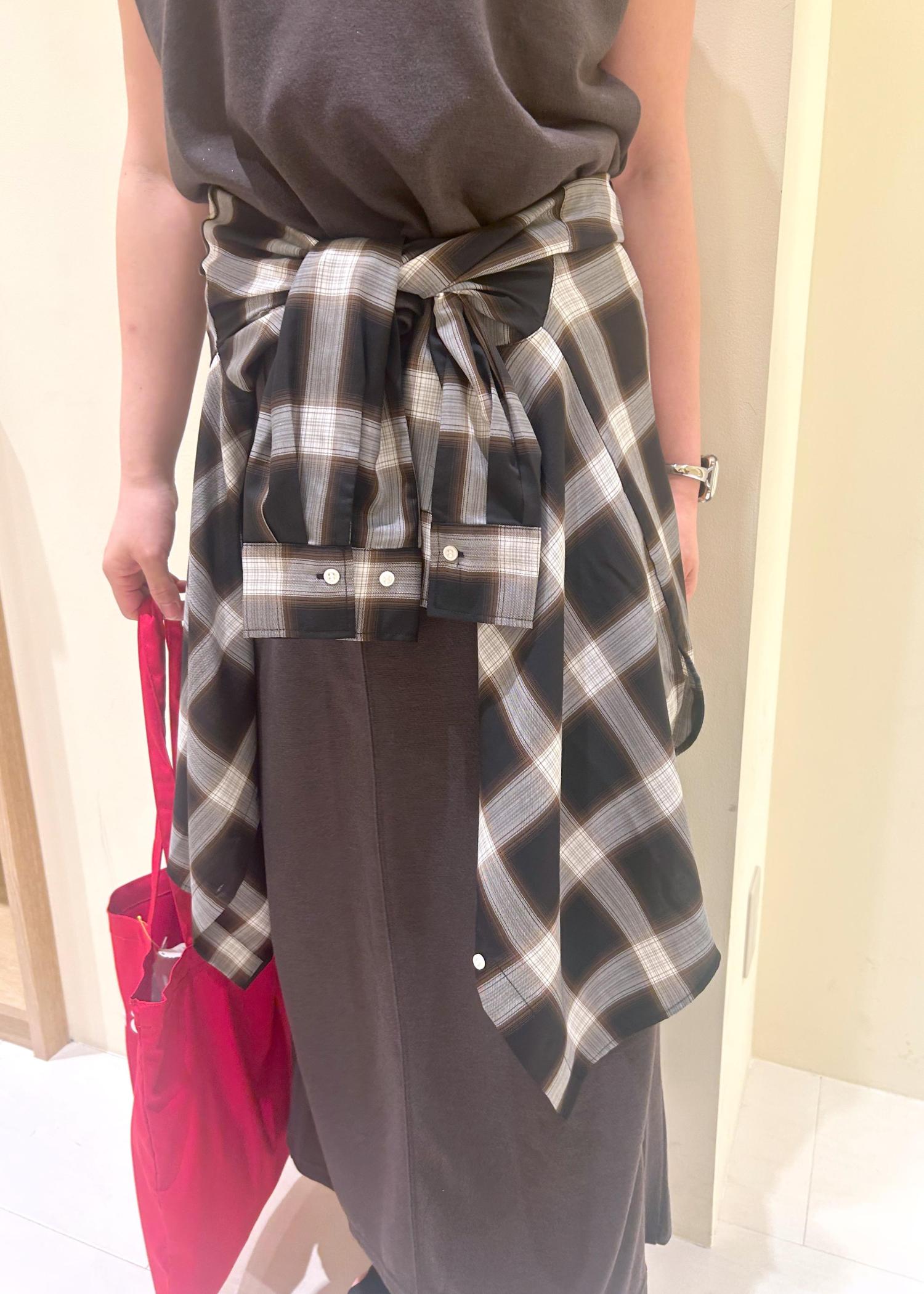 腰巻にしてチェックをポイントにしたコーディネートも◯ -