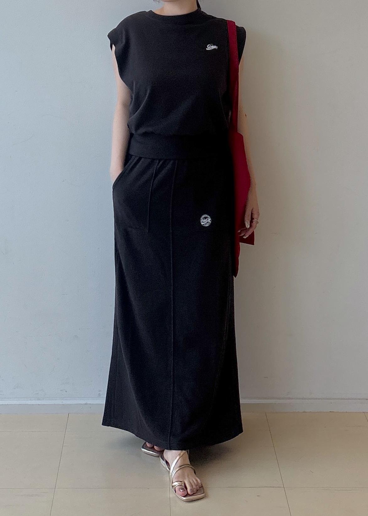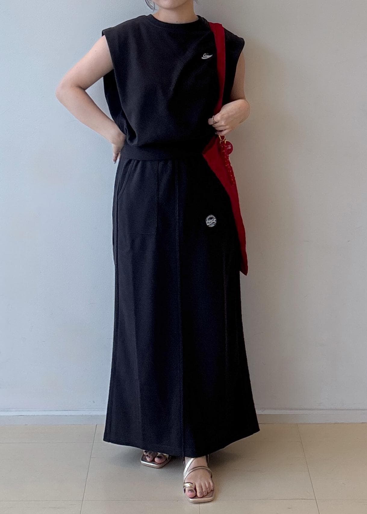 シンプルながら胸元とスカートに施されたロゴ刺繍がアクセントになり、さりげない遊び心をプラスしてくれます。