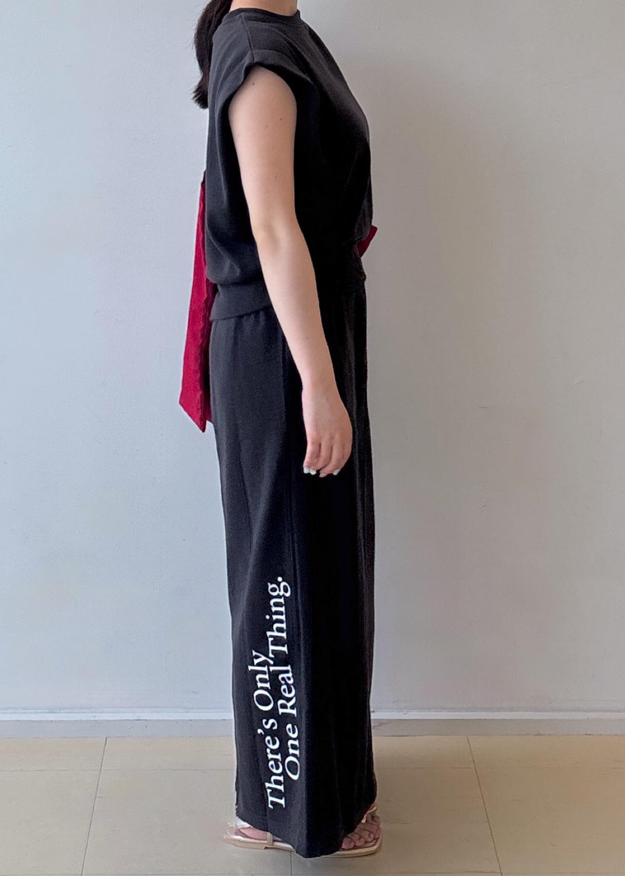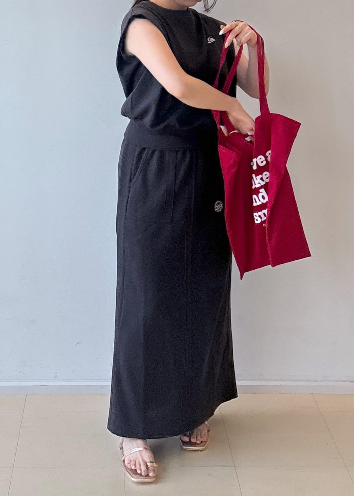 セットアップで着ることで統一感があり、一気にこなれた印象に。ウエストのリブデザインがほどよくメリハリをつけてくれるので、ラフすぎず大人っぽく仕上がります♡