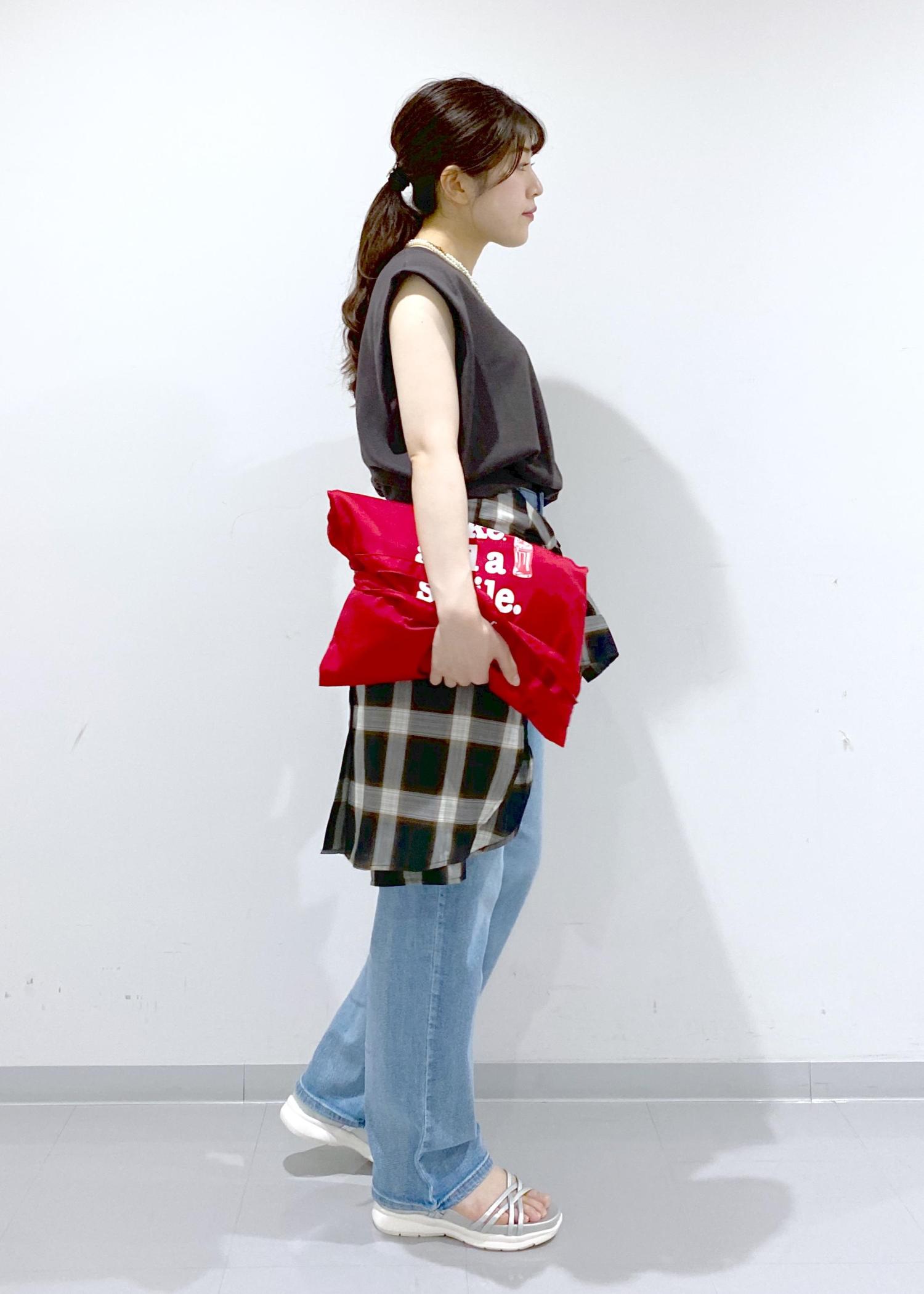 ウエストはかなり余裕があり、厚手のニットもインできます。 -