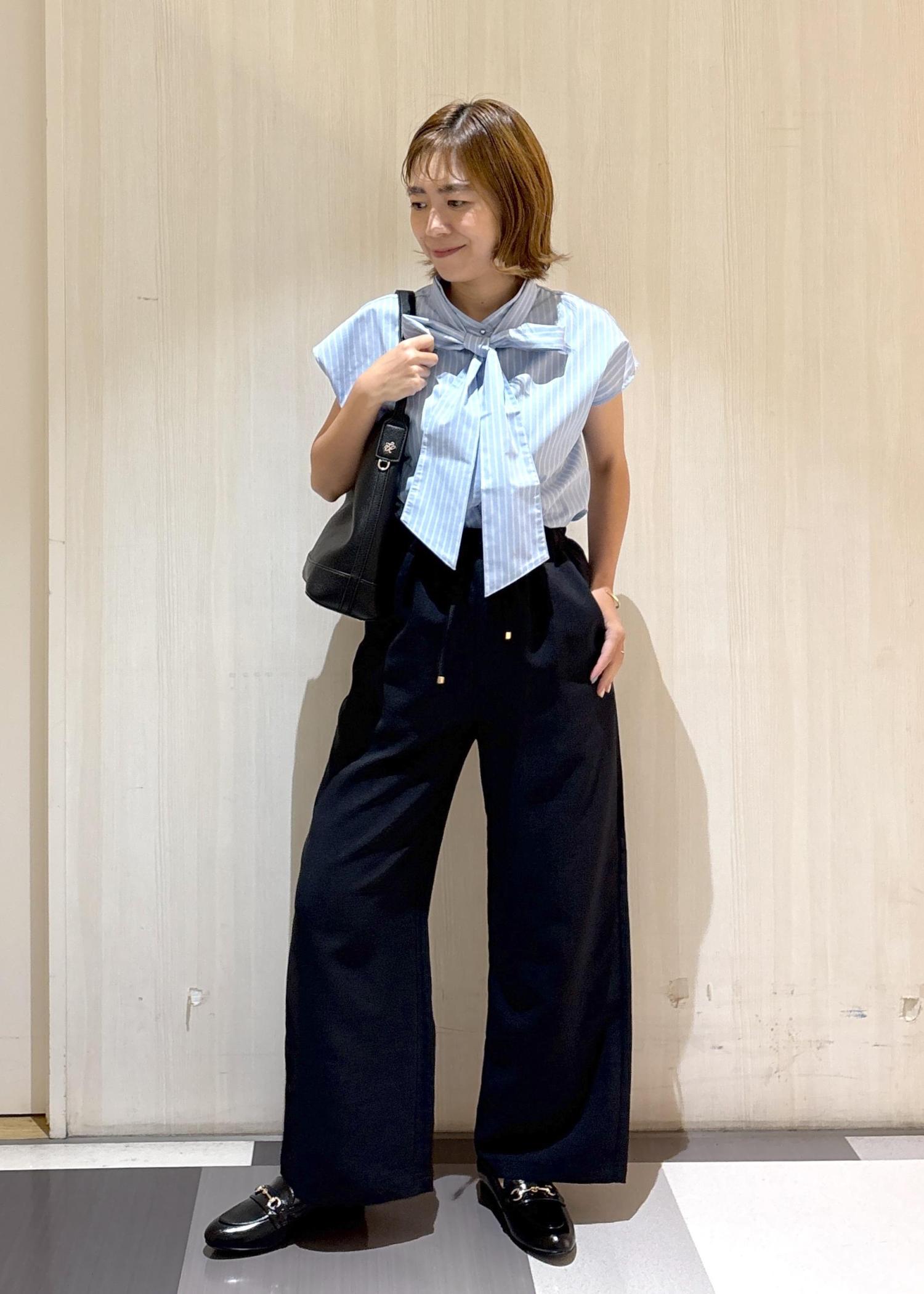 ワイドパンツで、ストンとした落ち感が涼しげで軽く、今の季節にぴったりです☆
