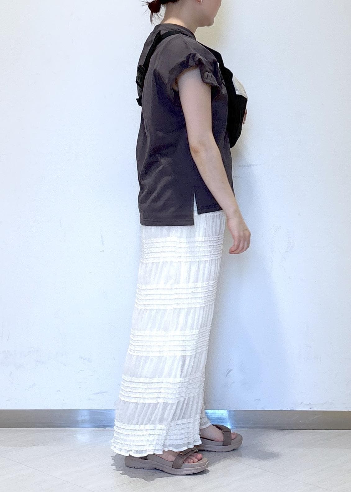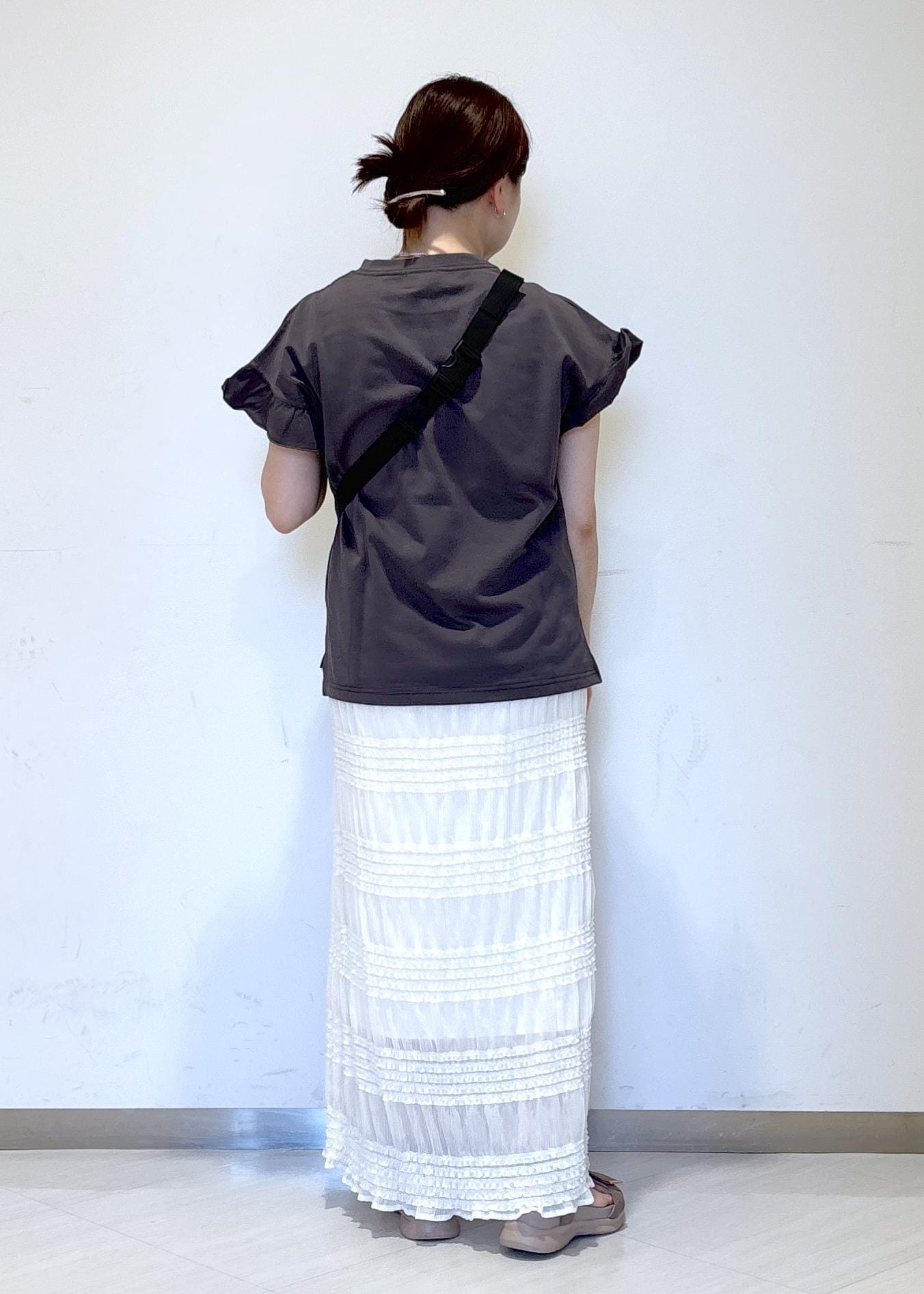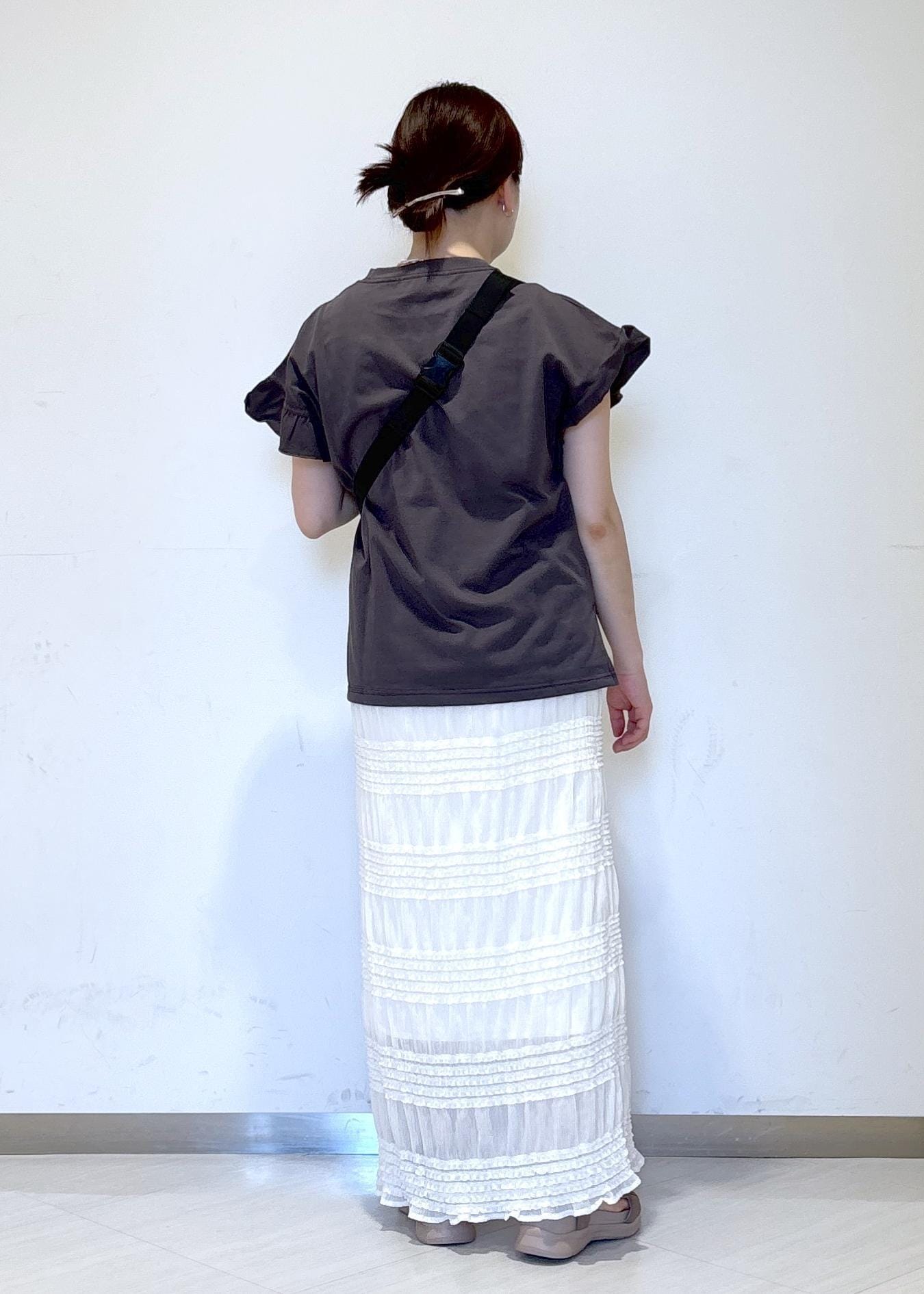 ROPÉ PICNIC袖フリルカレッジロゴTシャツチャコール / 38¥4,499レビューフリルデザインですが、甘すぎない印象にしてくれます。サイドスリットが入っているので、アウトスタイルもきれいです◎