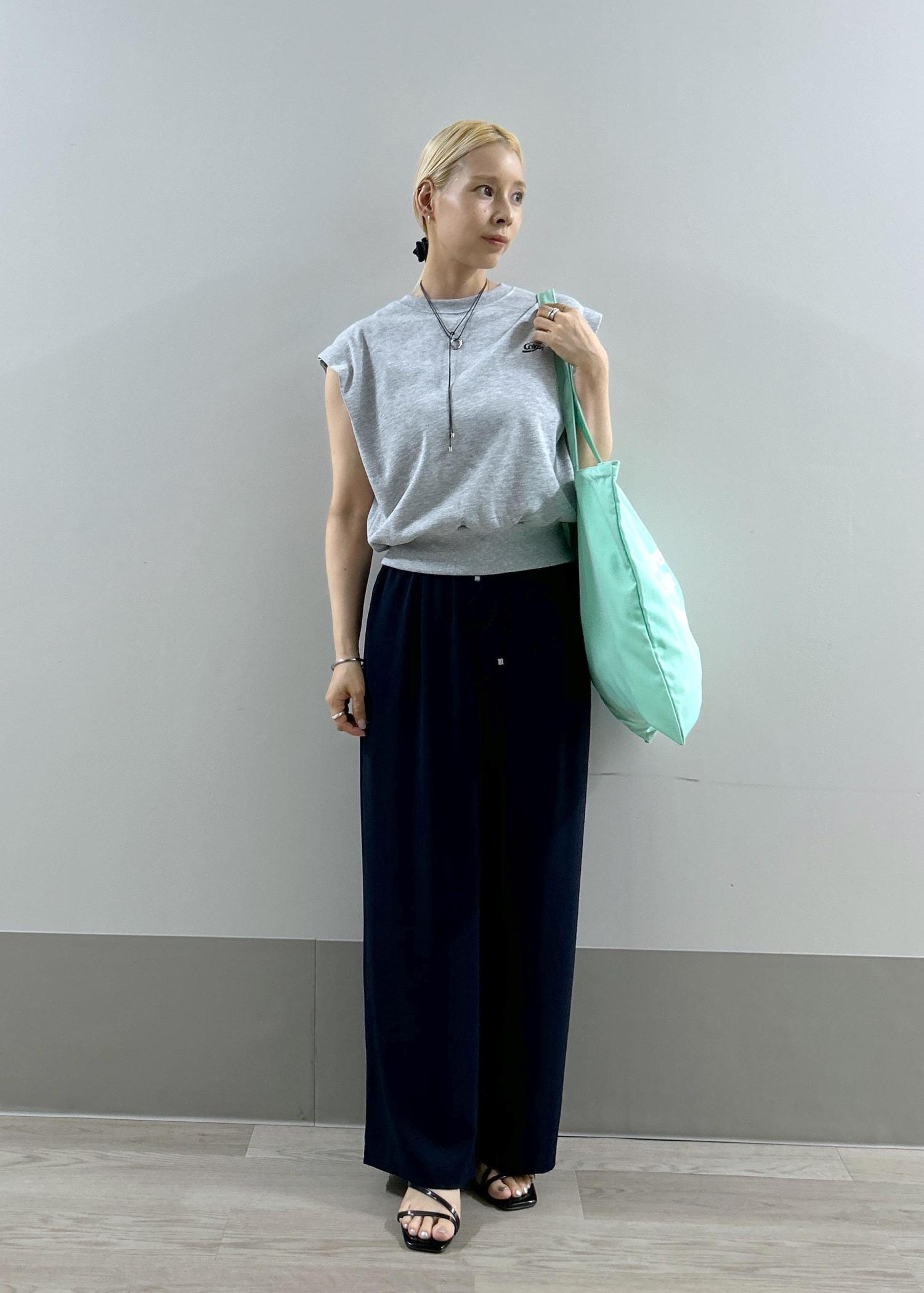 カジュアルになりがちな裏毛ですが、キレイめパンツと合わせて大人なスタイリングに♪