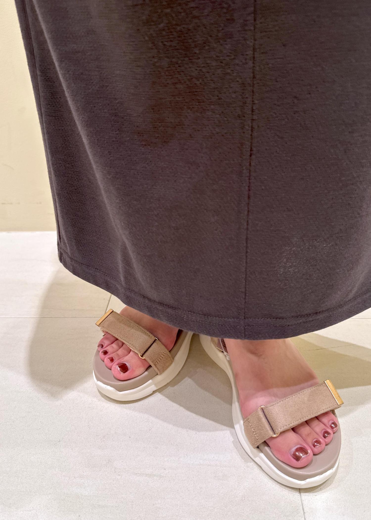 足首のストラップも足の甲のアッパーも柔らかい素材では履きやすく、さらにマジックテープでサイズ感を調節しやすいです。