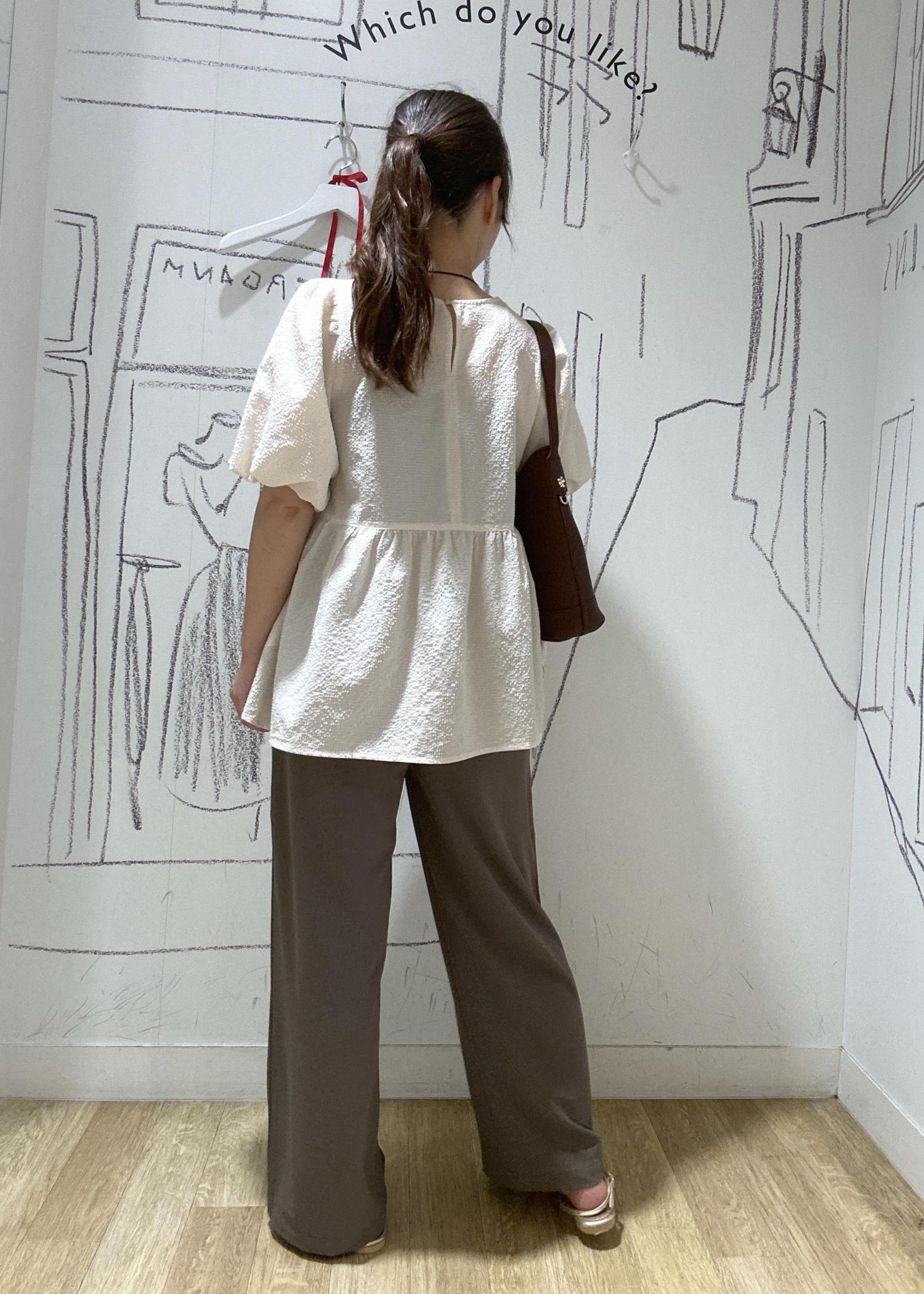 ペプラムシルエットでも、ボリュームが出過ぎず、すっきりと着られます。