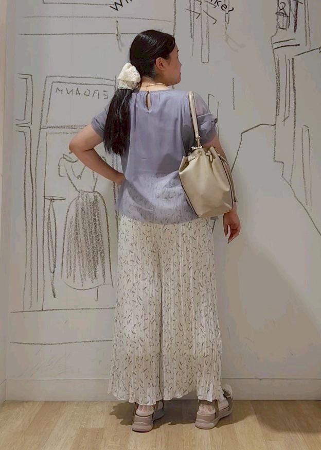 ブルーと花柄のパンツスタイルコーデ