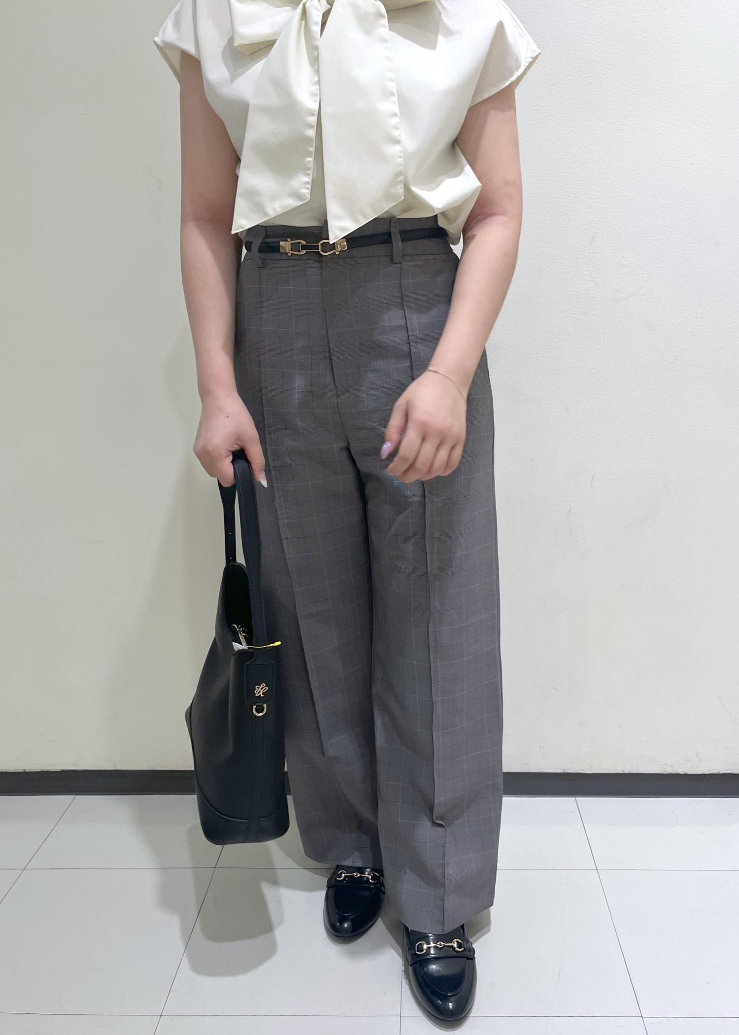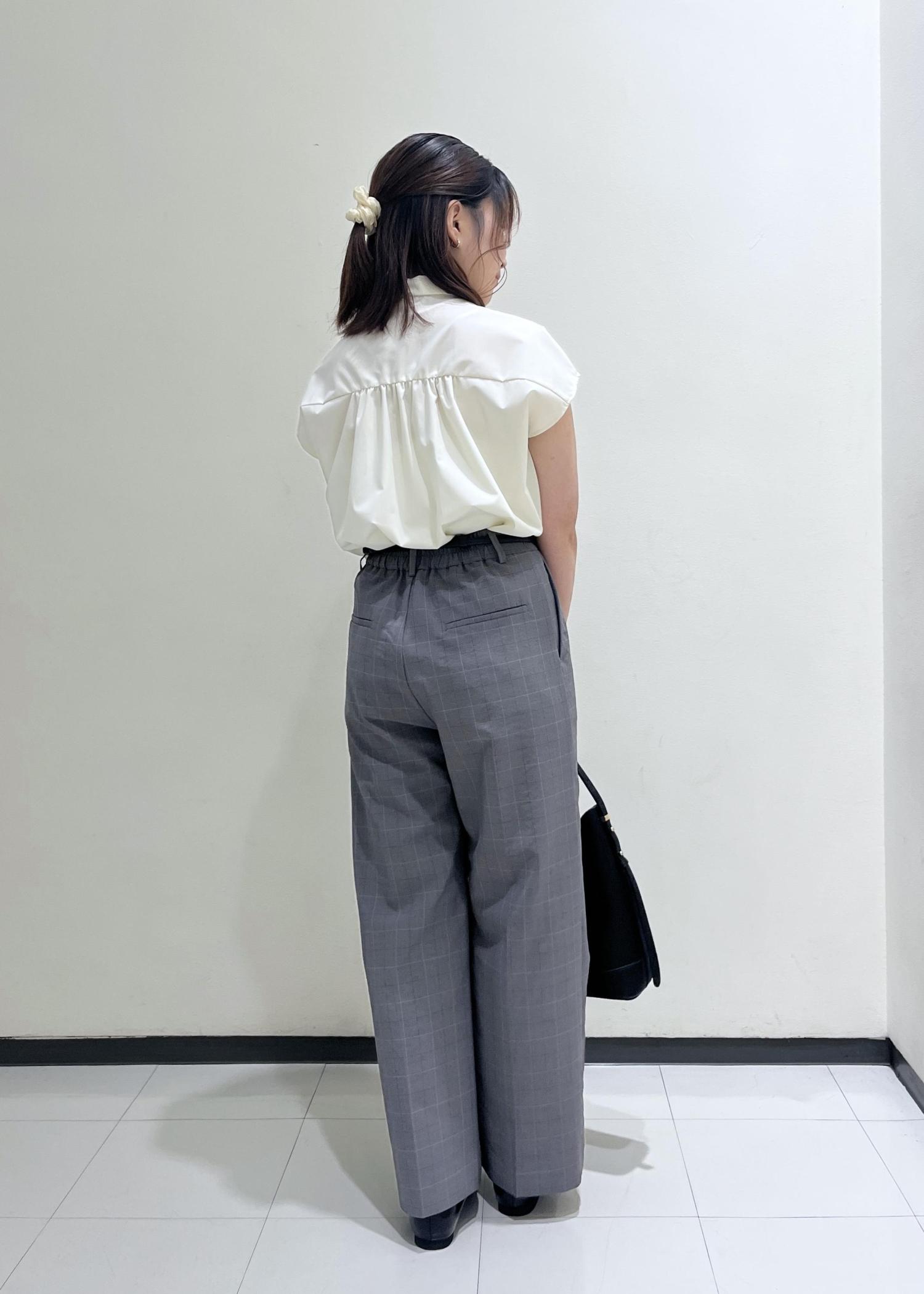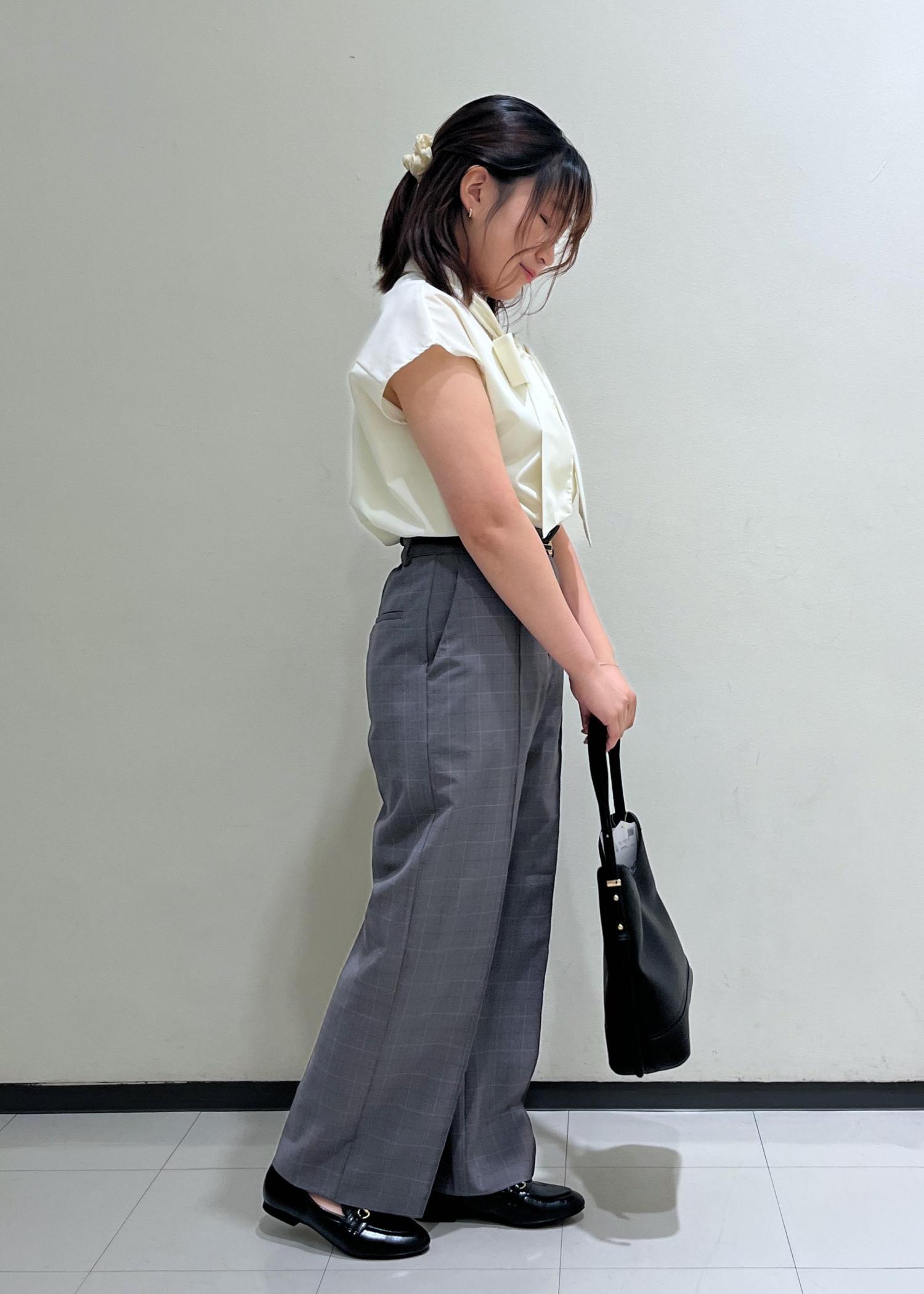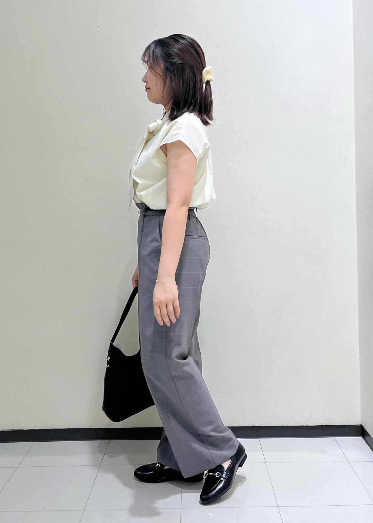 このコーディネートのおすすめポイントは、低身長の方でもバランスよく着こなせるパンツです!ピンタックできれいめな印象なのでオフィスカジュアルにぴったりです☺︎