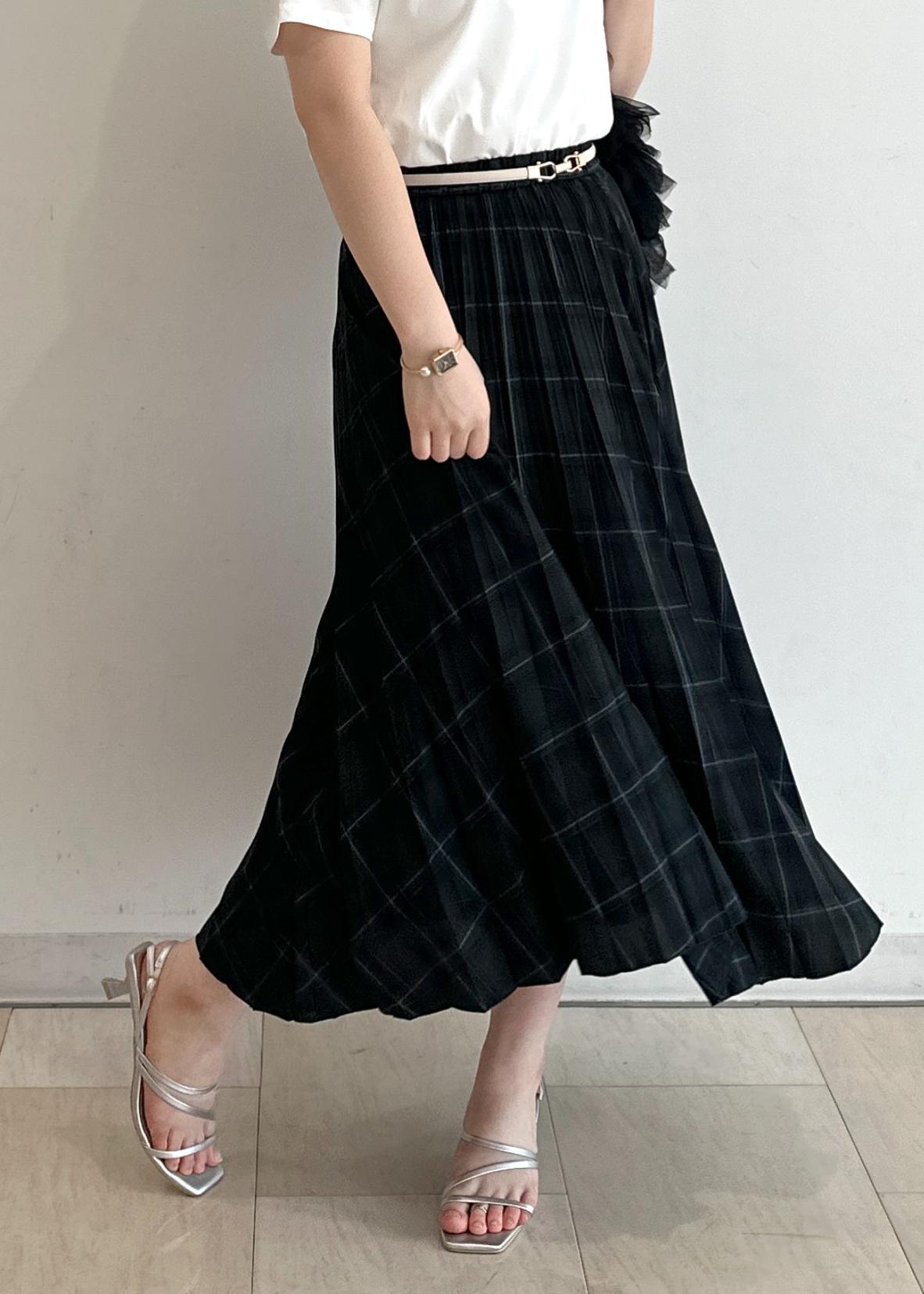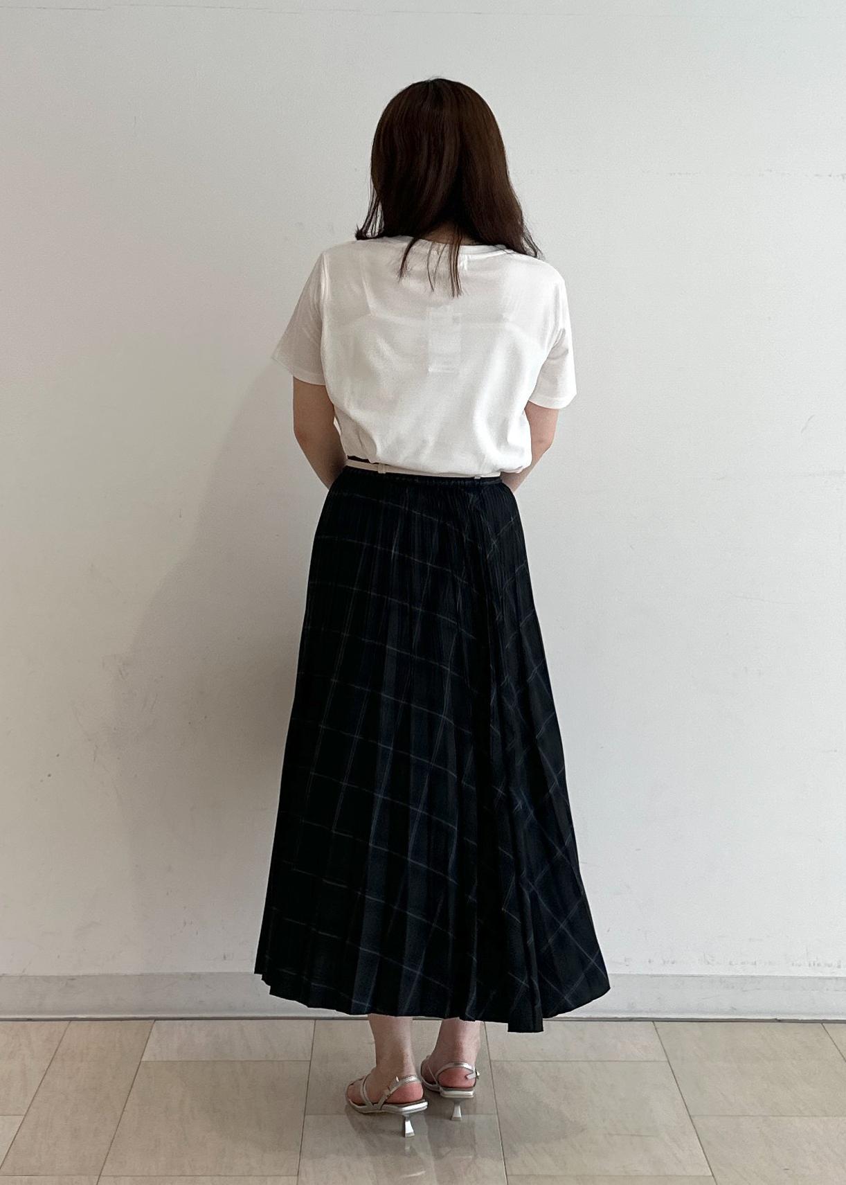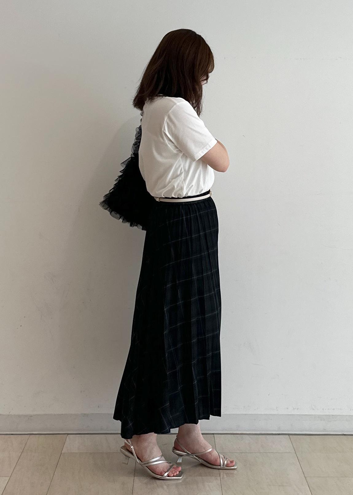 秋先取りのチェックスカートとシンプルなロゴが可愛らしい雰囲気を作ってくれて、着飾らなくてもおしゃれに見えるコーディネートです♪