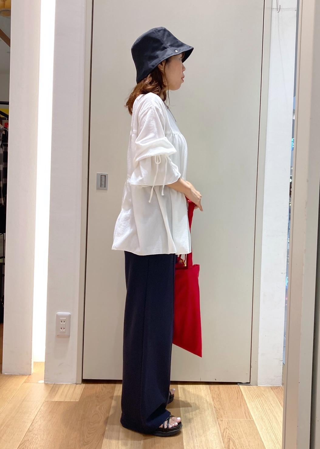 ハットやサンダルの色味は黒で統一して、Coca-Colaコレクションのトートバッグがポイントになるようにまとめました。