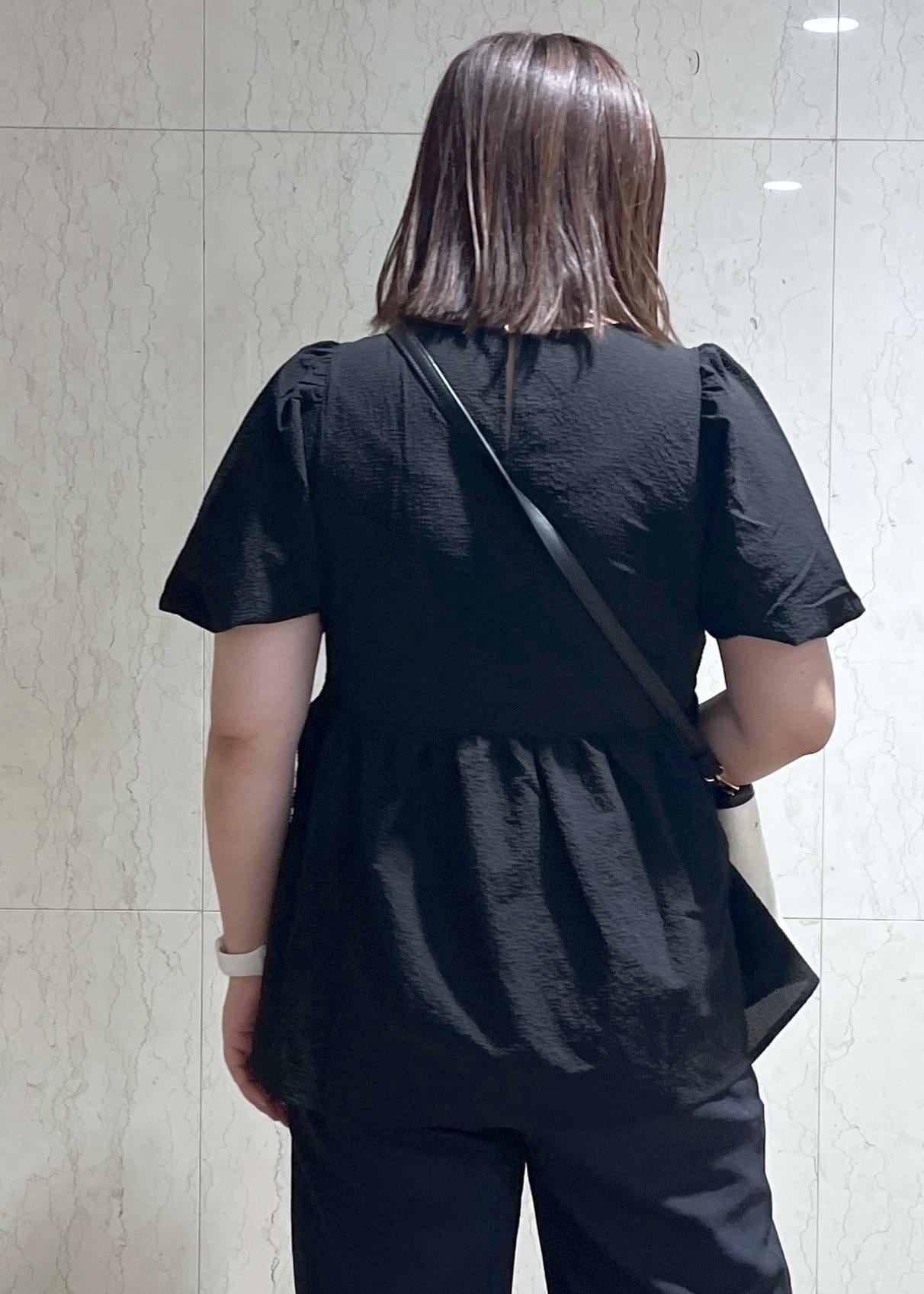 ペプラムブラウスは生地に凹凸がありサラッと着れて、デザインもかわいくておすすめです☺︎