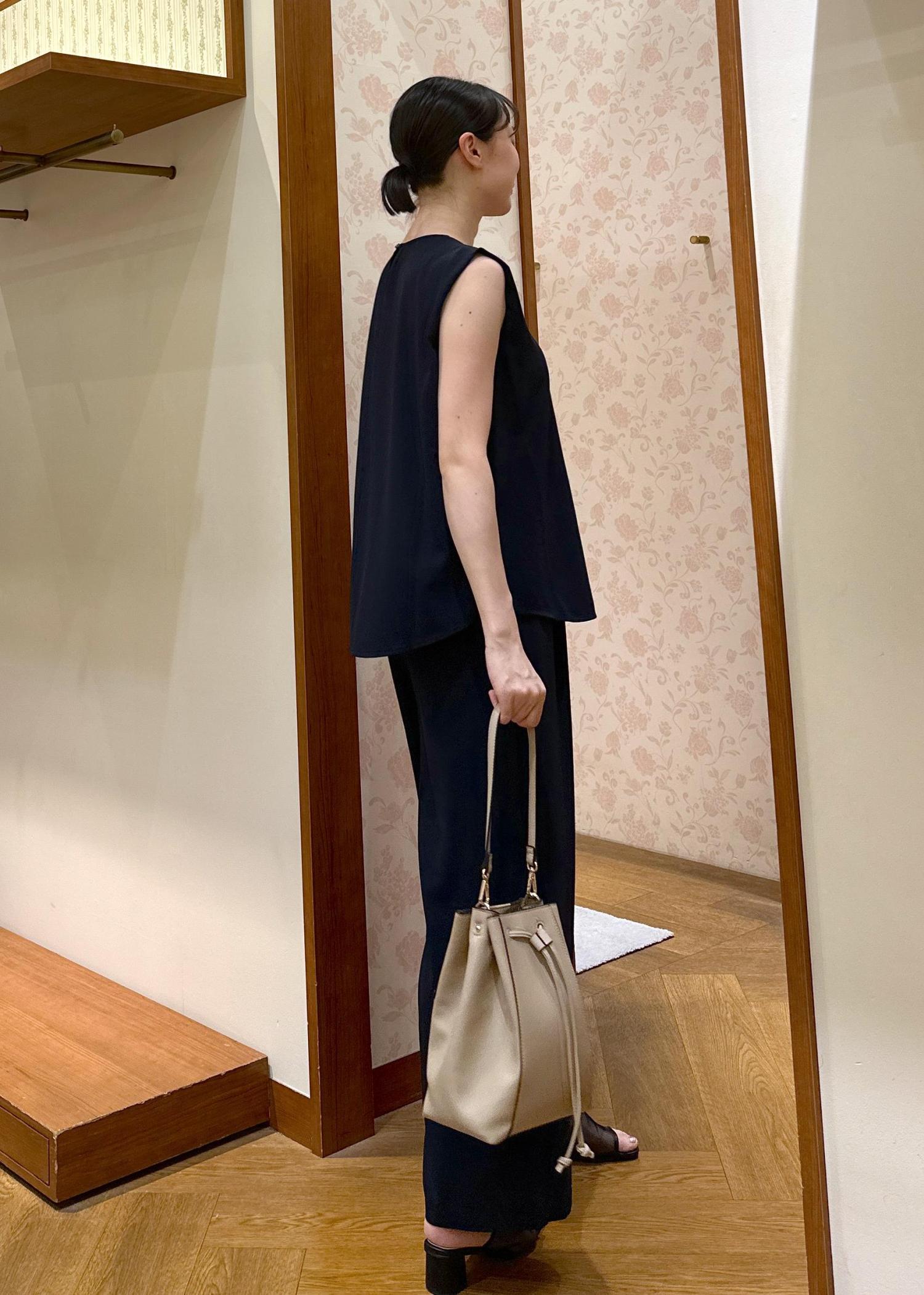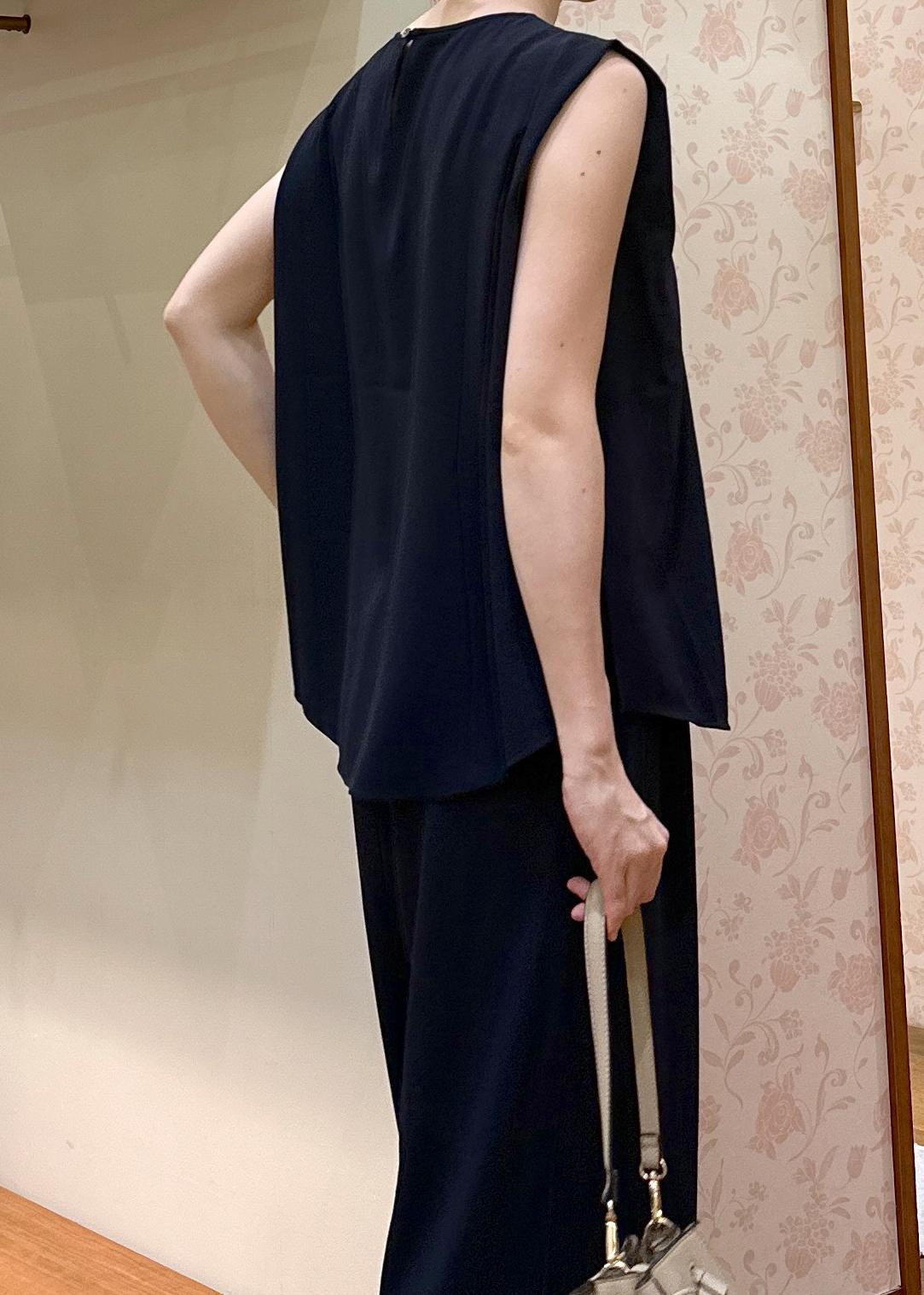 ROPÉ PICNICジョーゼット肩タックブラウス/セットアップ対応ネイビー / 38¥4,499レビューポリエステル100%ですが、オーバーなサイズ感なので涼しいです。二の腕も細く見せてくれます。
