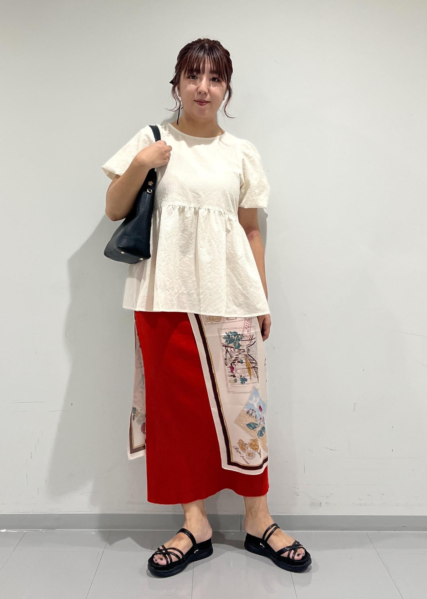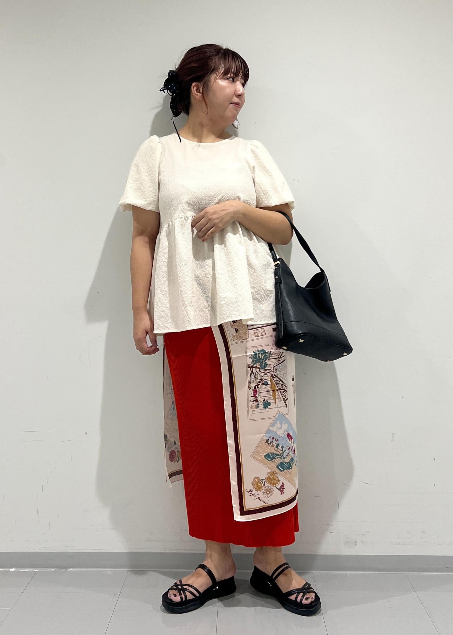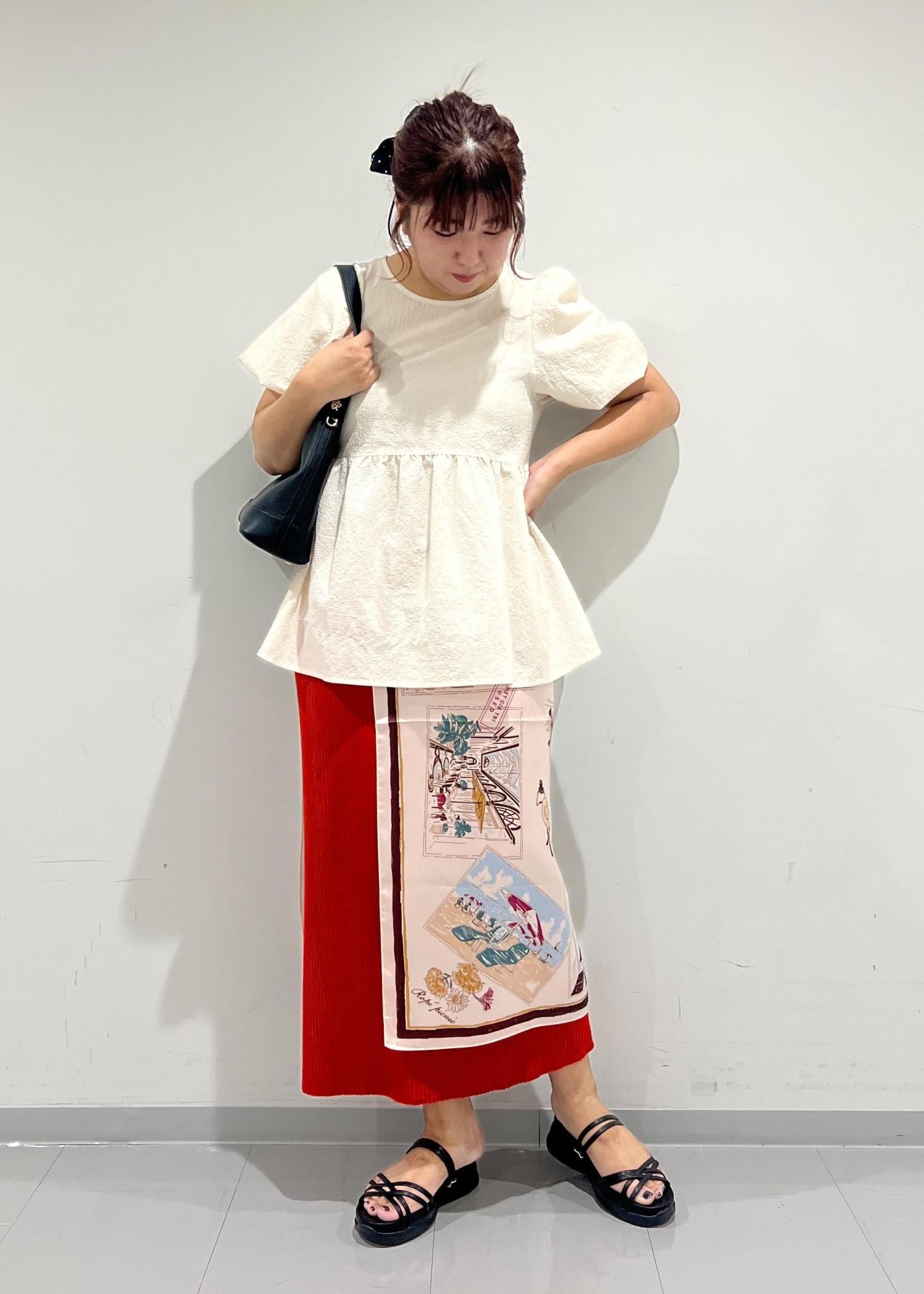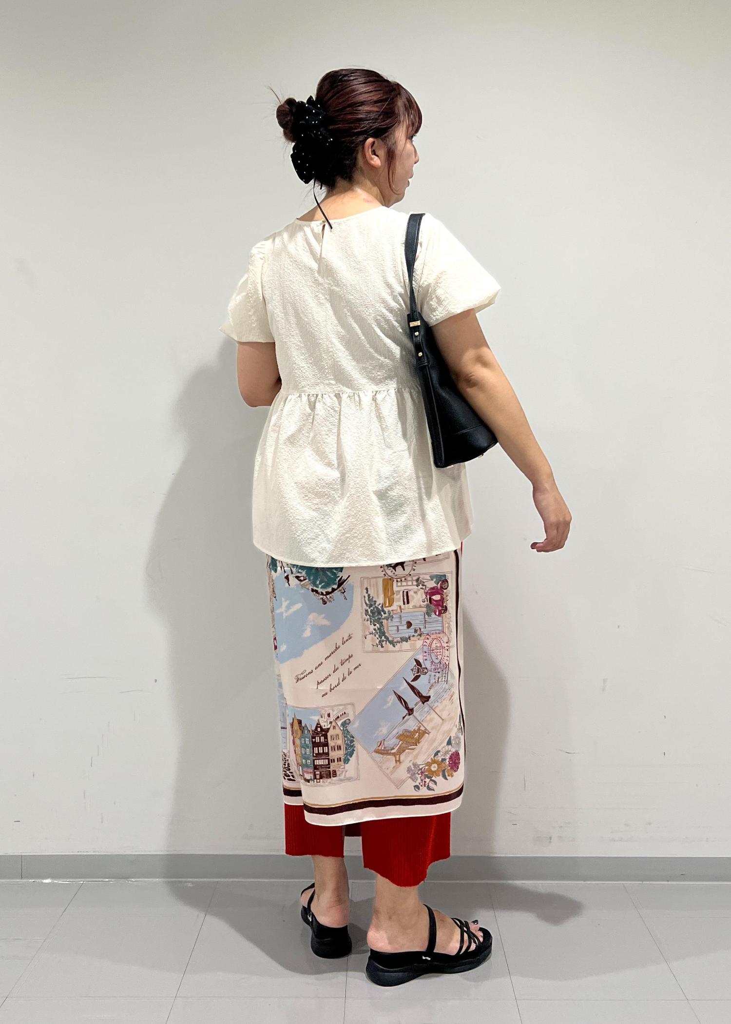 伸縮性があり、とっても履きやすいテレコスカート。全体的に伸びるので足さばきが楽ちんです。インナーゴムになっていてインしたスタイルもとっても綺麗にみえます○