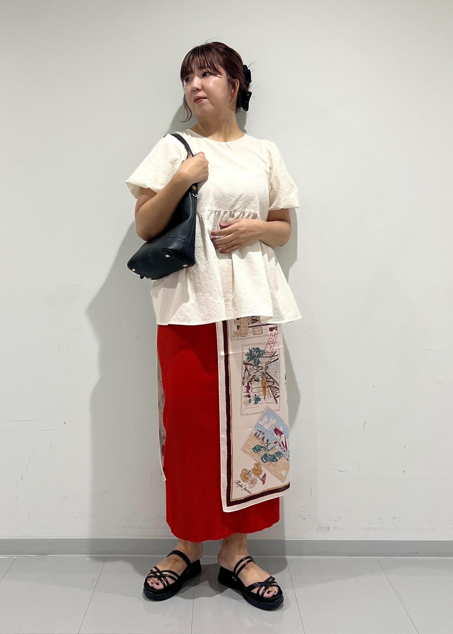 大判にリニューアルしアレンジの幅が更に広がったスカーフです!腰巻やビスチェ巻などレイヤードコーデに1枚あると便利です!