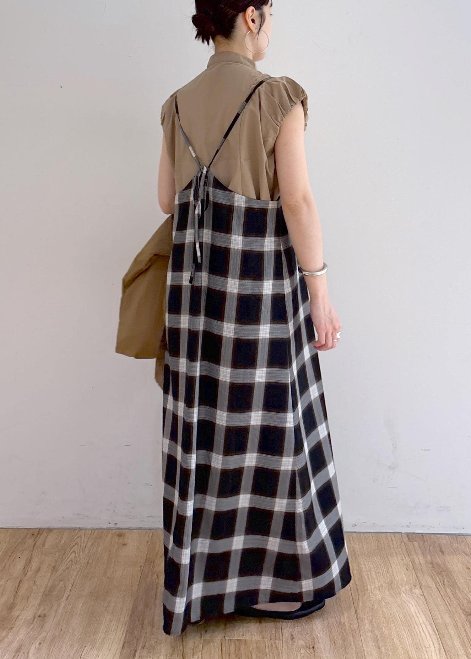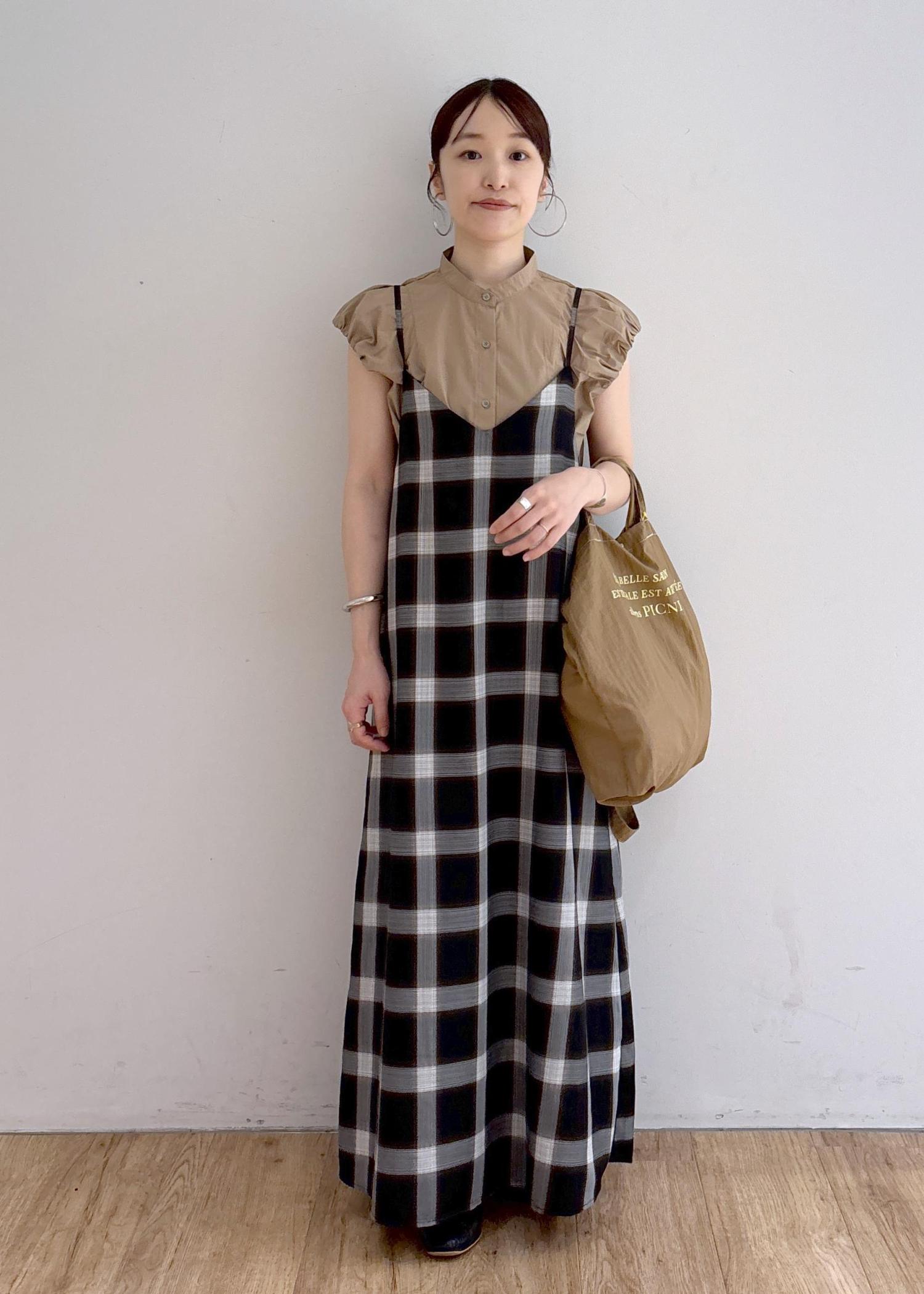 ROPÉ PICNICオンブレチェックキャミソールワンピースブラック / 38¥5,995レビューチェック柄が秋先取りなワンピースです。紐の調節が可能なので小柄な方も着用できます。私は長めに着たいのでぎりぎりの丈にしましたが、足首が見えるようにも調節できます。