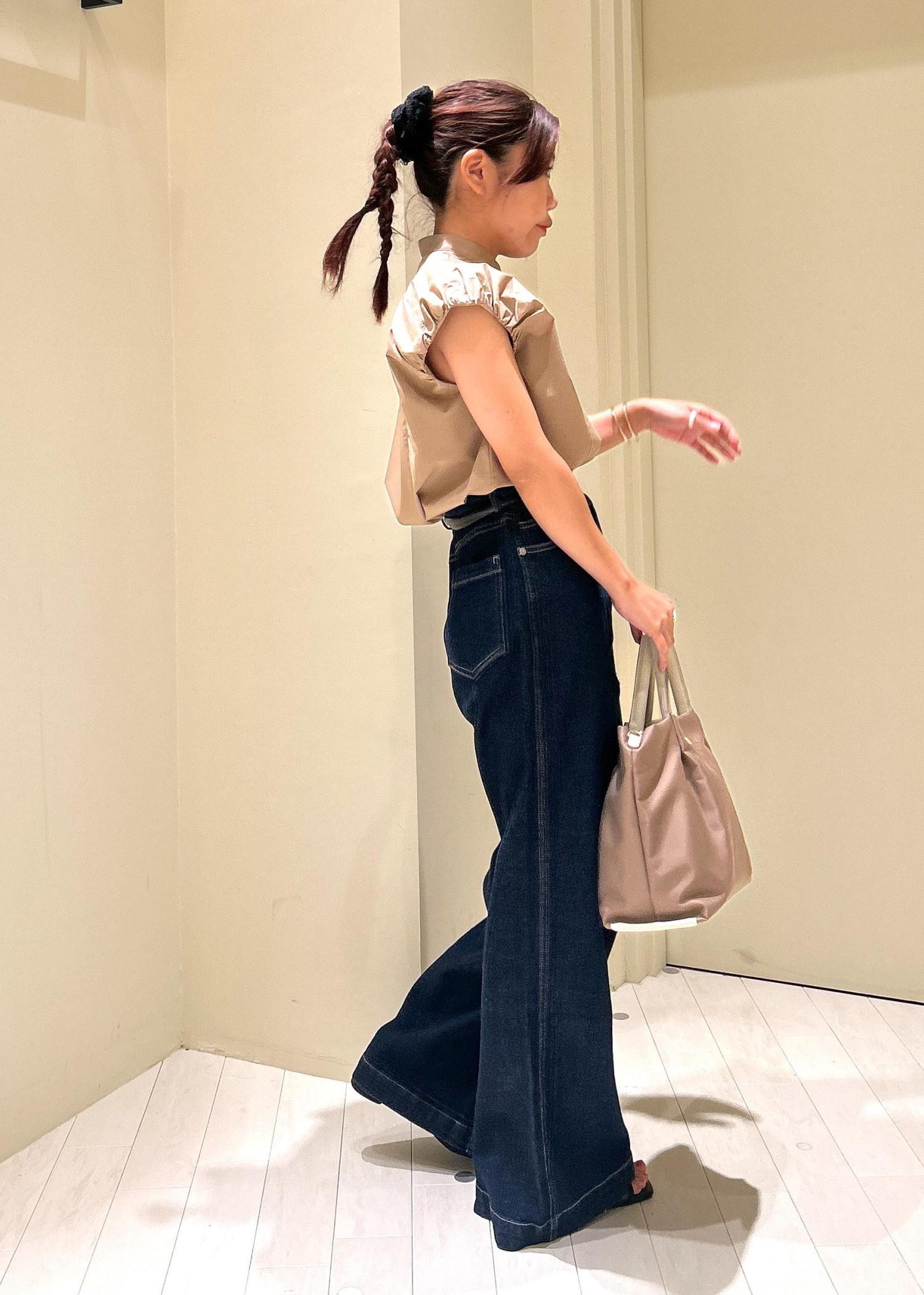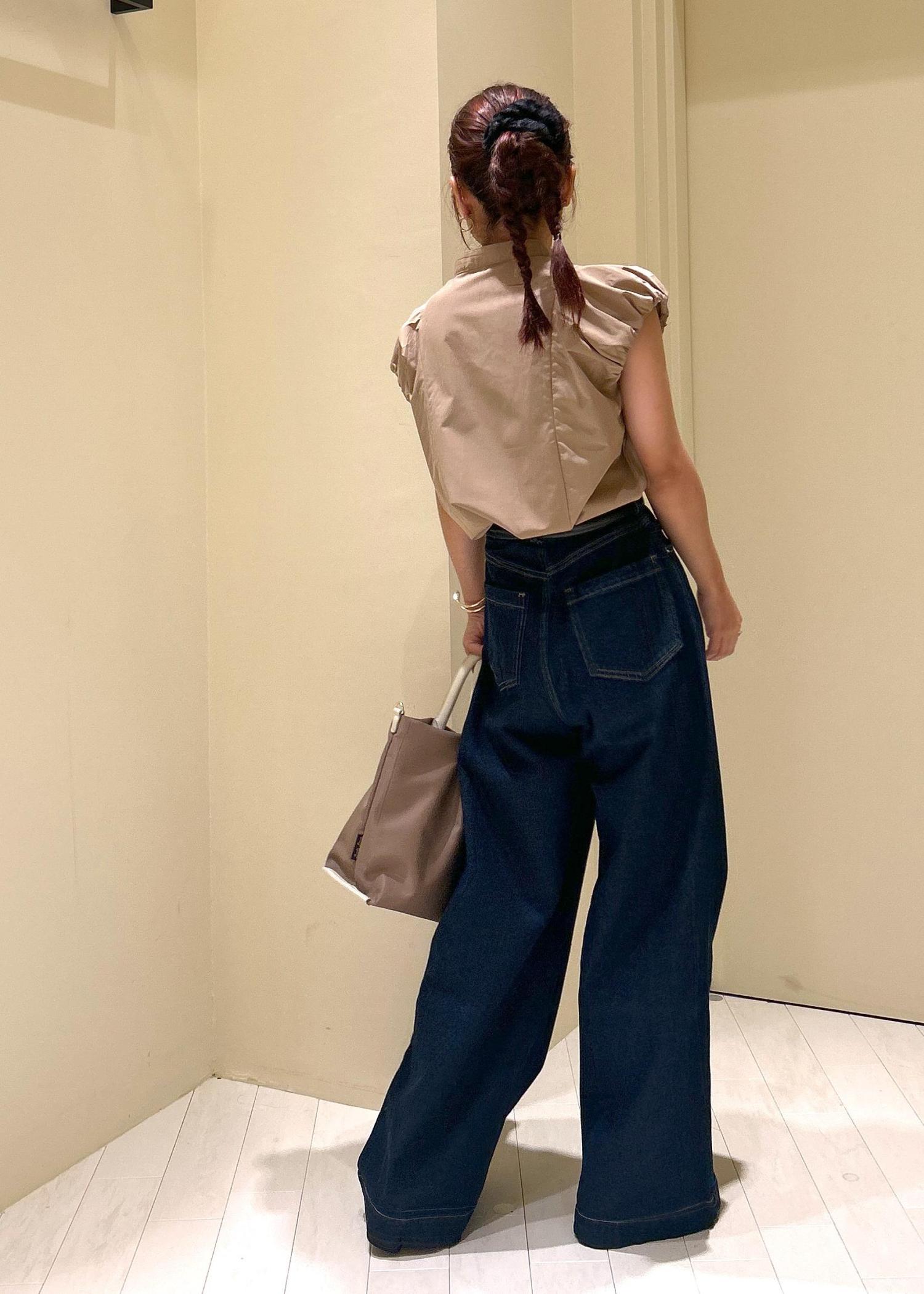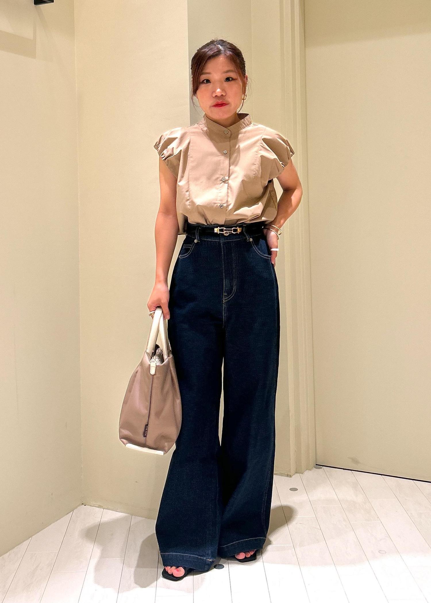 ハイウエストのボトムスなのでお腹周りの締め付け感が気になる方は普段のサイズより1サイズ上がおすすめです。