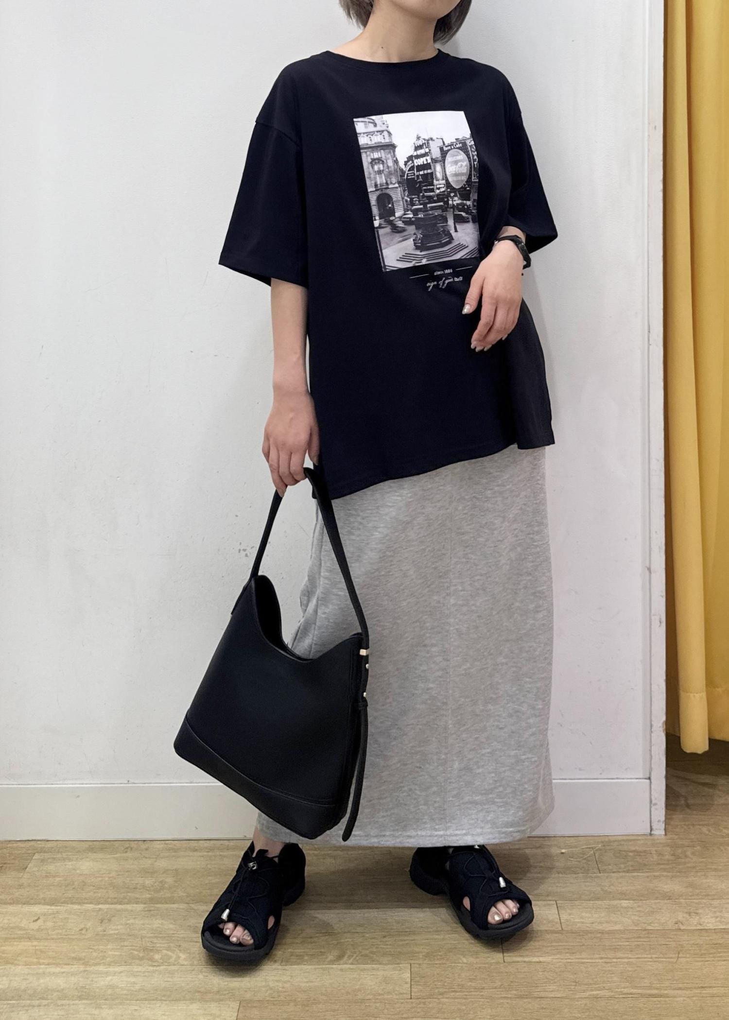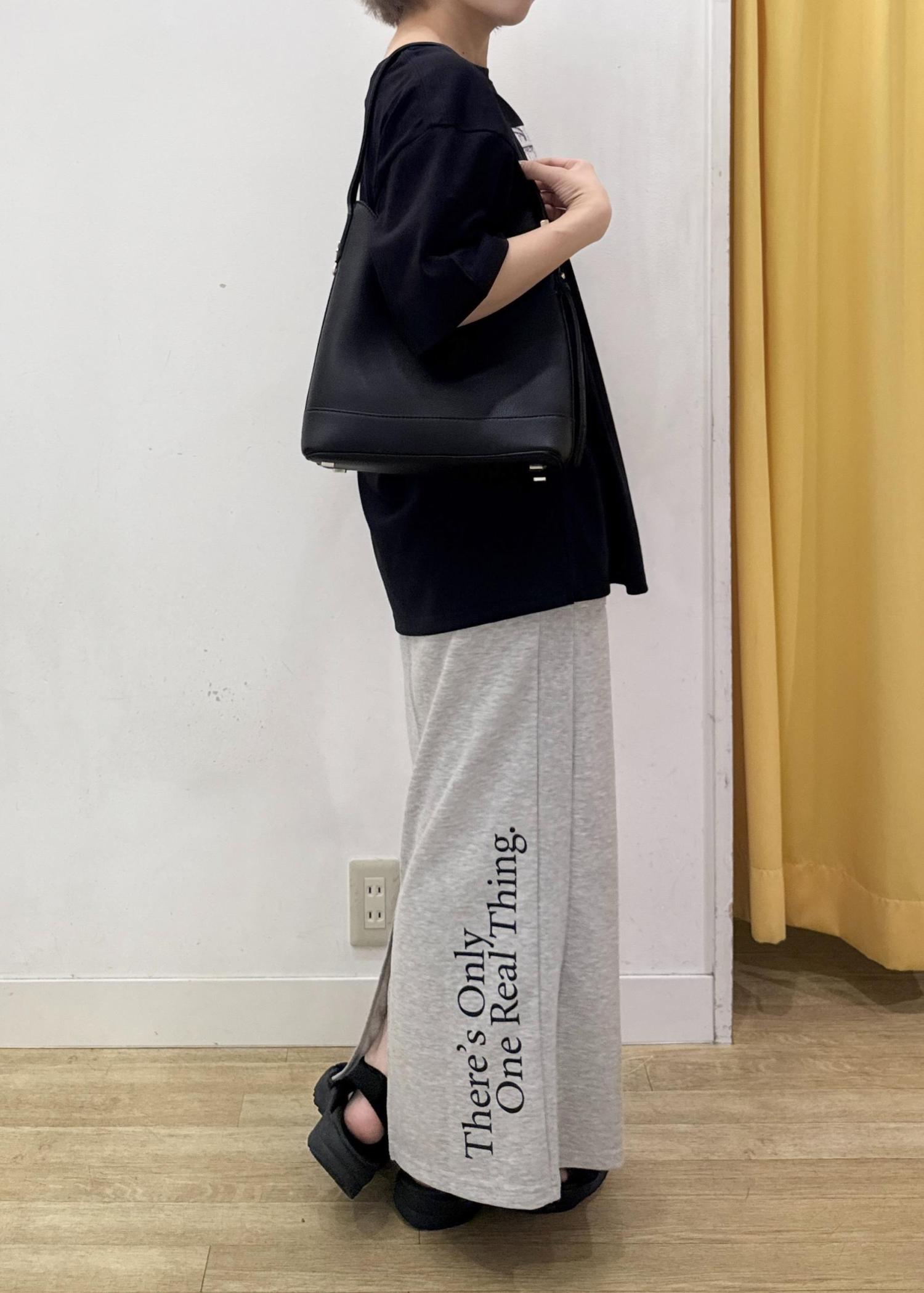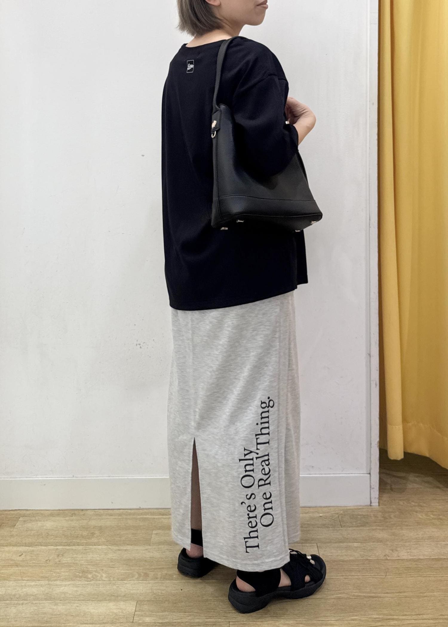 少しゆとりのあるアイラインシルエットなので、身体のラインを拾いすぎずにスッキリ見えするスカートです。 -