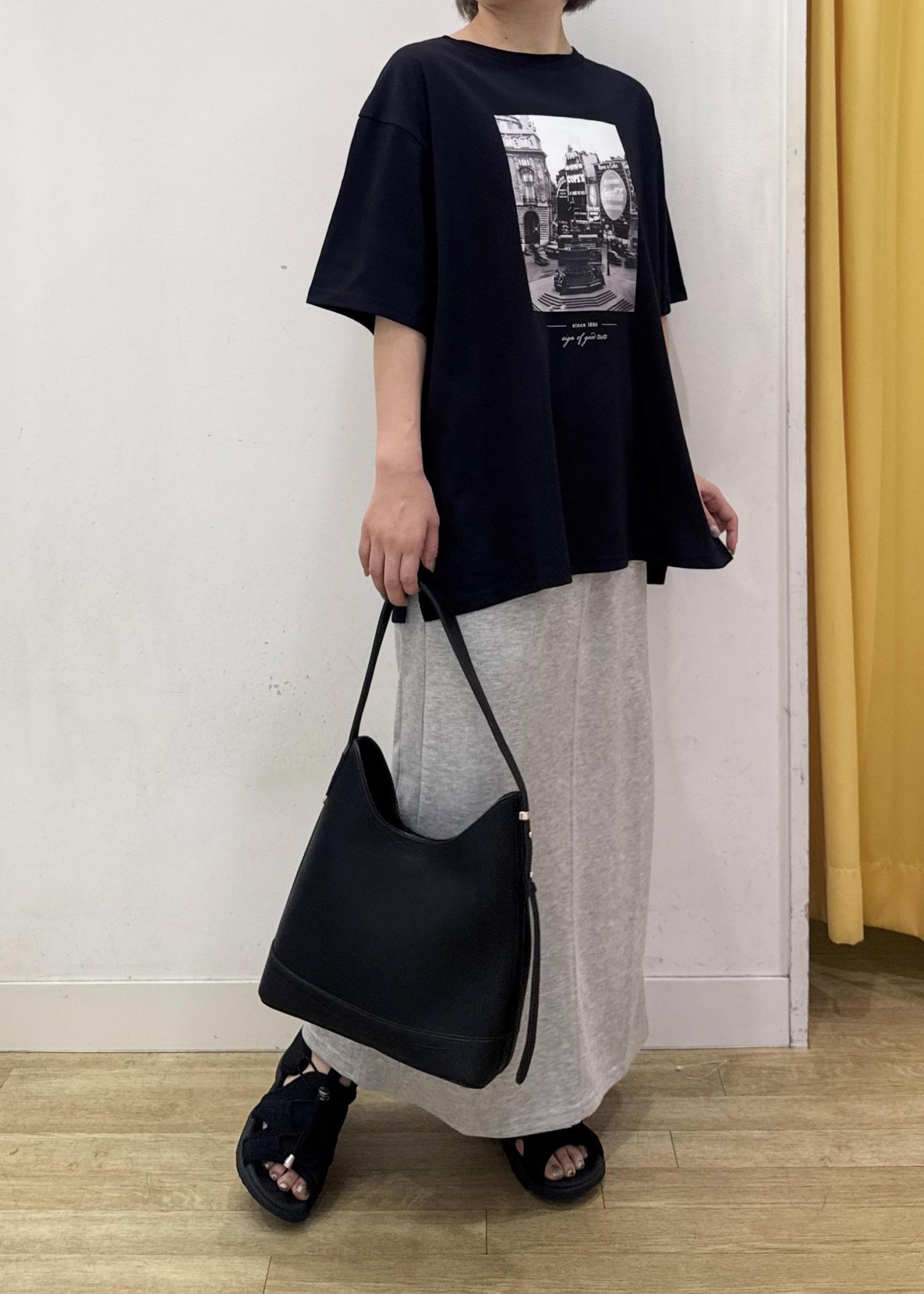 Lサイズはヒップをカバーできるぐらいの着丈で、全体的にゆったりオーバーサイズ。