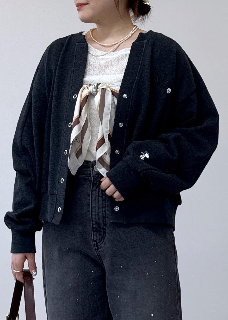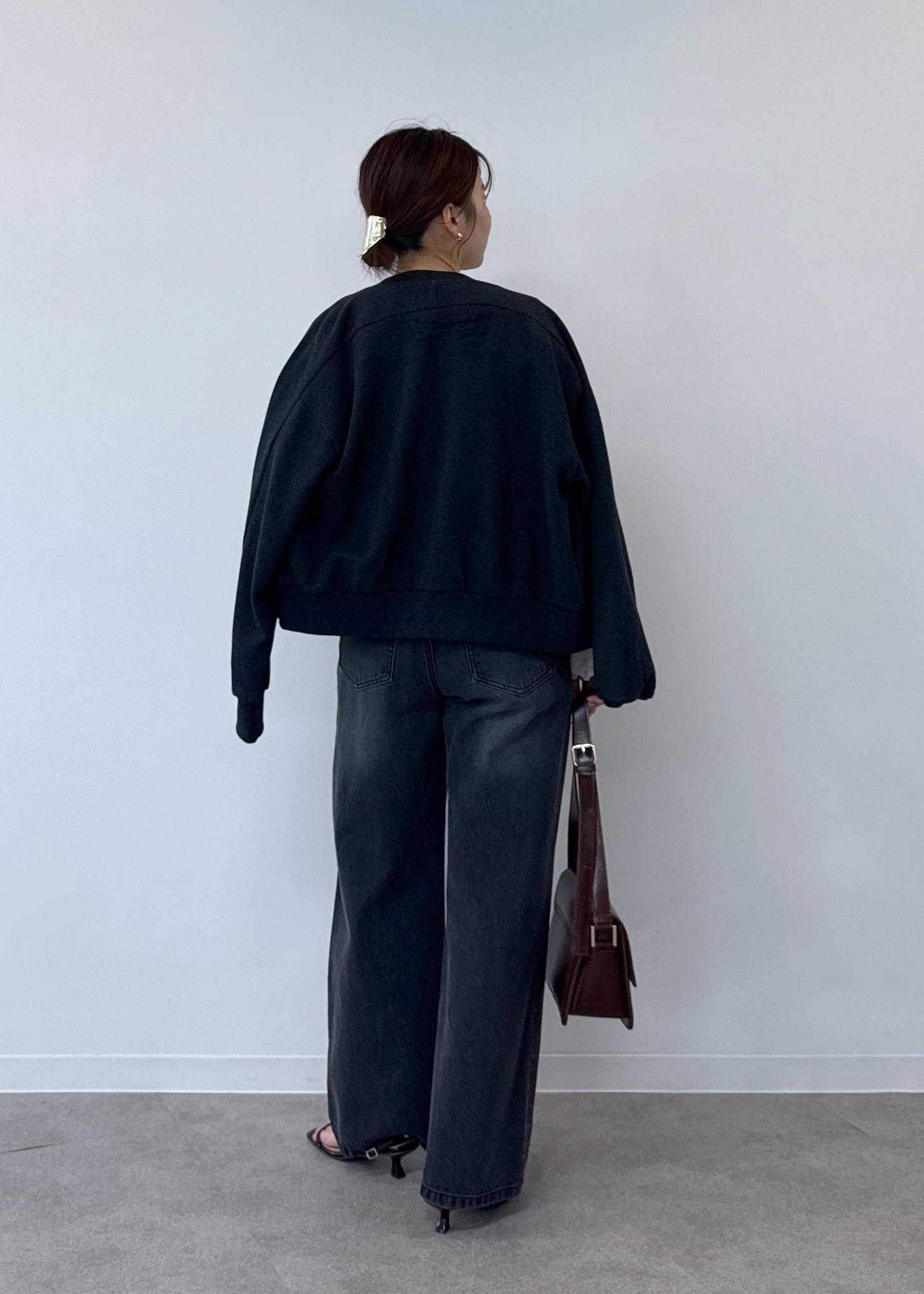 柔らかい綿素材のスタジャン風のスウェットカーディガンです。秋〜春まで長く使える生地感です。