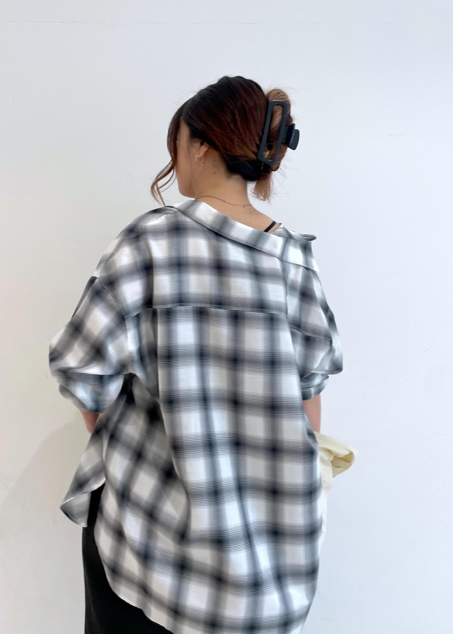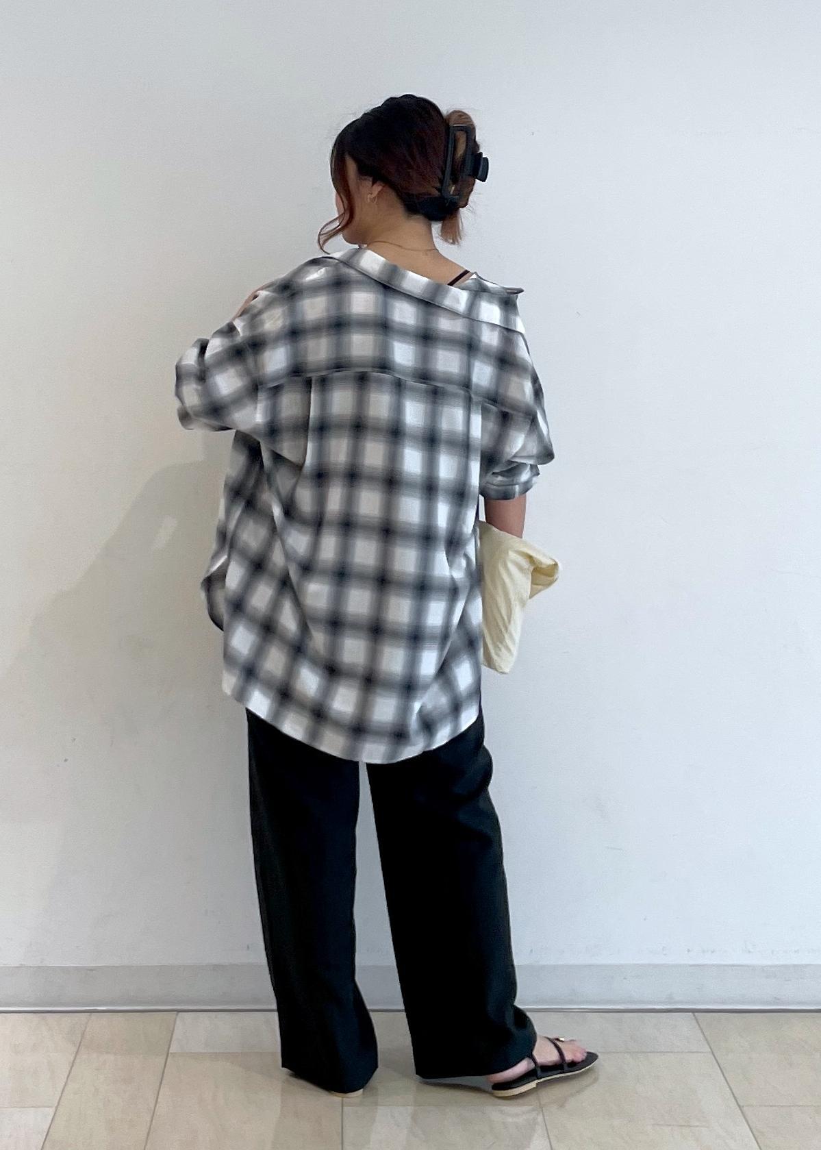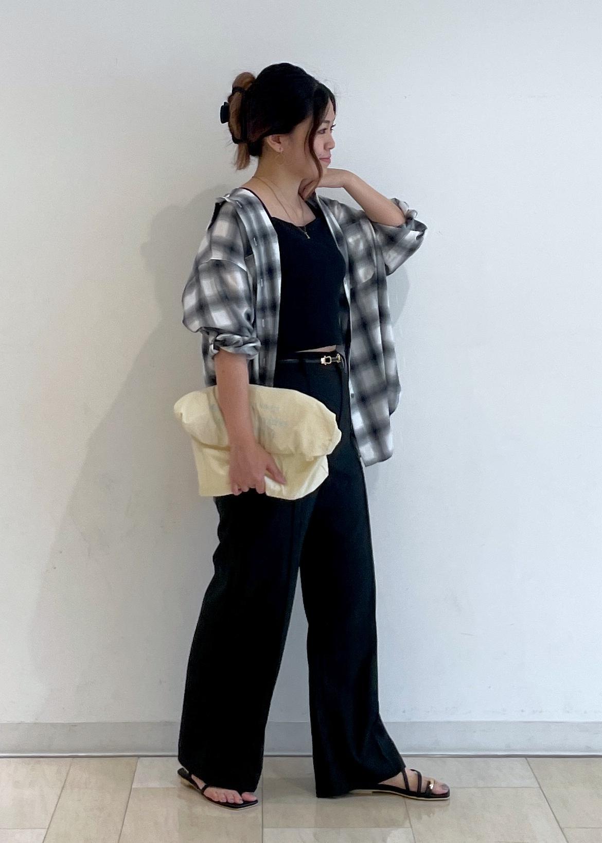 大きめのチェックシャツをメインに、インナーとパンツは黒っぽいのでまとめたスッキリコーデです!