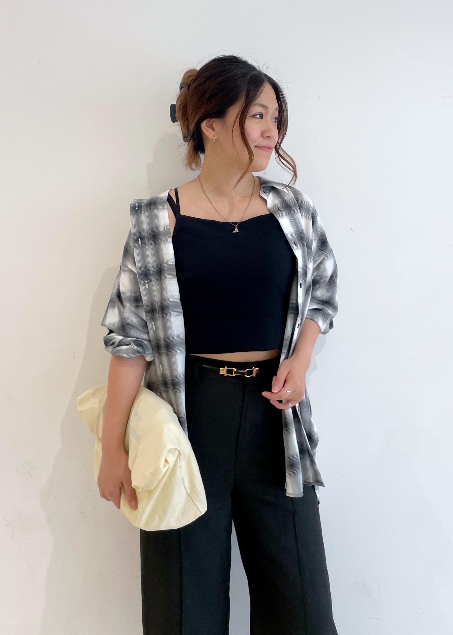 骨格ウェーブなので、ハイウエスト部分を肌見せして涼し気な雰囲気とスタイルアップを意識しました◎