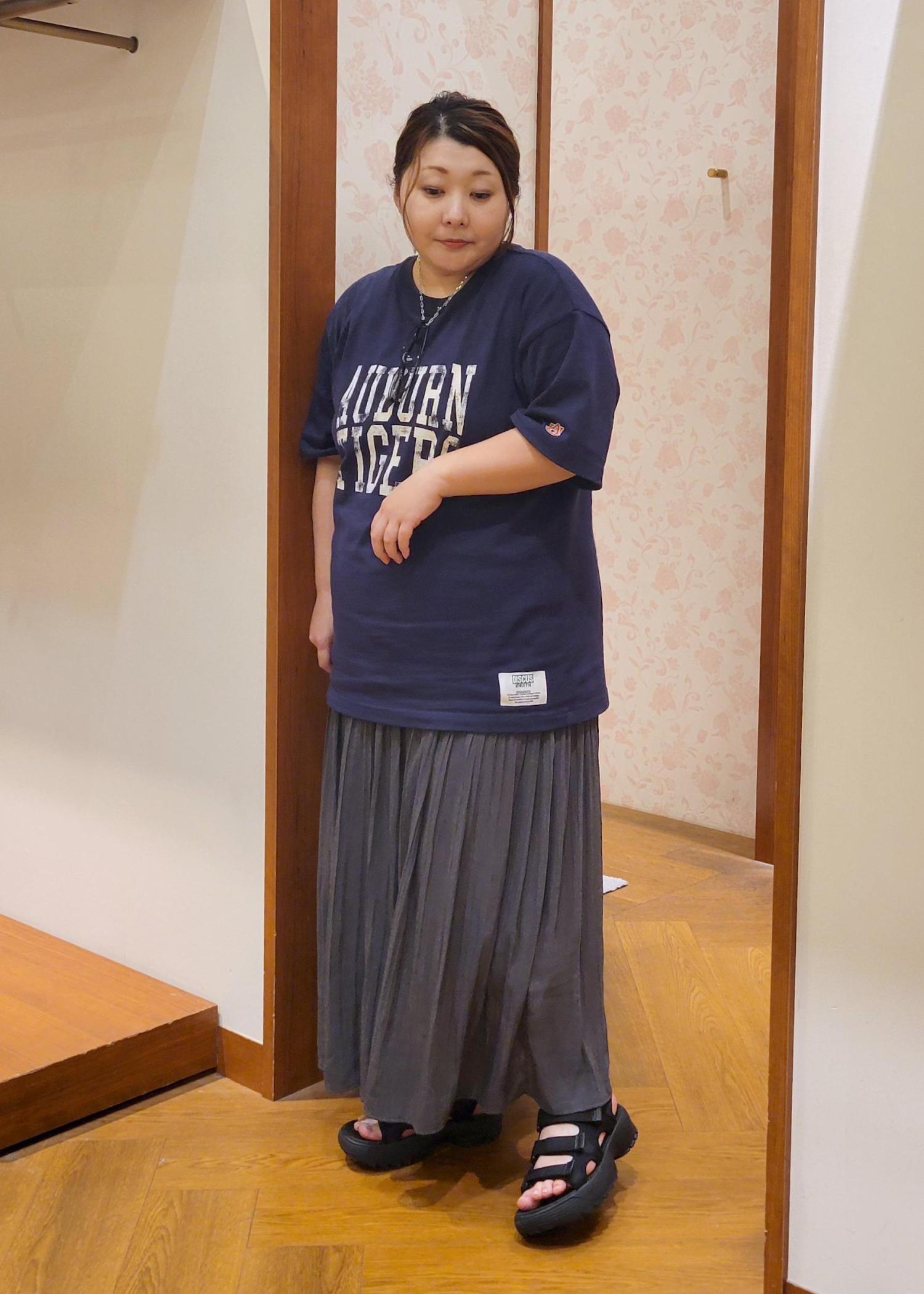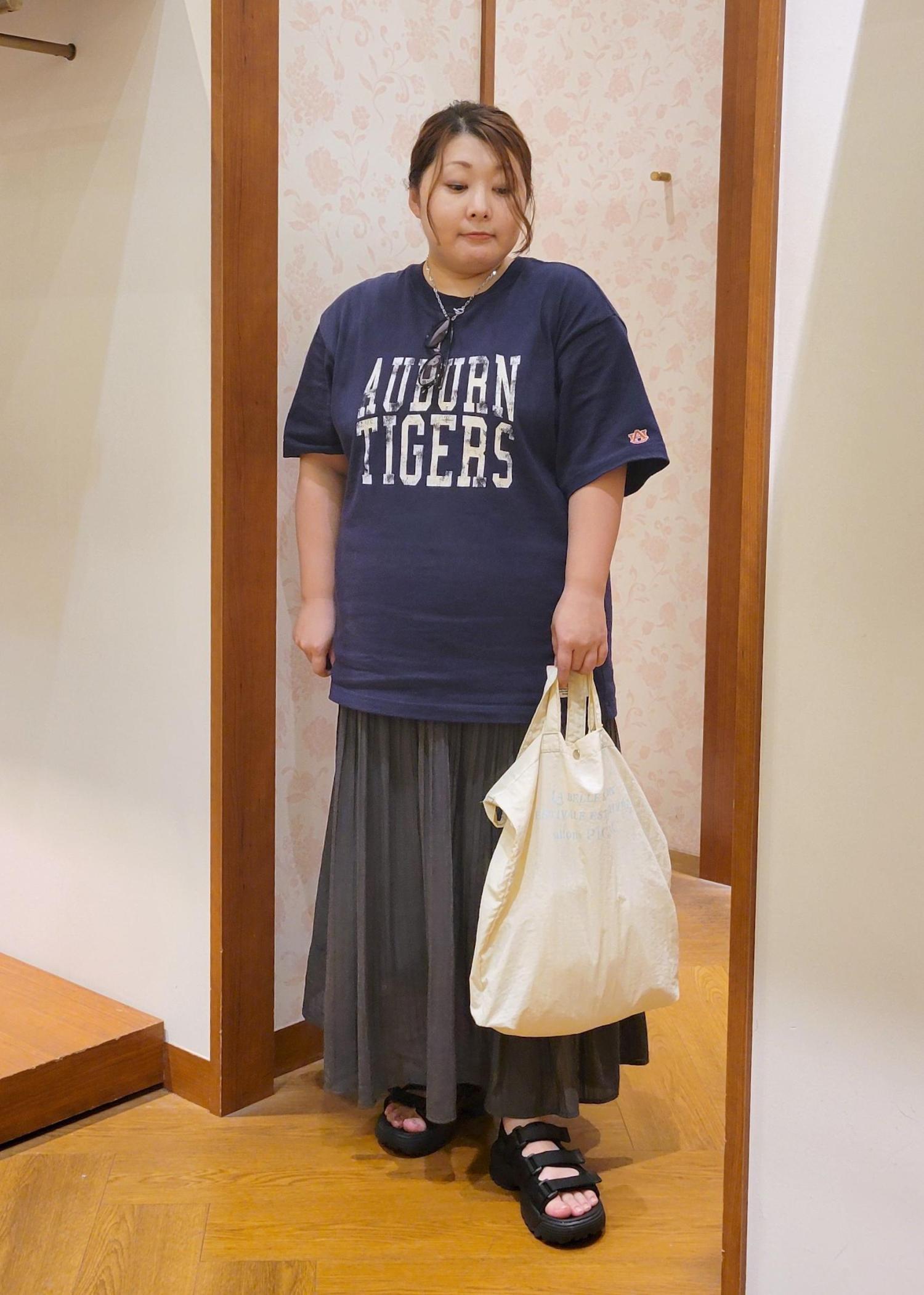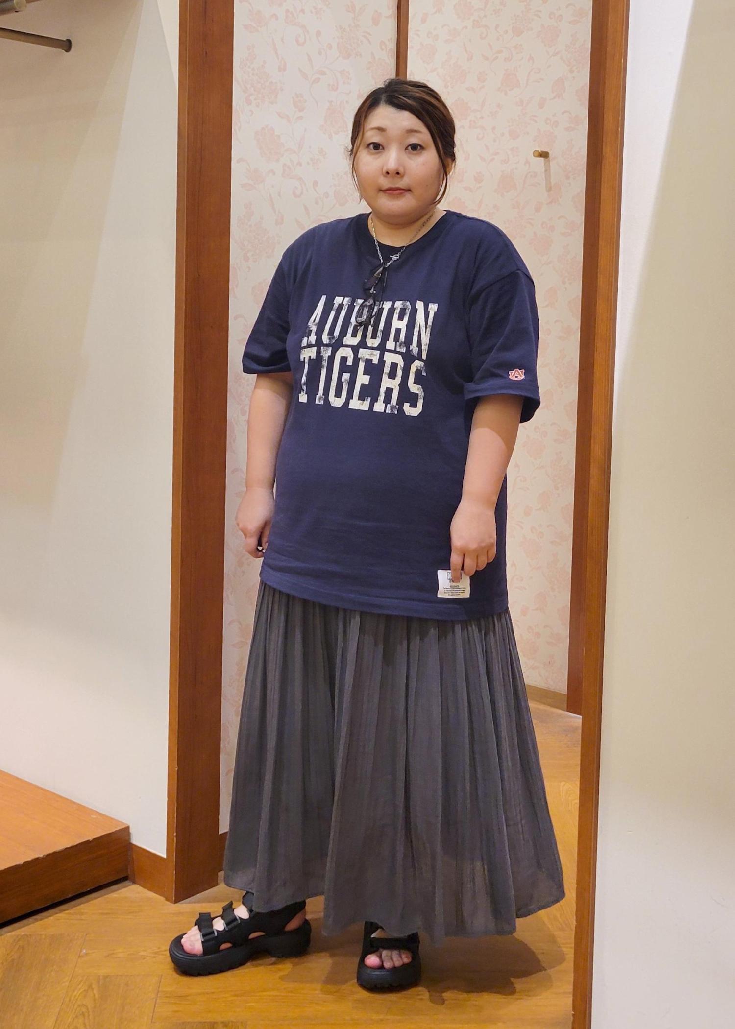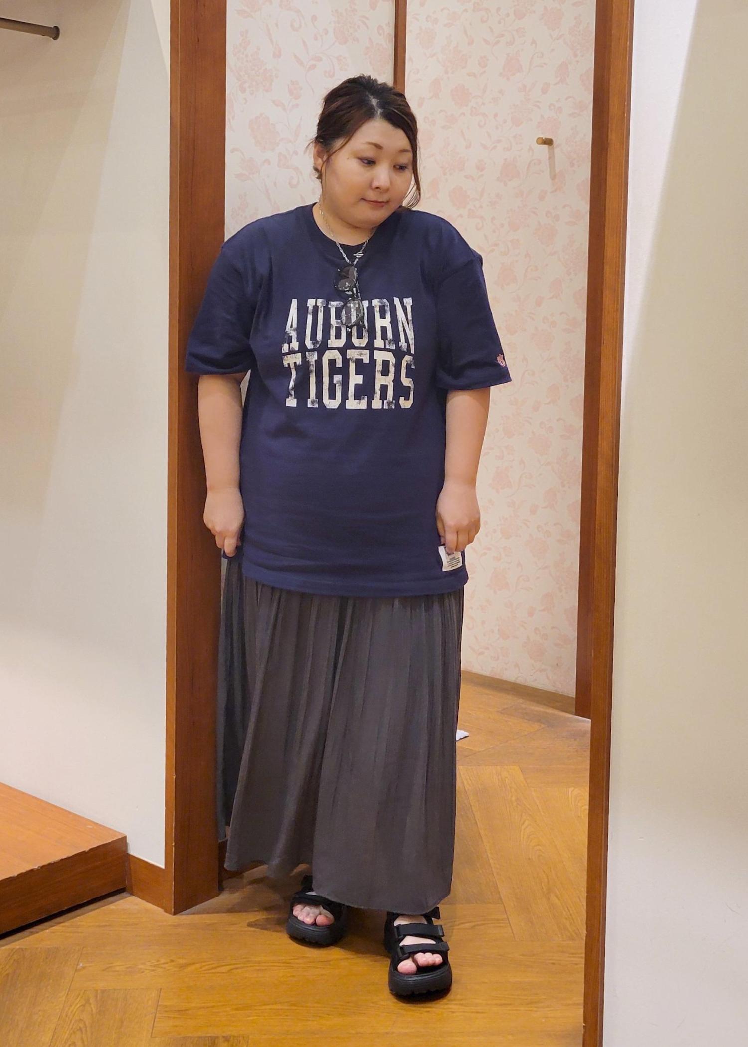 オーバーTシャツをロングスカートを合わせたカジュアルスタイルです!