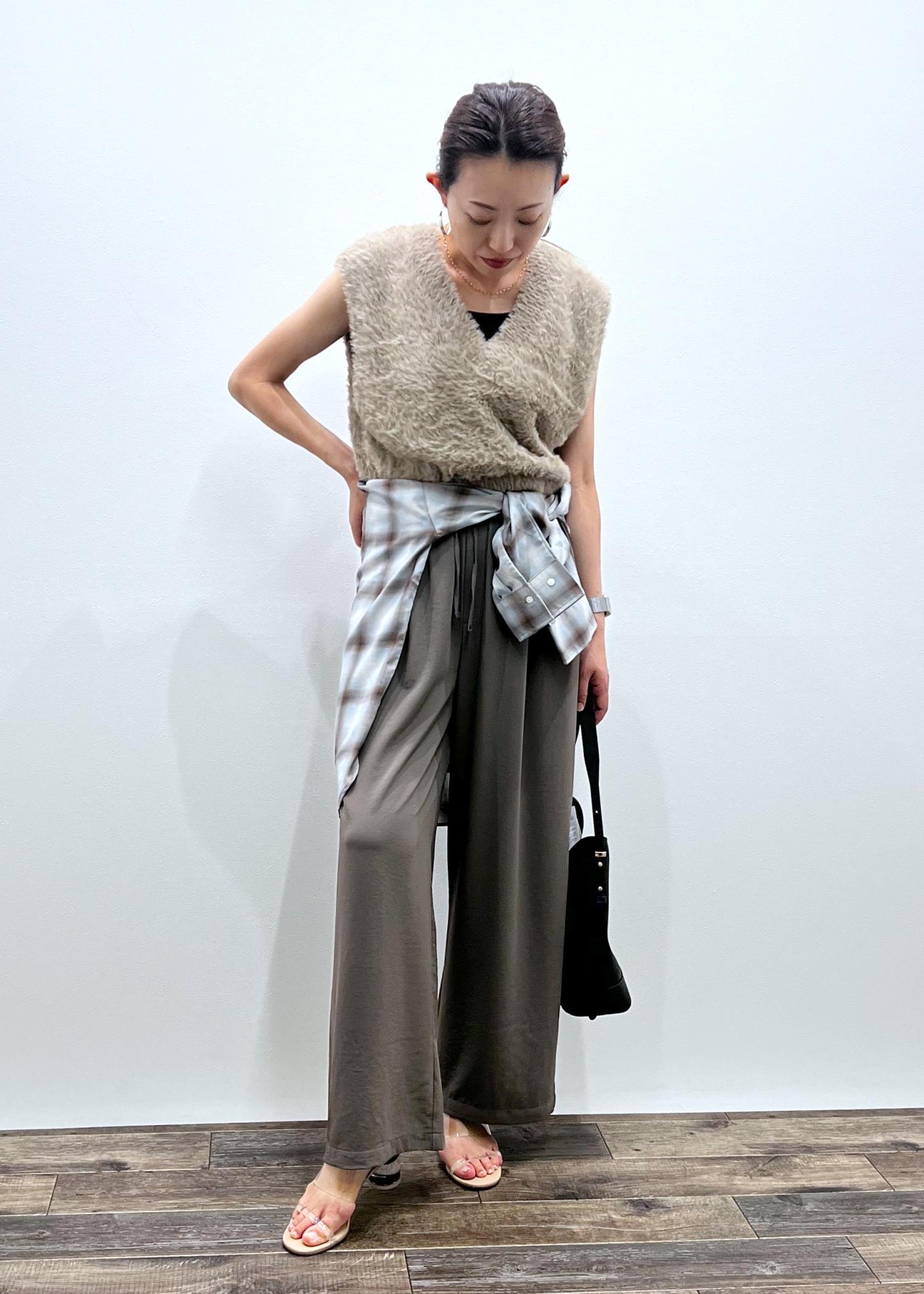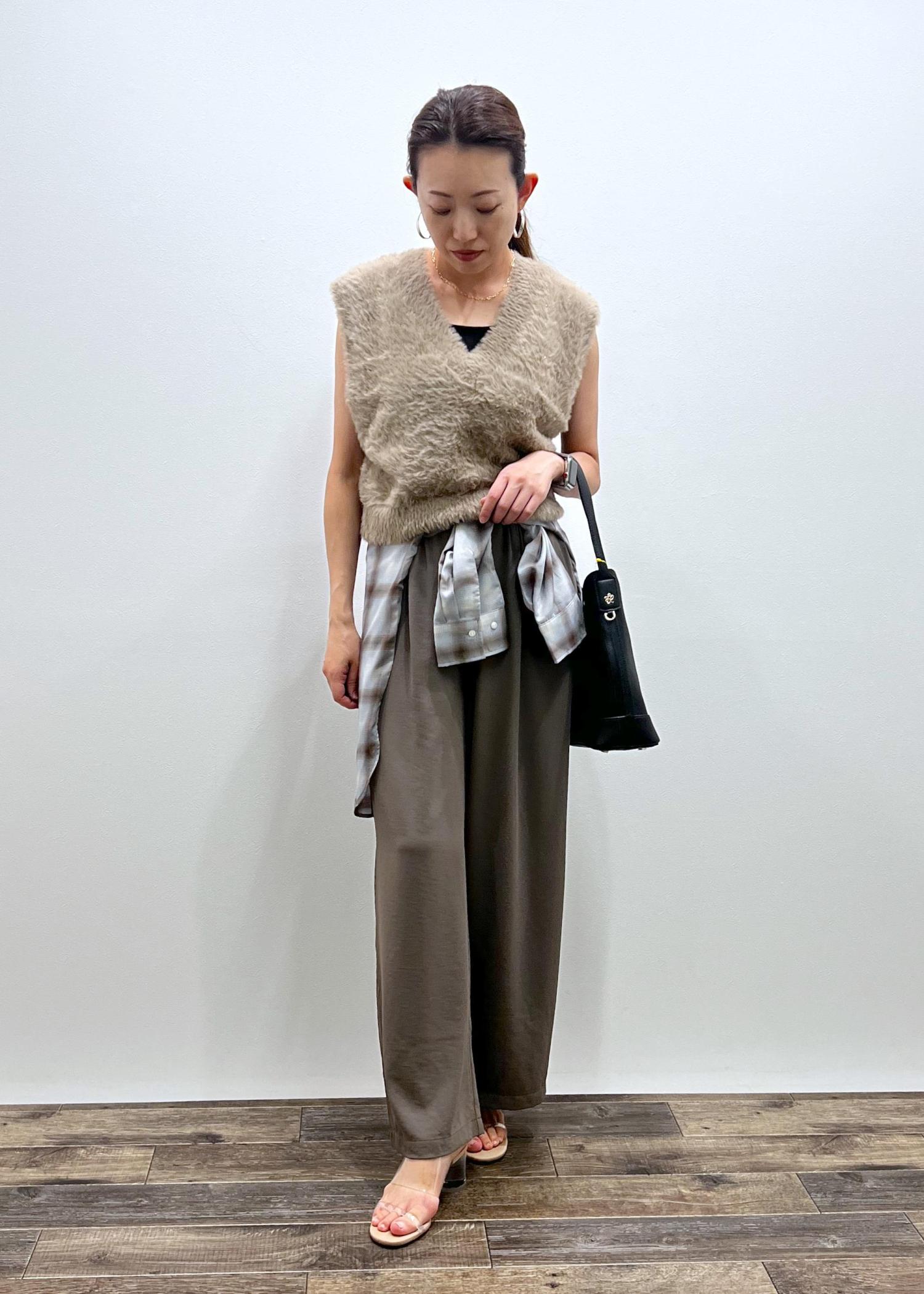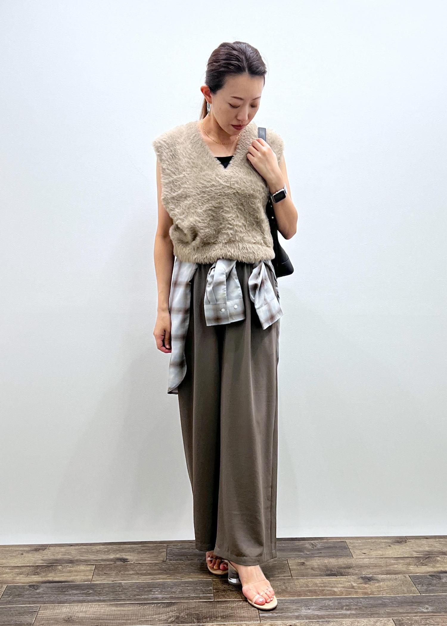 ジョーゼット素材でシワになりにくく季節を問わず履いていただけます。